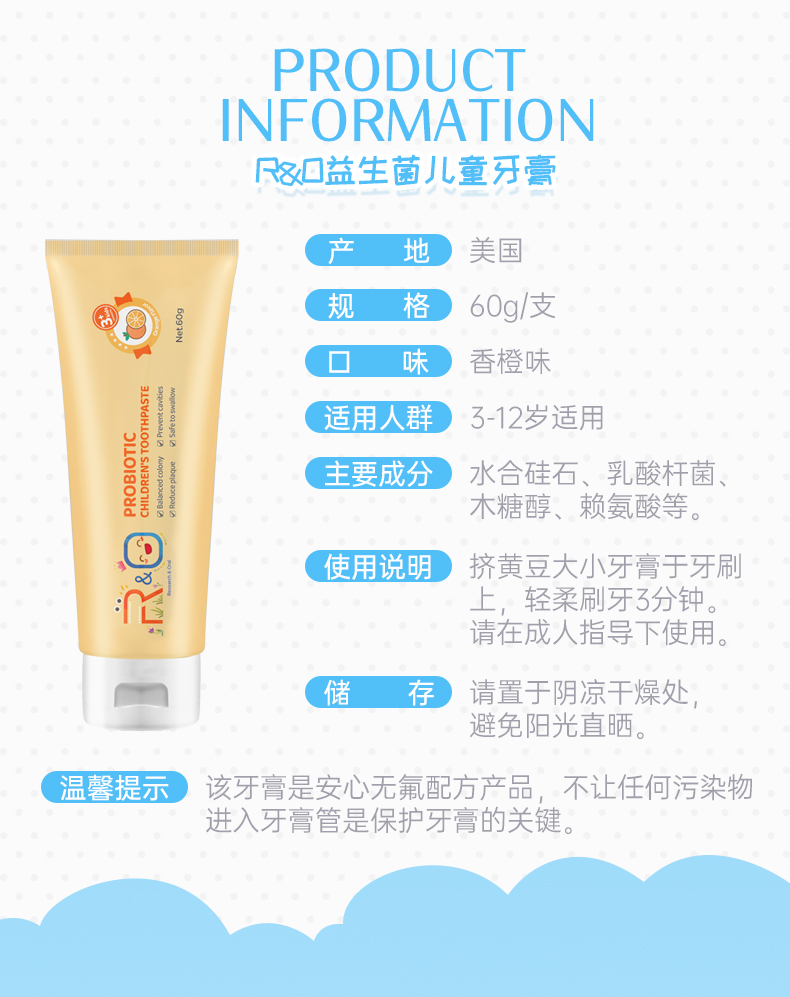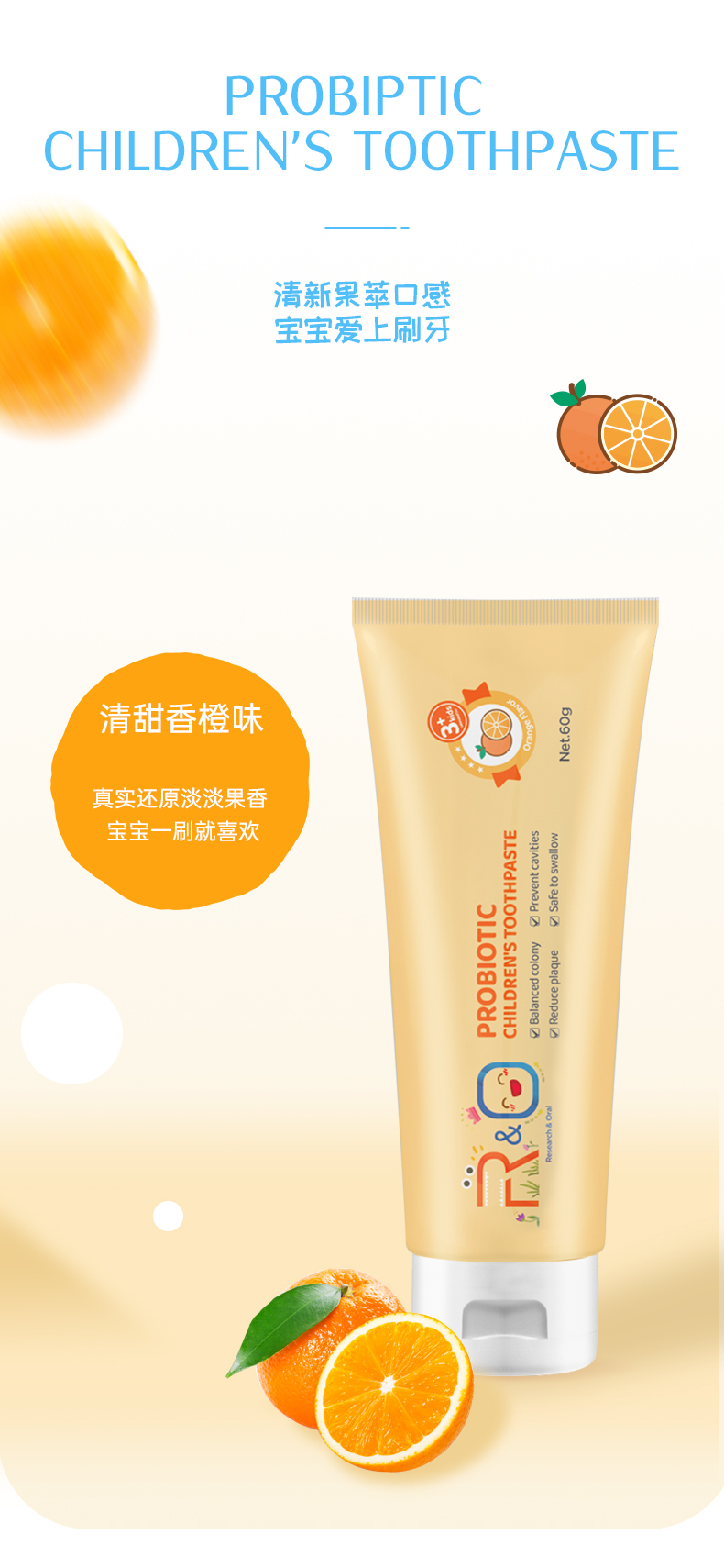R&O 香橙味 60g/支 益生菌儿童牙膏 橙色(单位:支)