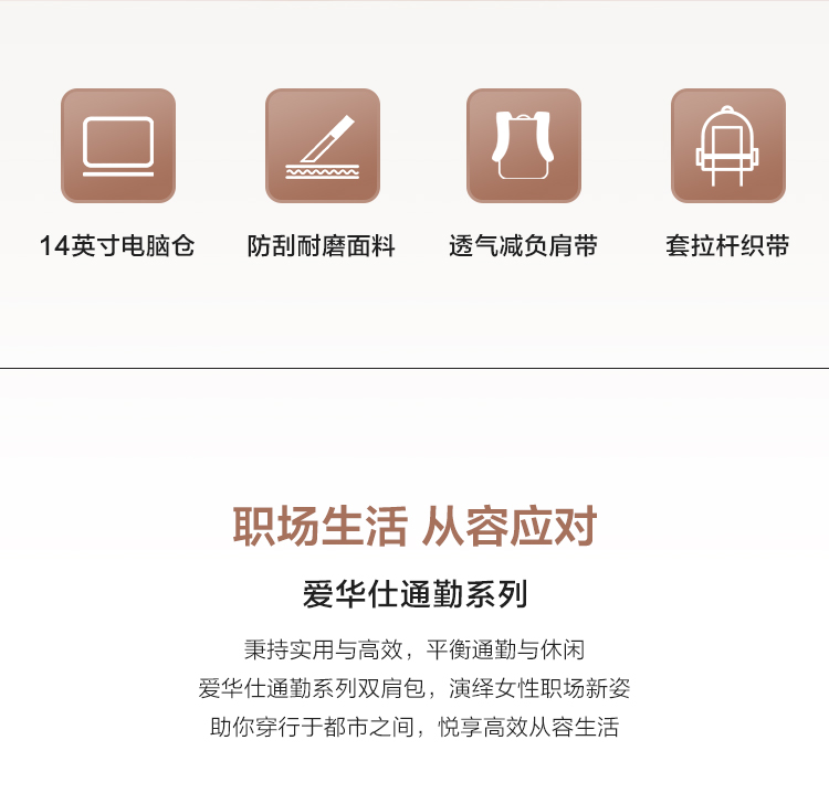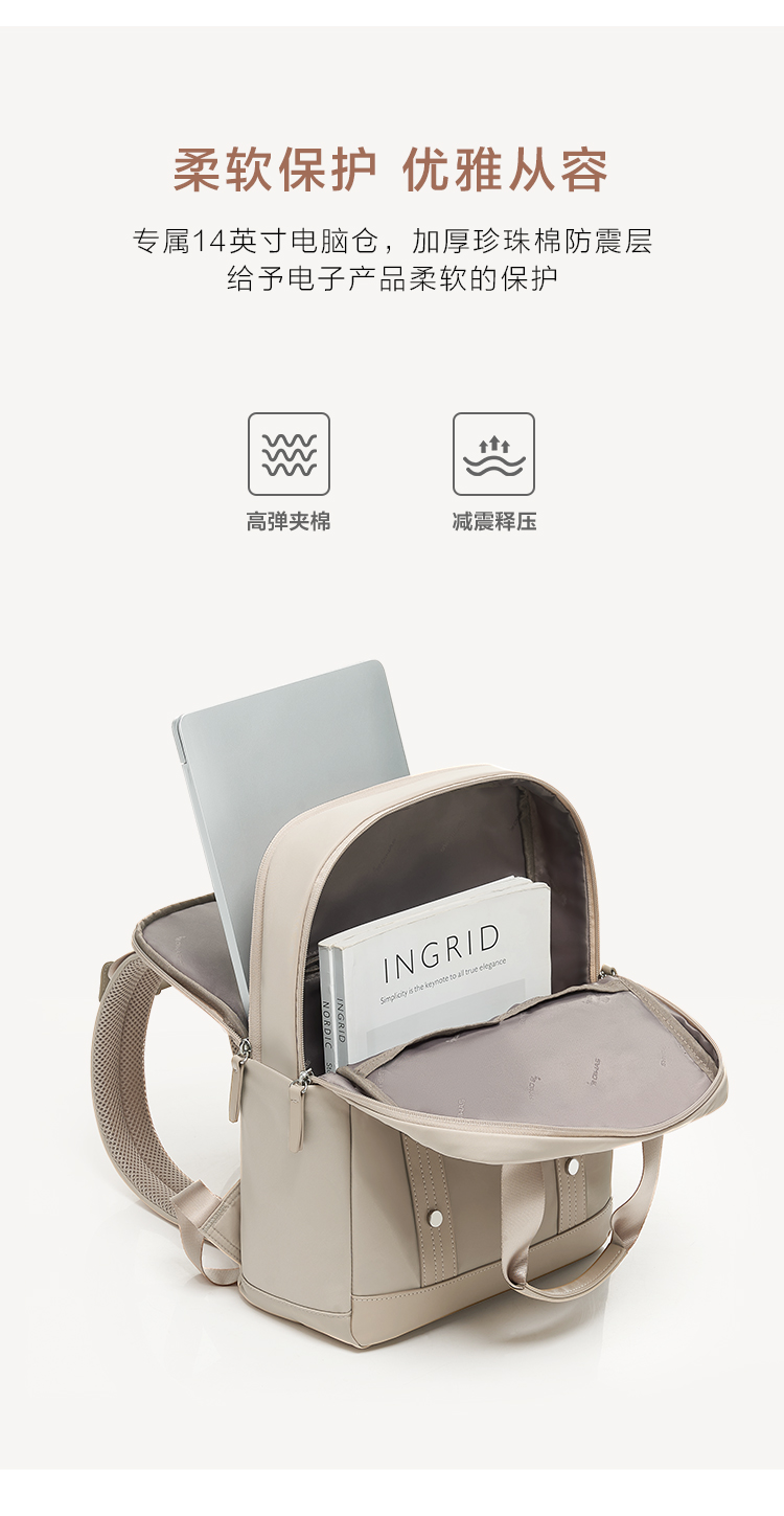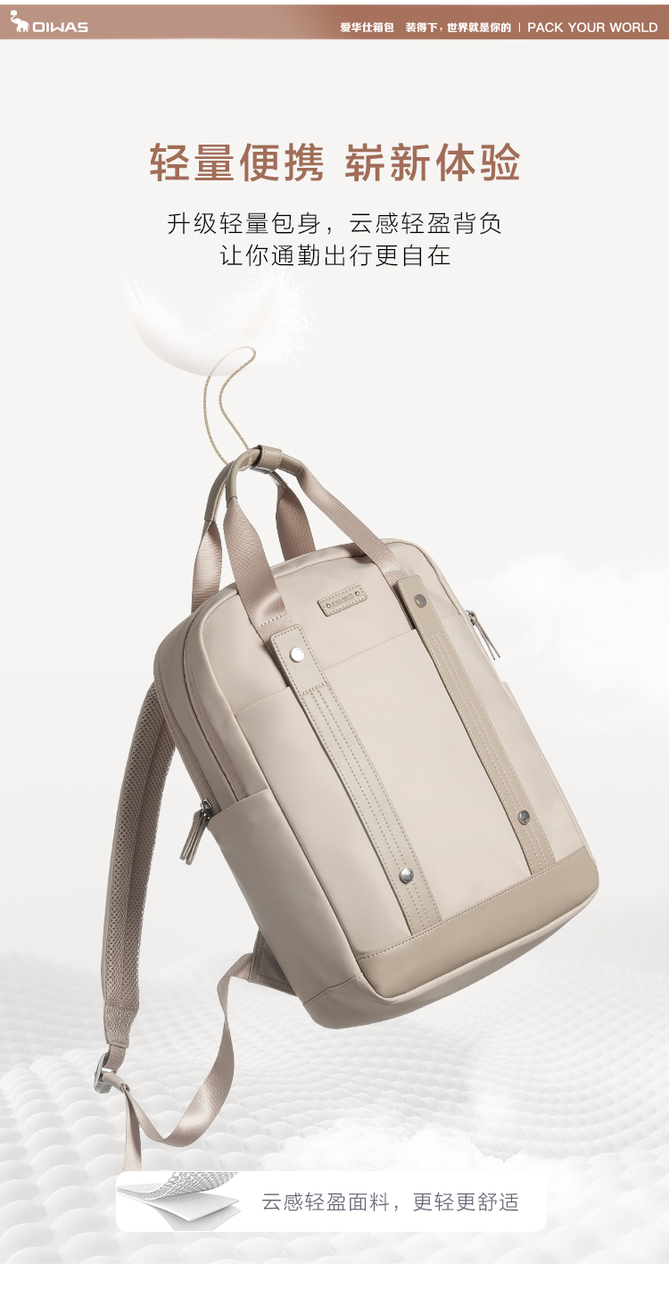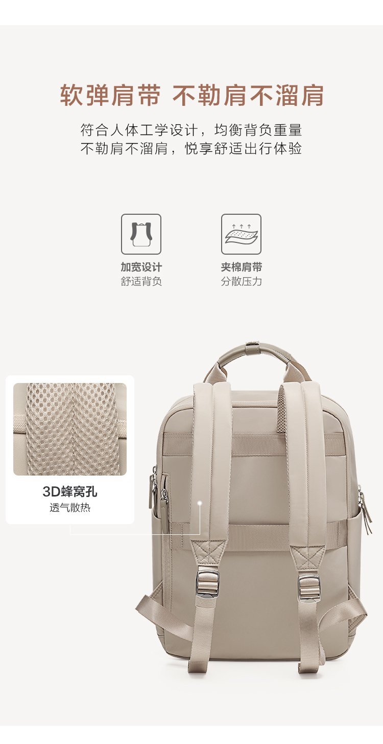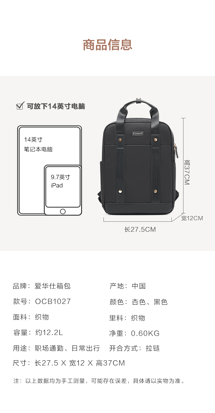 爱华仕(OIWAS) OCB1027 27.5*12*37cm 高密度防泼水双肩包 卡其色(单位:个)