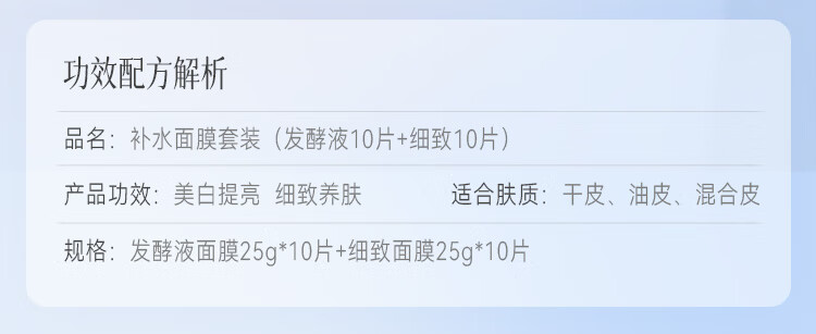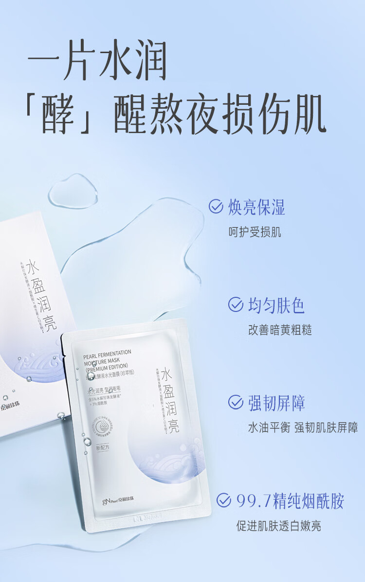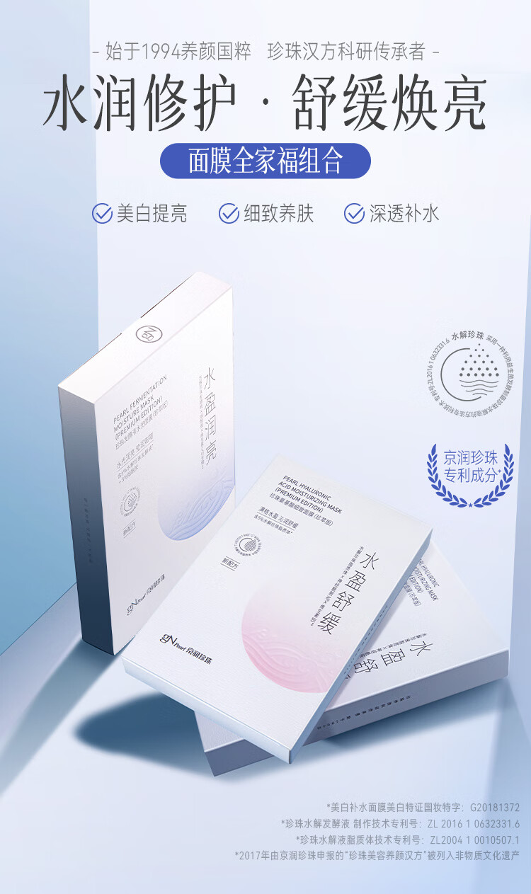 京润珍珠(gNPearl) 舒缓补水面膜20片 发酵液10片+细致10片 补水面膜套装 白色(单位:组)