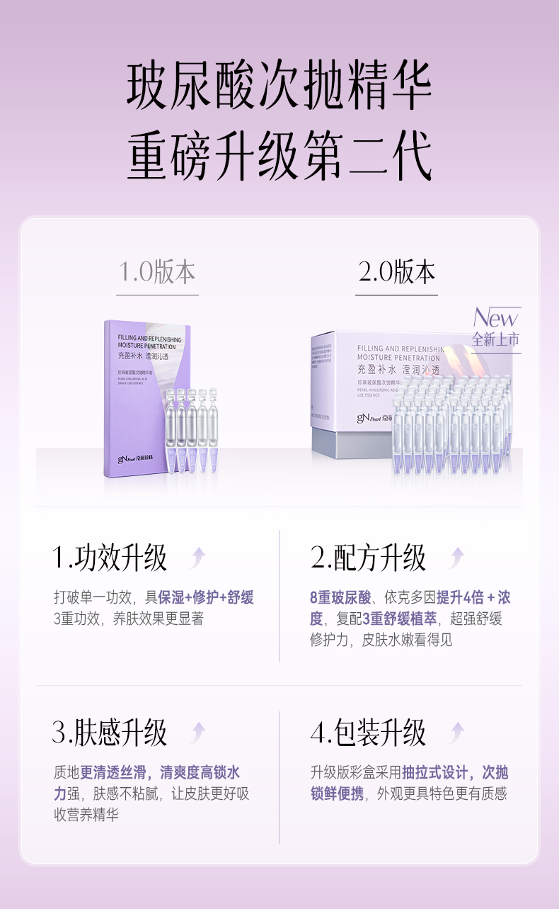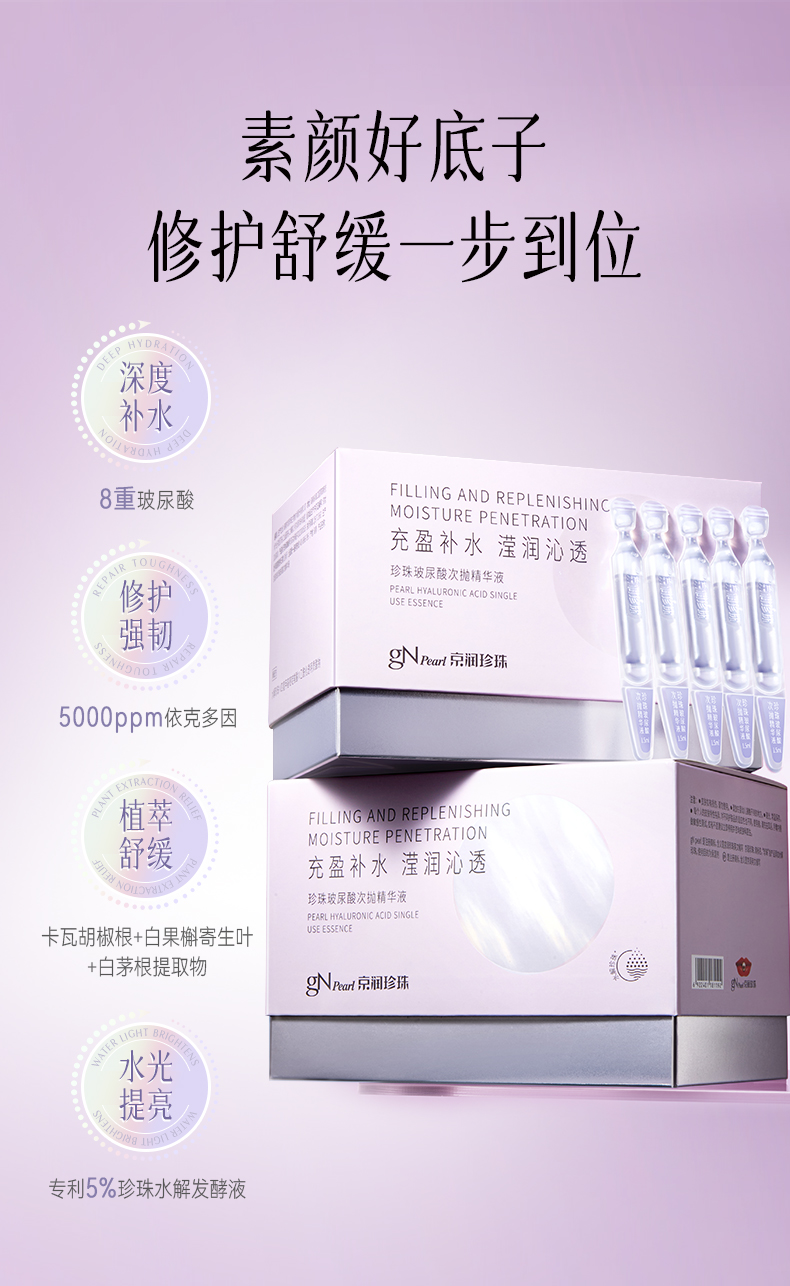 京润珍珠(gNPearl) 珍珠玻尿酸次抛精华液 1.2ml*50支 补水修护提亮舒缓精华 白色(单位:盒)