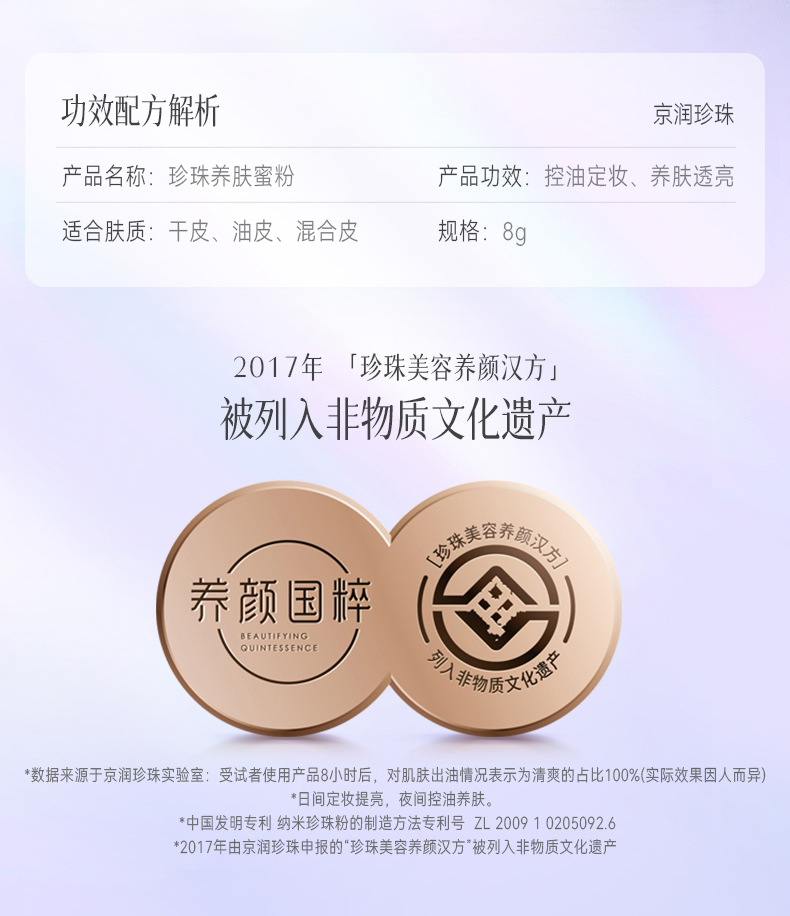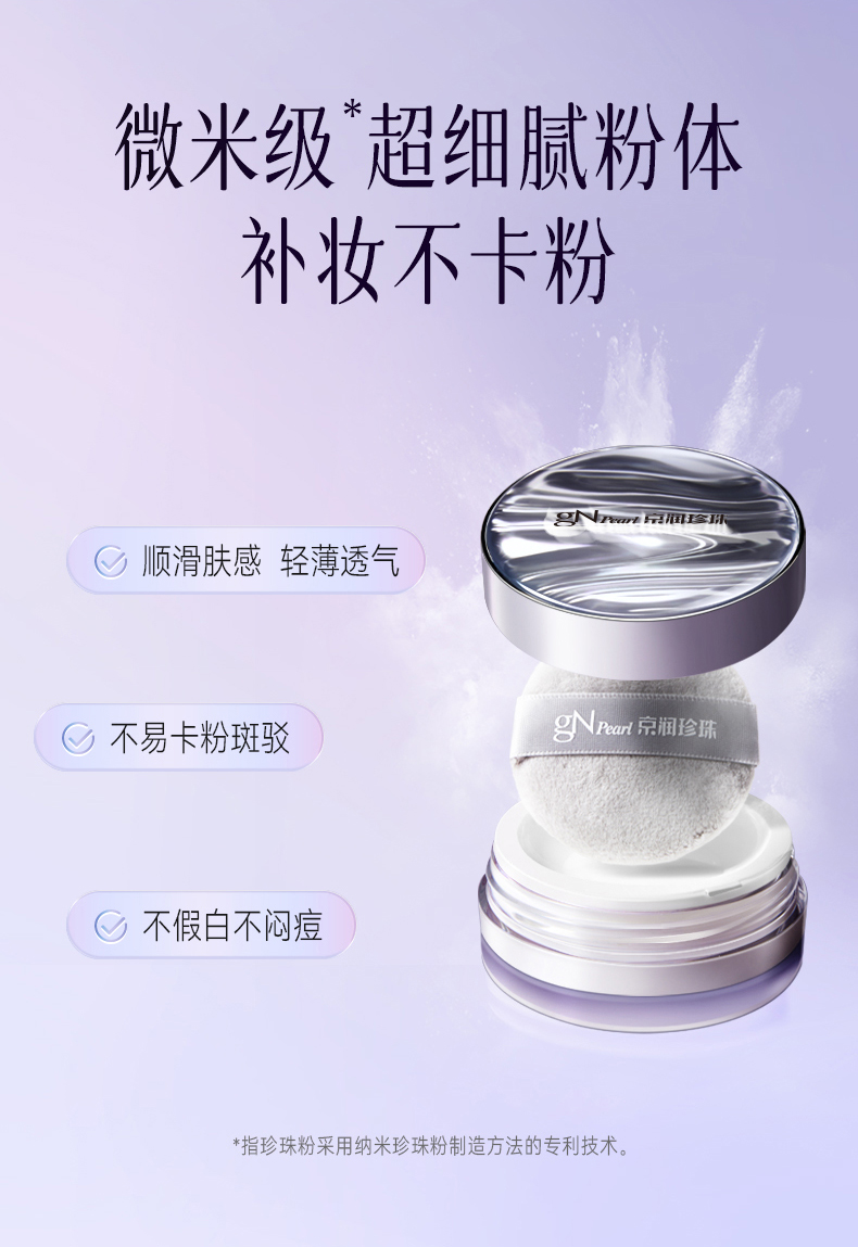 京润珍珠(gNPearl) 珍珠养肤蜜粉 8g 定妆散粉持久不脱妆 银色(单位:盒)
