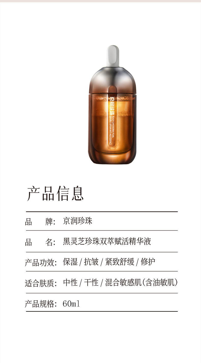 京润珍珠(gNPearl) 黑灵芝珍珠双萃赋活精华液 60ml 紧致淡纹补水舒缓护肤 褐色(单位:瓶)