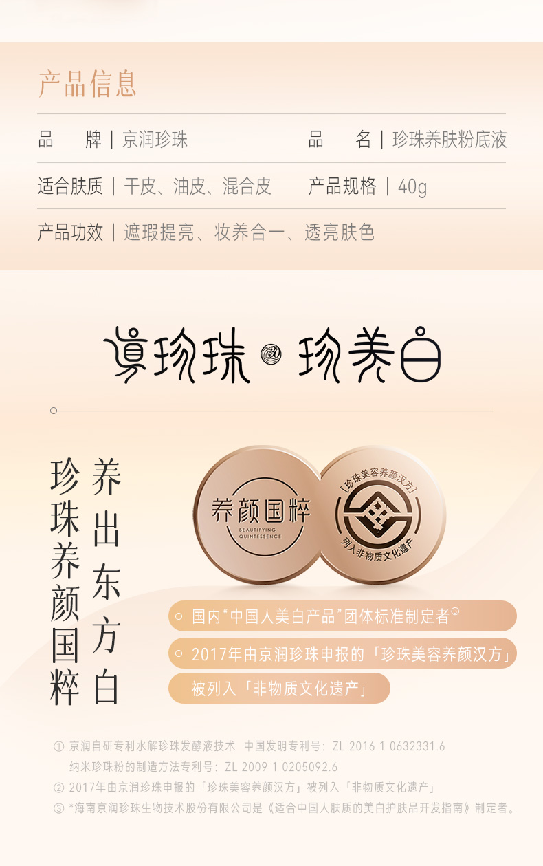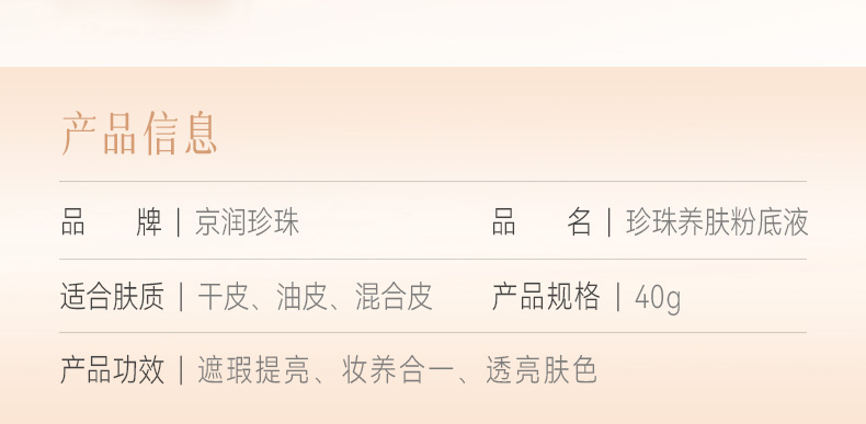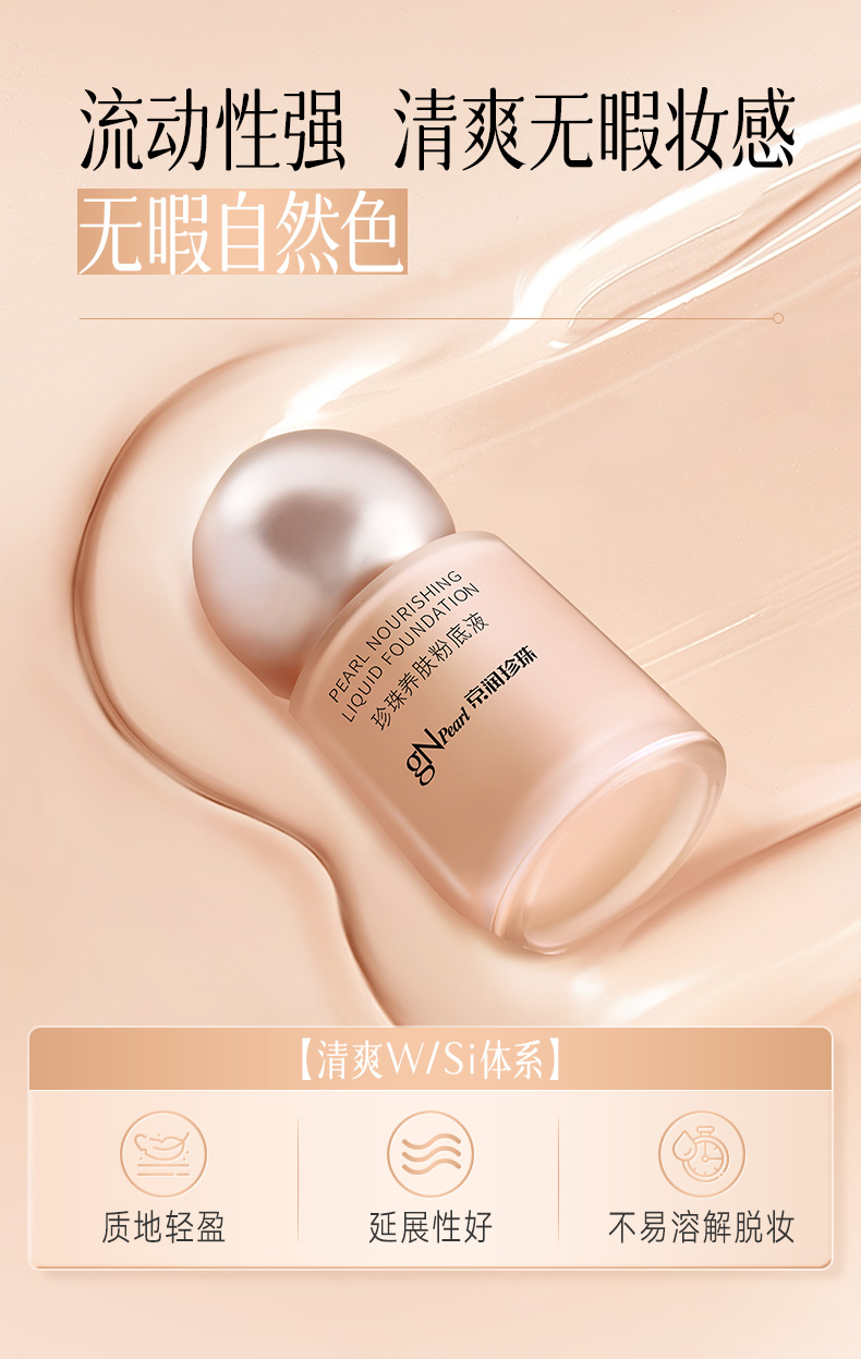 京润珍珠(gNPearl) 珍珠养肤粉底液 40g 遮瑕轻薄不卡粉不脱妆 自然色(单位:瓶)