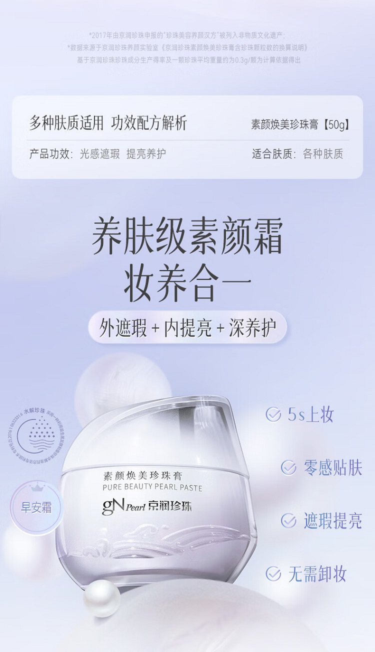 京润珍珠(gNPearl) 素颜珍珠膏 50g 遮瑕提亮素颜霜 白色(单位:罐)