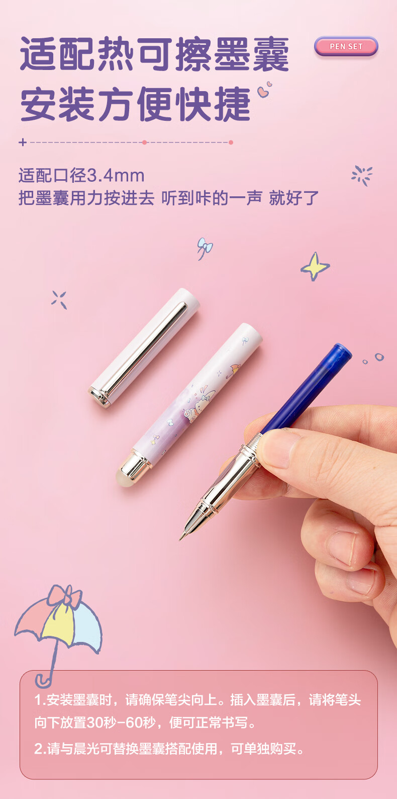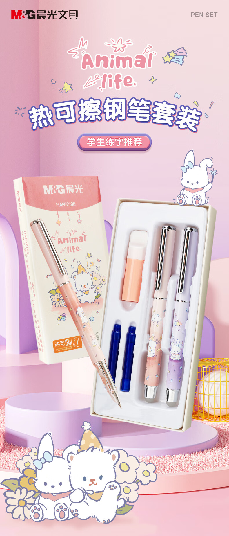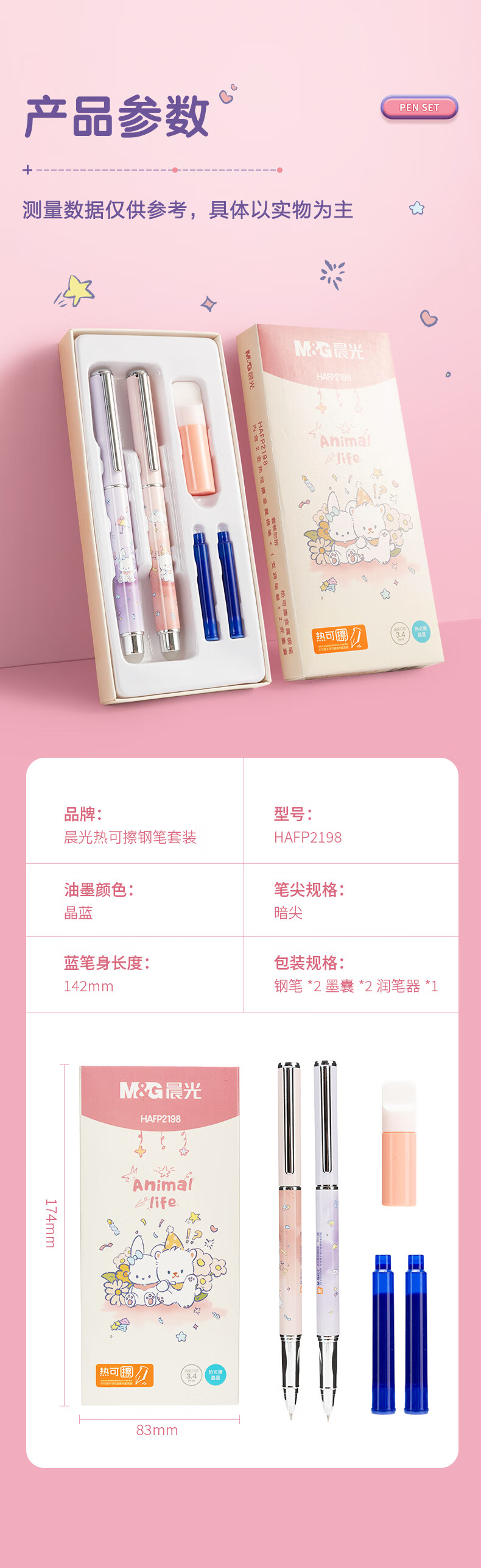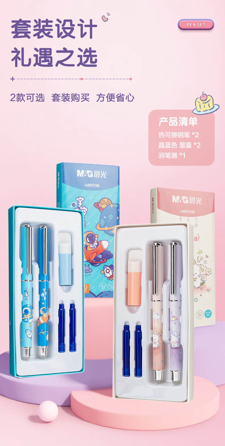 晨光(M&G) 热可擦金属钢笔套装 HAFP2198 142mm 粉色(单位:套)