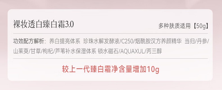 京润珍珠(gNPearl) 裸妆透白烟酰胺保湿面霜 50g 美白补水提亮面霜 粉色(单位:罐)