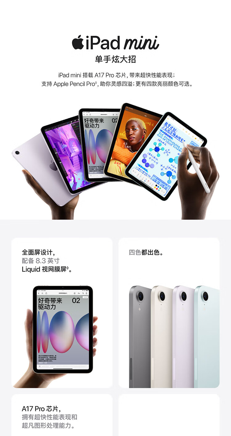 苹果(APPLE) iPad mini eSIM/MXQ03CH/A 24新款第7代 128GB 深空灰(单位:台)