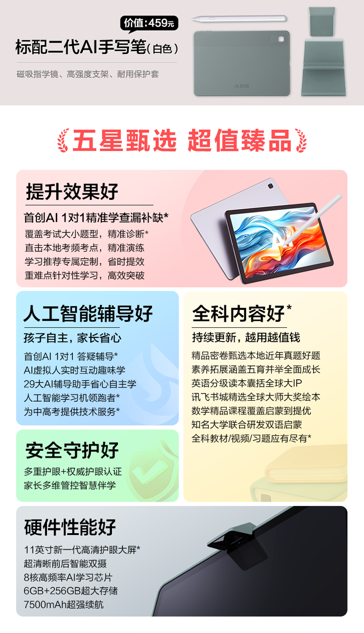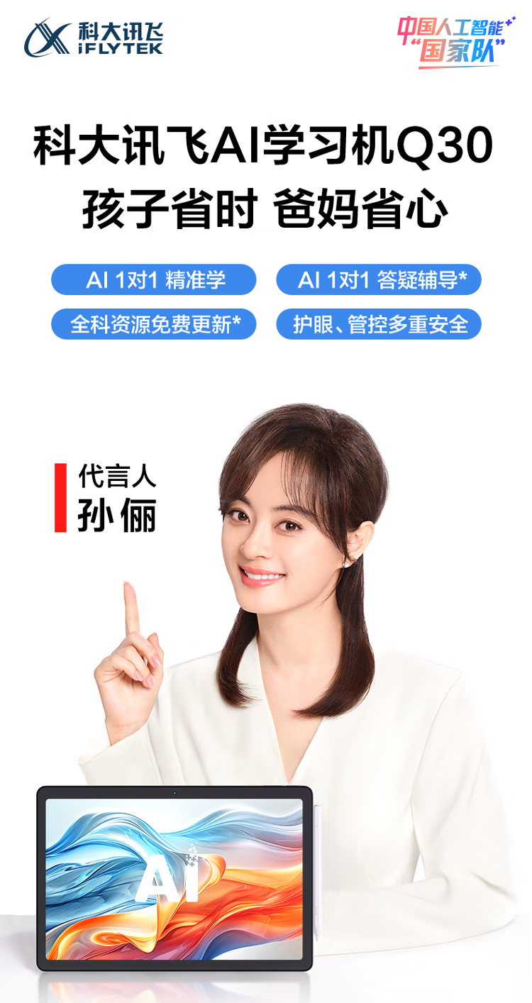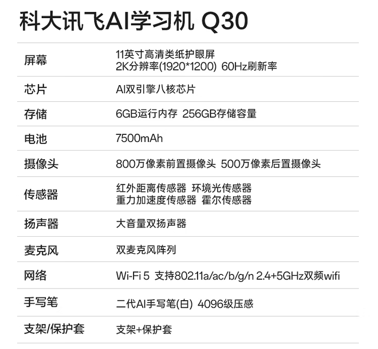 科大讯飞(iFLYTEK) Q30 电池容量:7500mAh 存储:6GB+256GB超大存储 学习机 深空灰色(单位:台)