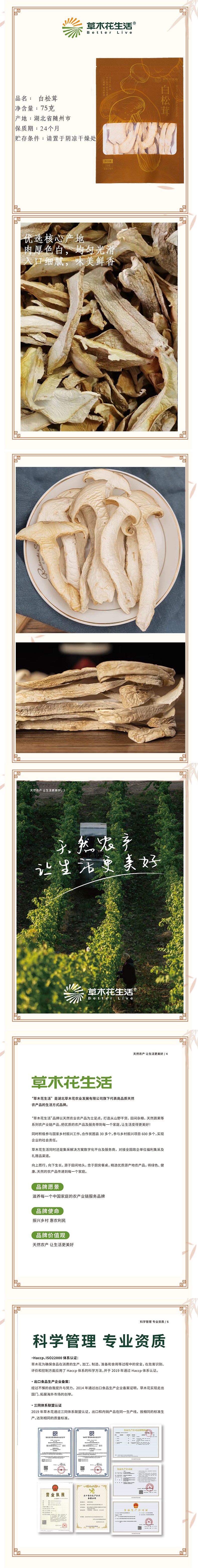 草木花生活 肉厚色白,均匀光滑 75g 白松茸 黄色(单位:袋)