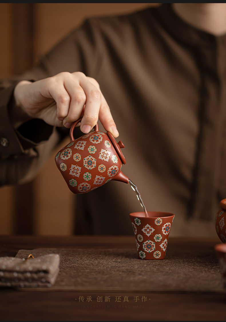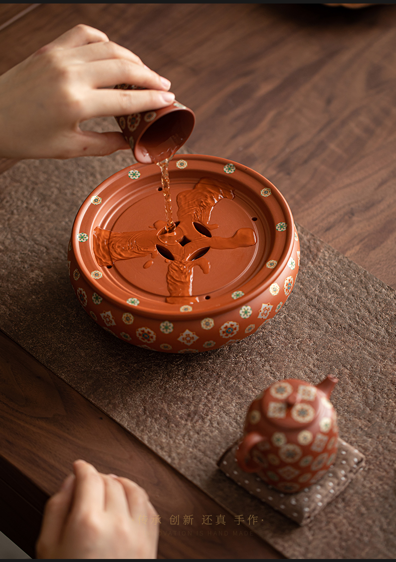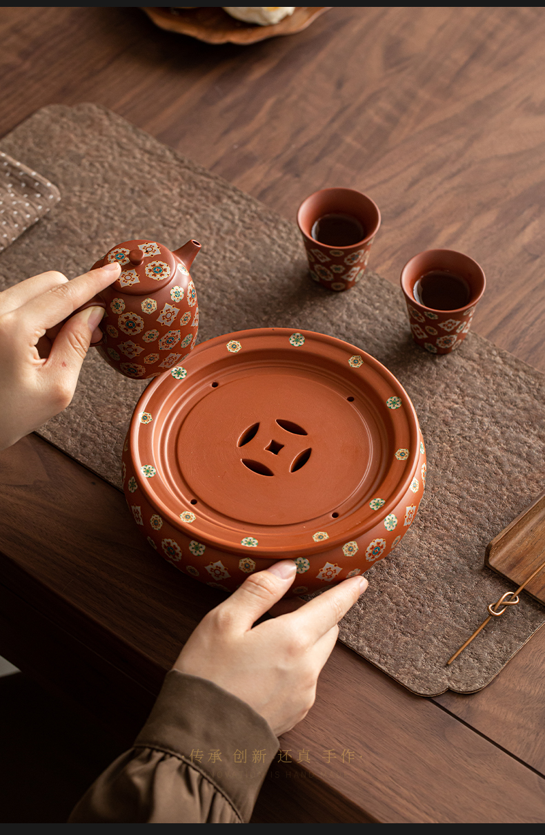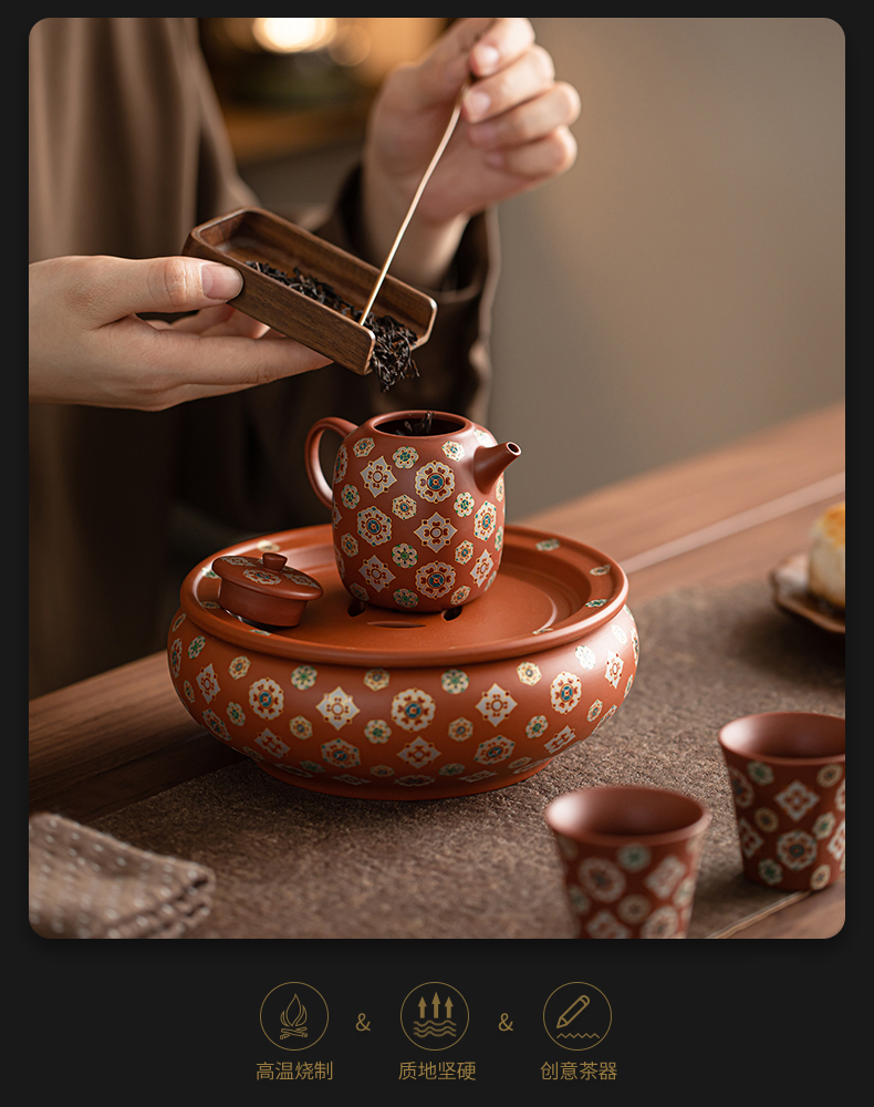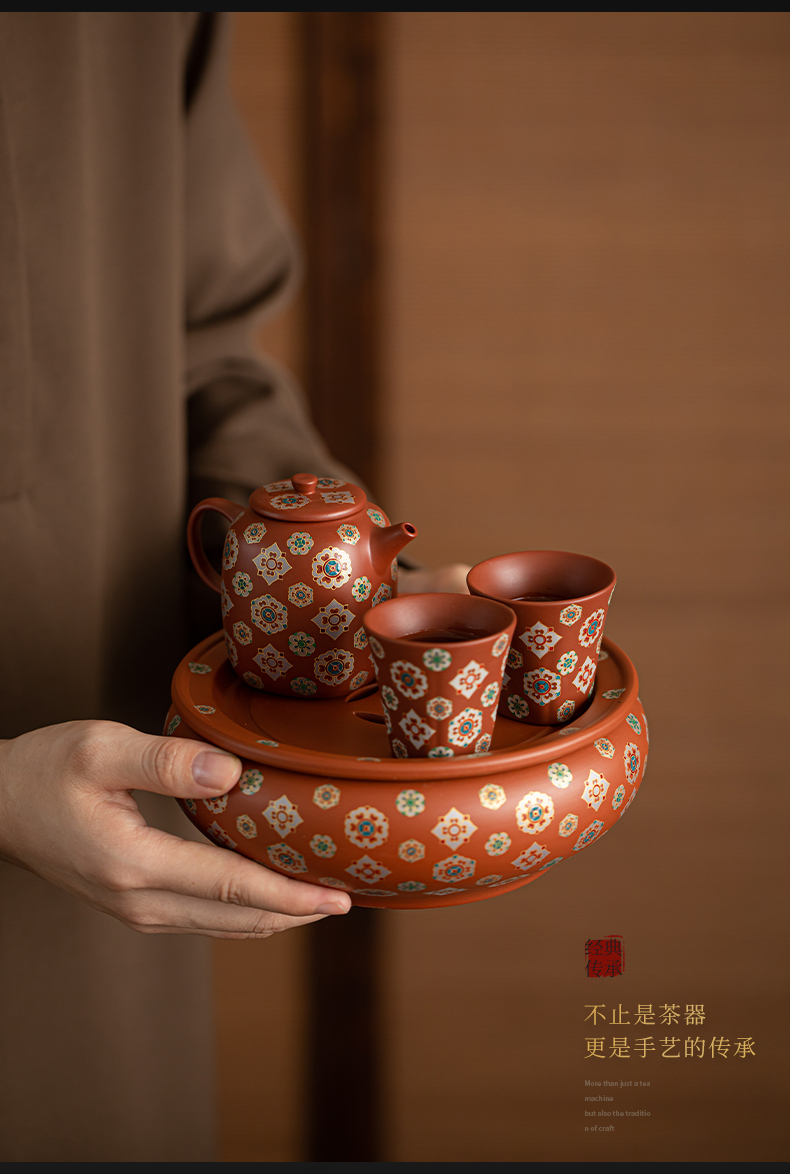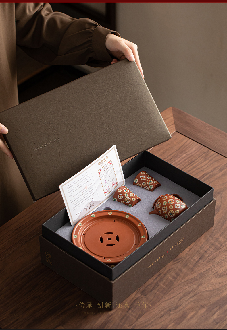 苏氏陶瓷/SUSHICERAMICS J1130 4头 紫砂茶壶茶杯茶盘套装 枫叶色(单位:套)