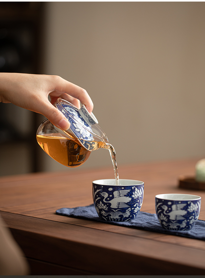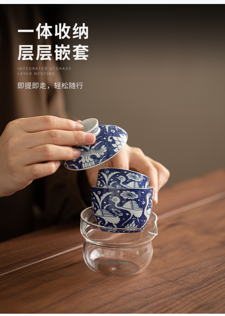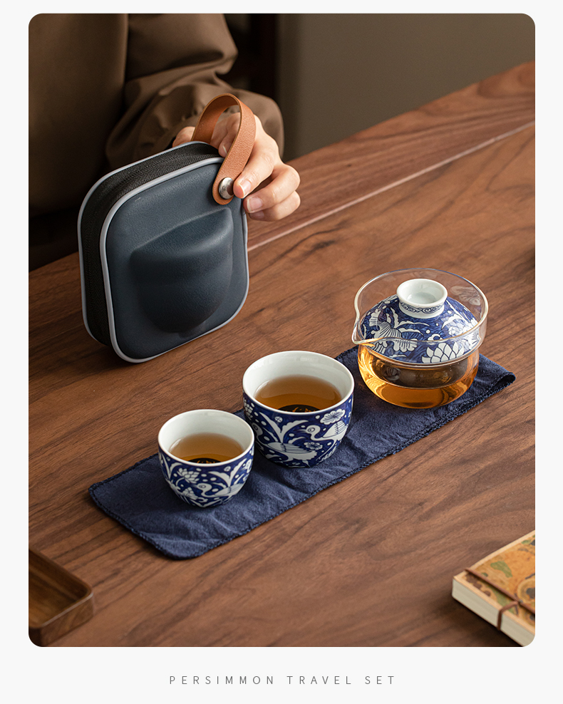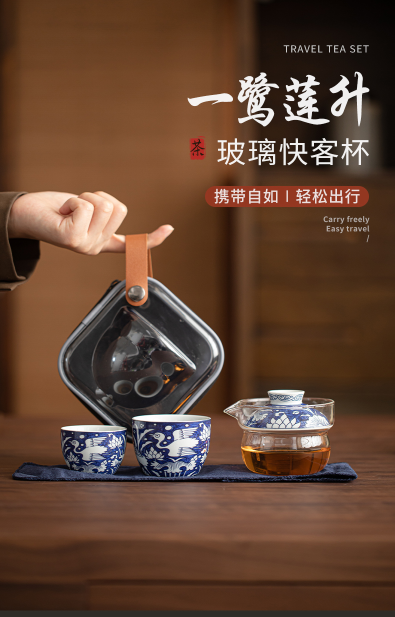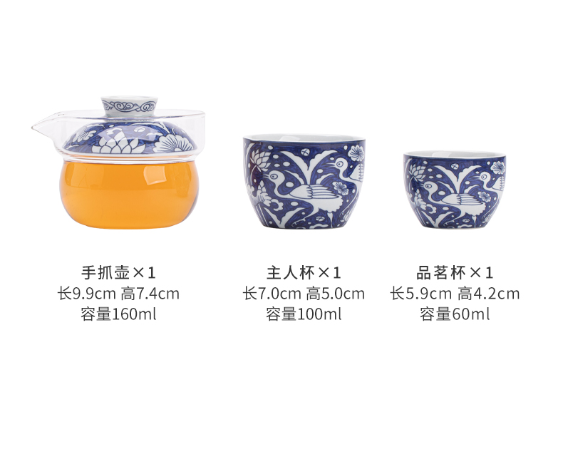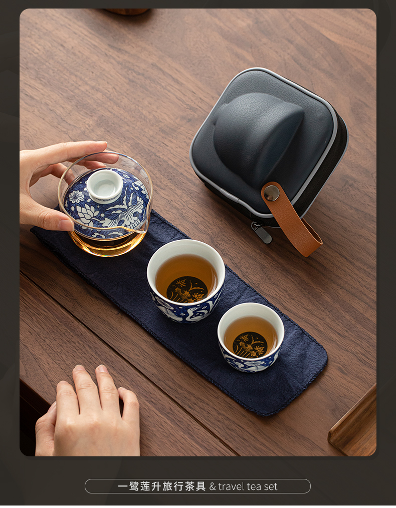 苏氏陶瓷(SUSHI CERAMICS) J1138 3头 青花一路莲升旅行茶具 混色(单位:套)