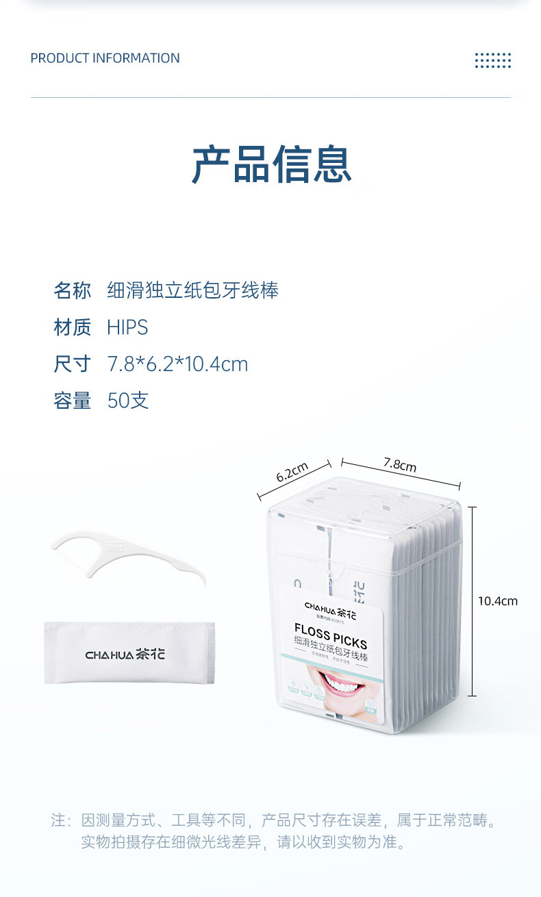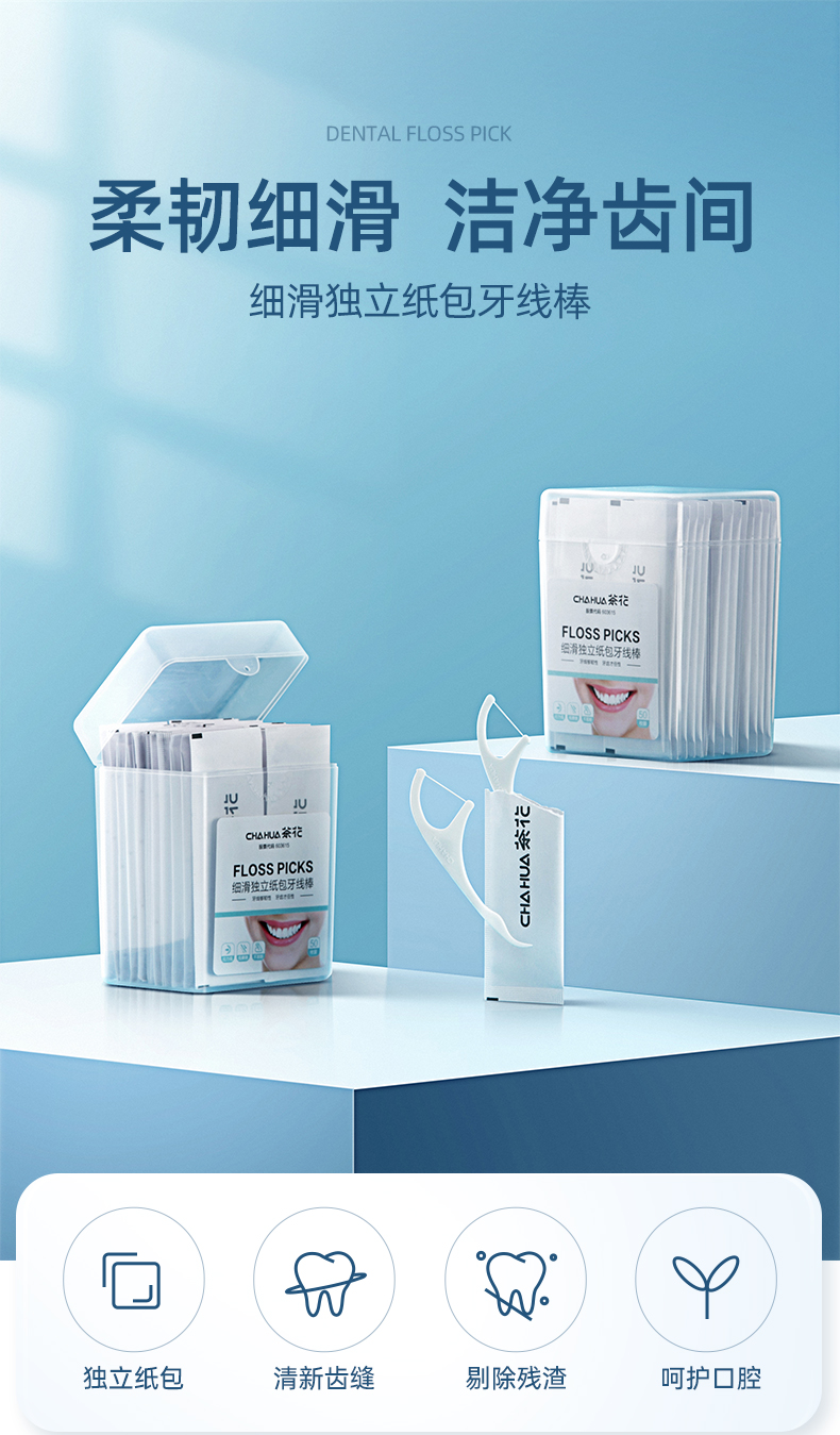 茶花(CHAHUA) 50支 盒 牙线棒独立包装 天蓝色(单位:盒)