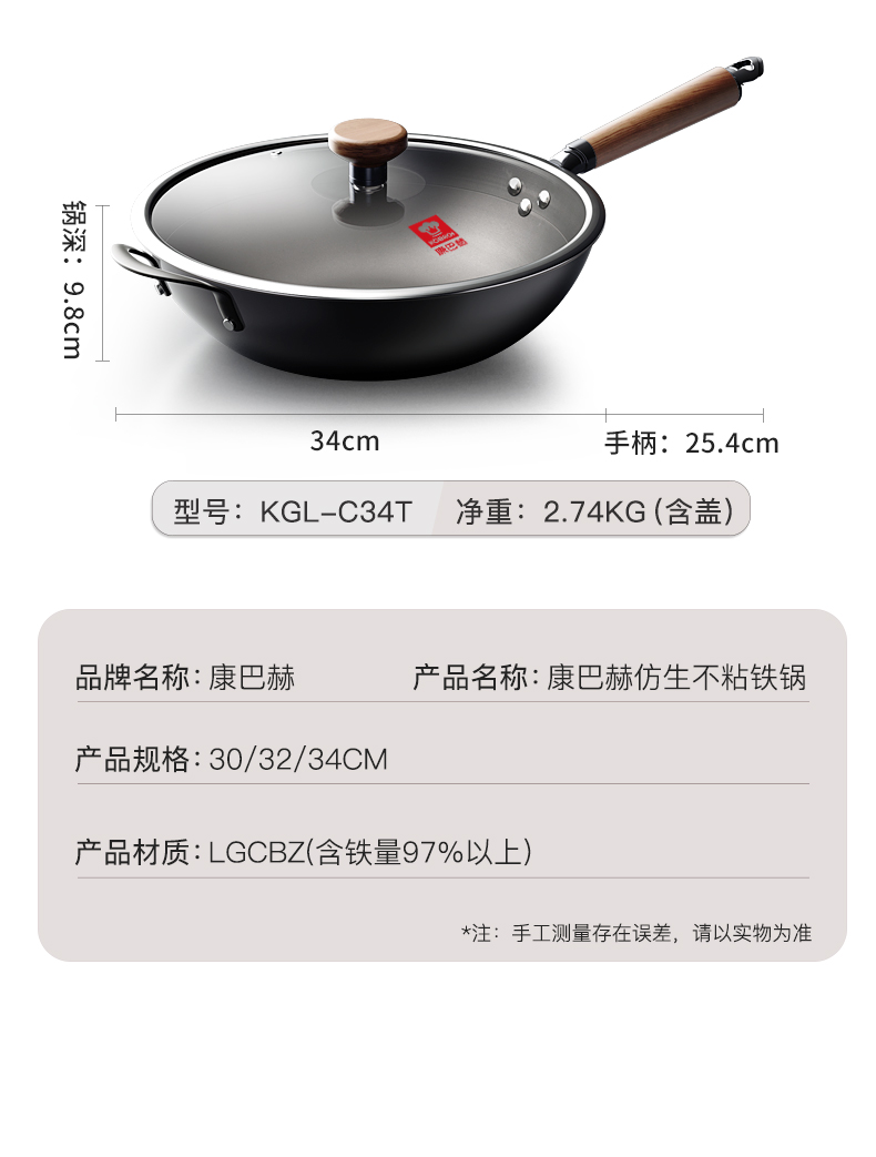 康巴赫 KGL-C32T 32cm 仿生不粘铁锅 铁灰色(单位:套)
