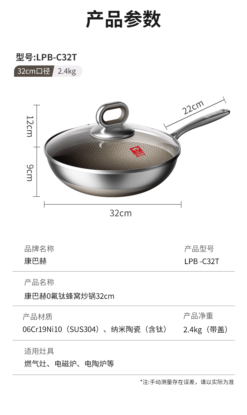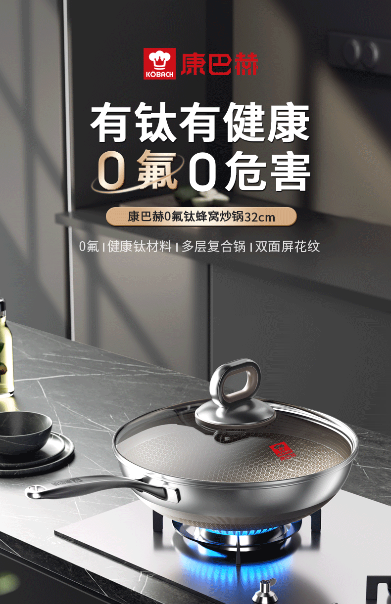 康巴赫 0氟钛蜂窝炒锅 LPB-C32T 32cm 钢色(单位:套)