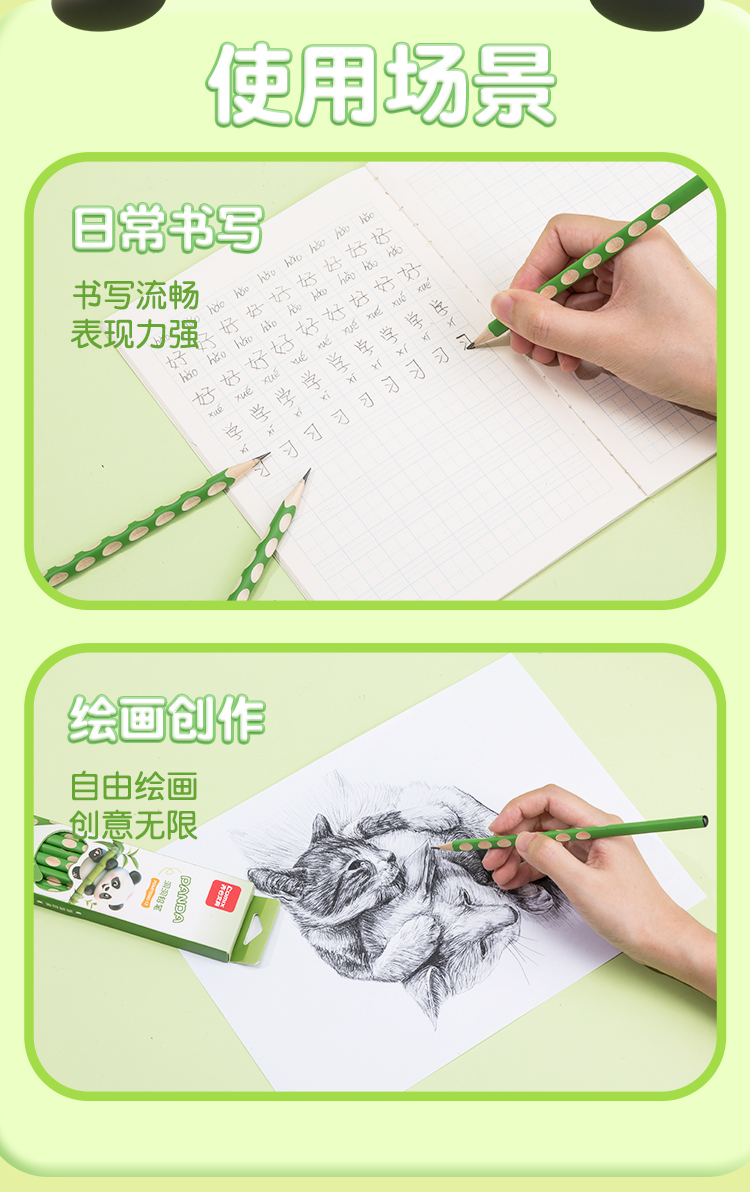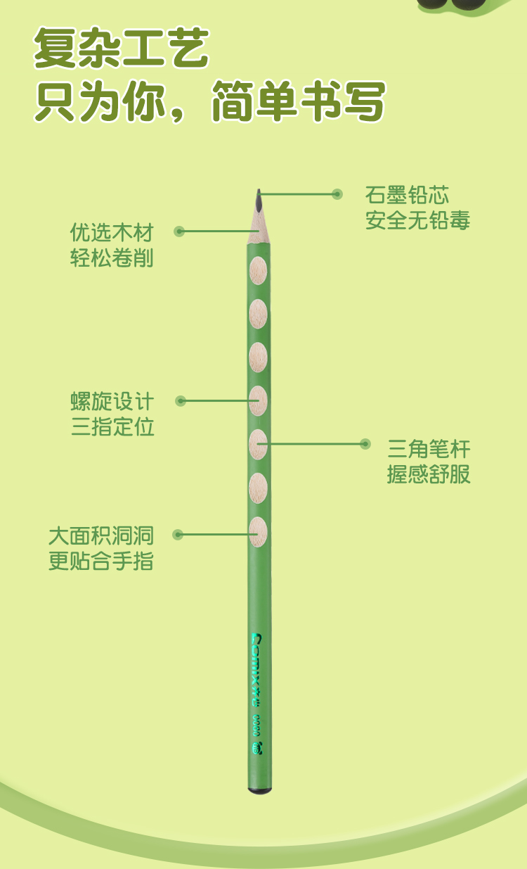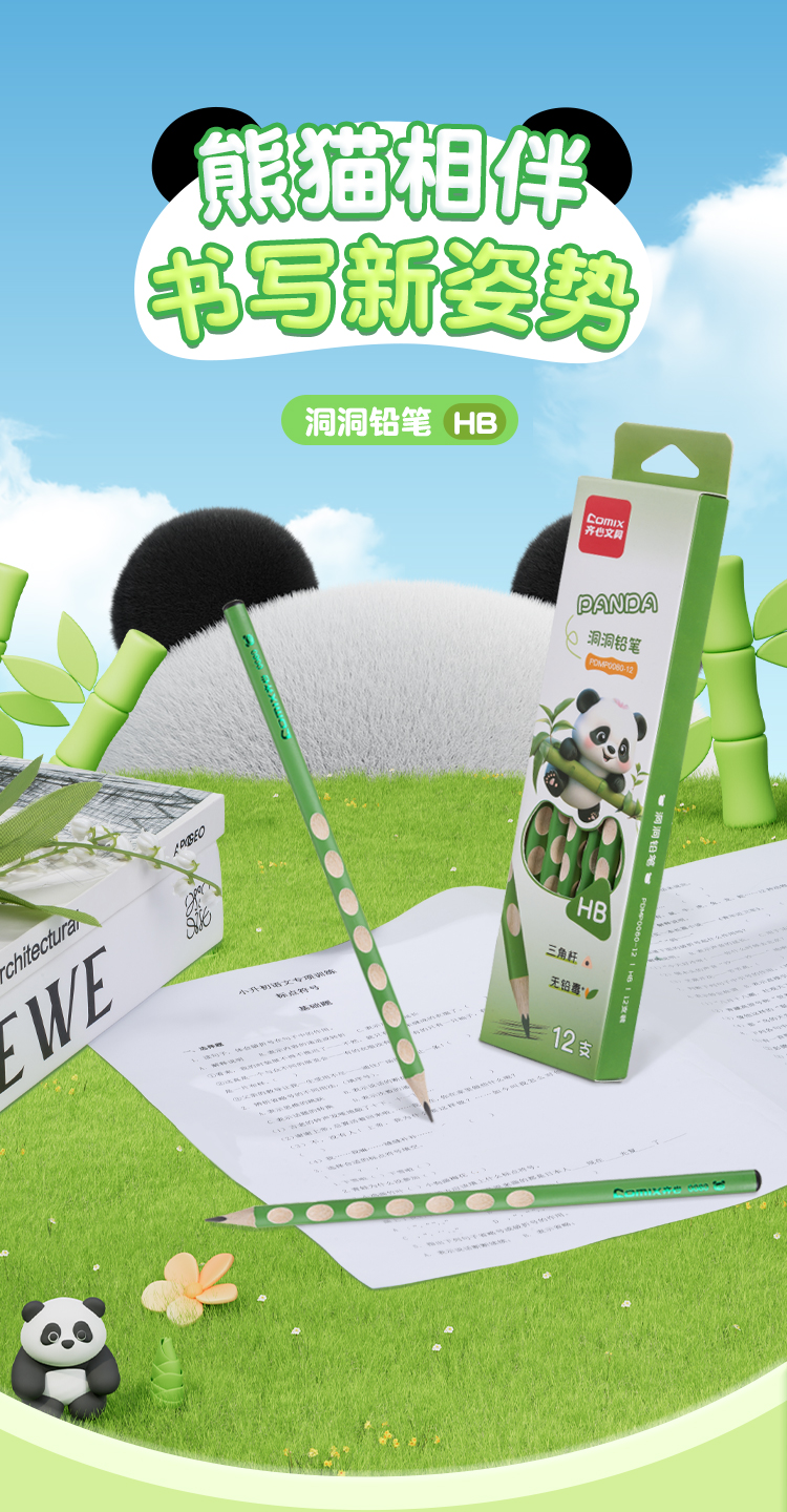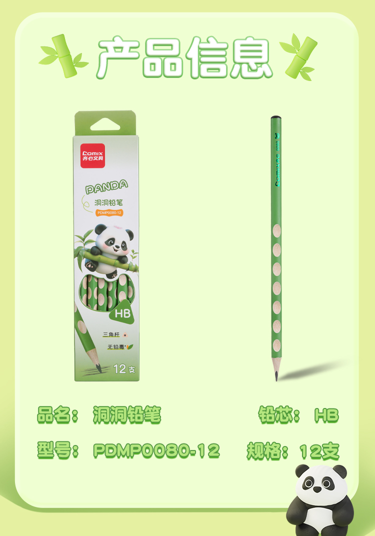 齐心(COMIX) PDMP0080-12 12支 熊猫洞洞铅笔 绿色(单位:盒)