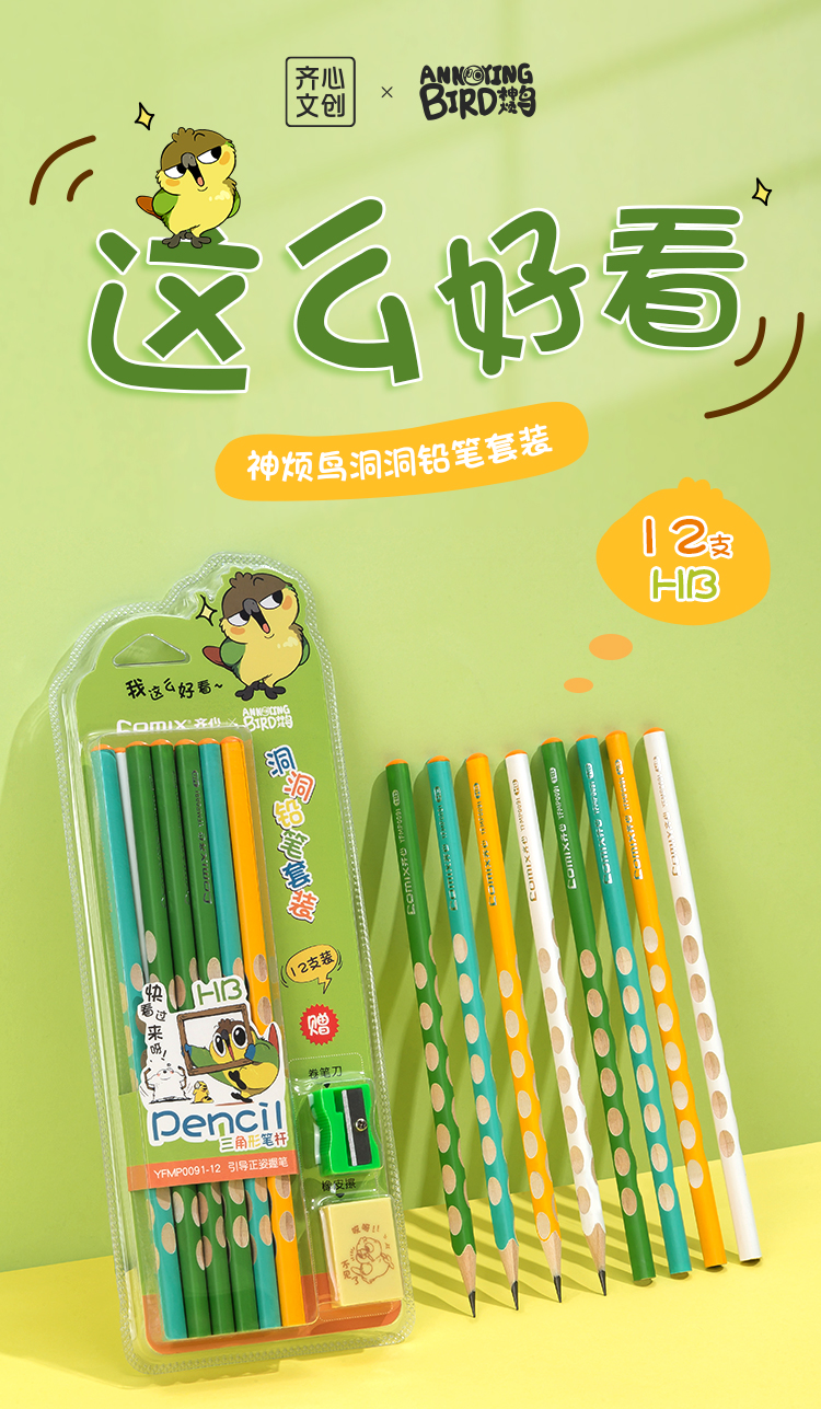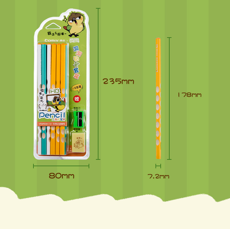 齐心(COMIX) YFMP0091-12 铅笔*12+卷笔刀*1+橡皮 *1 HB洞洞铅笔 混色(单位:套)