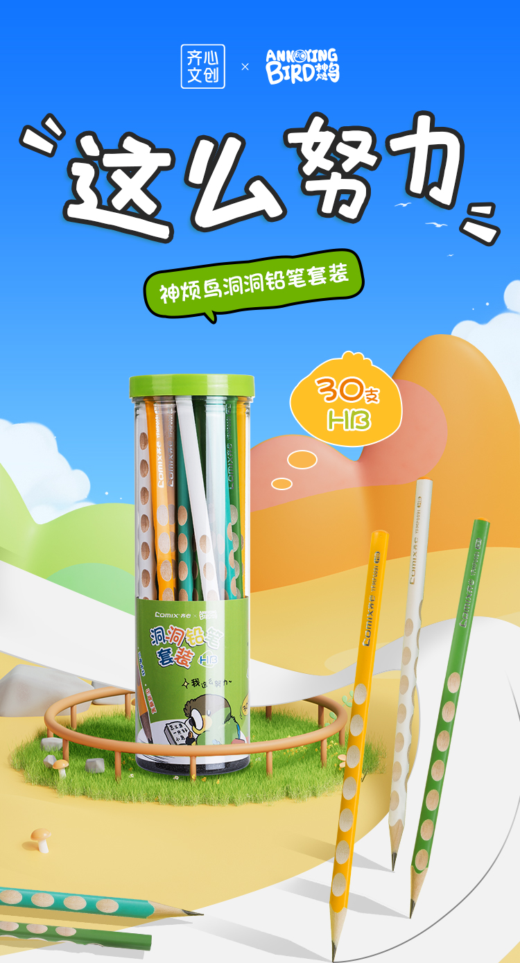 齐心(COMIX) YFMP0091-30 30支/桶 HB洞洞铅笔 混色(单位:盒)