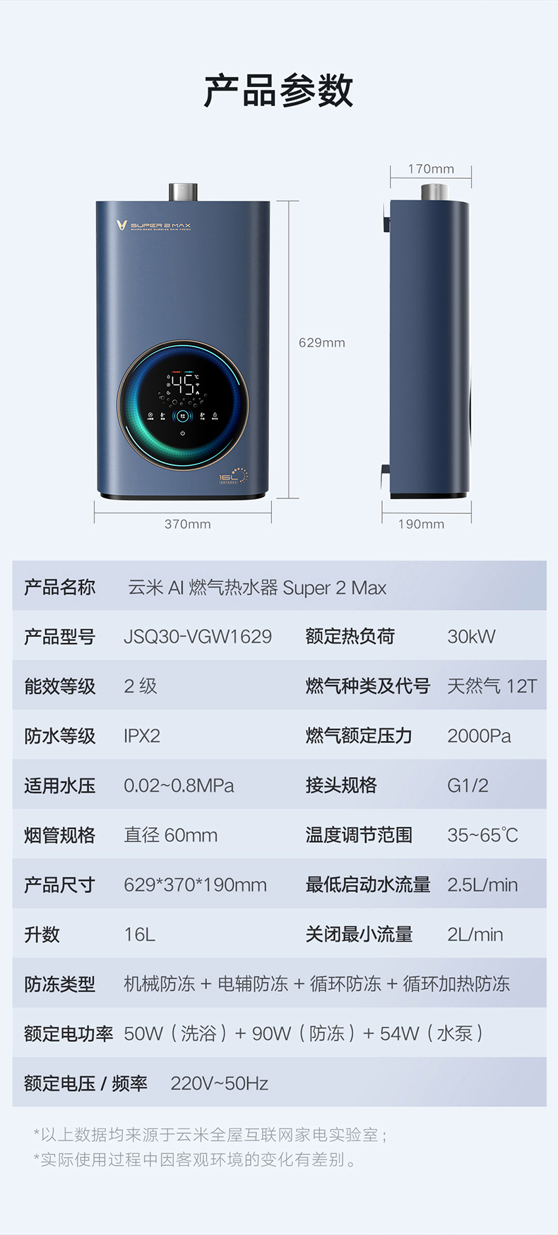 云米 JSQ30-VGW1629 16L 超微气泡美肤热水器 蓝色(单位:台)