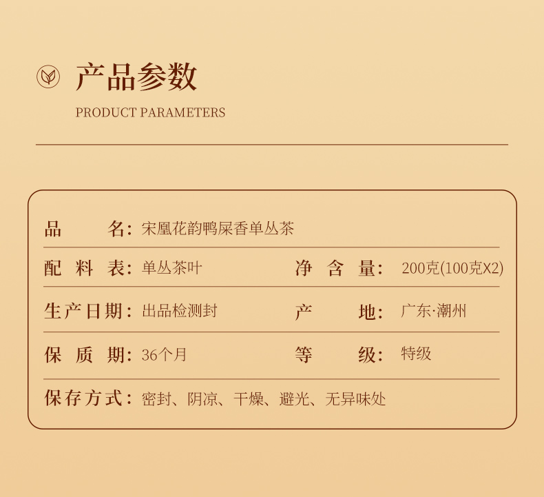 宋凰 单丛茶 200g 花韵鸭屎香 黄色(单位:盒)