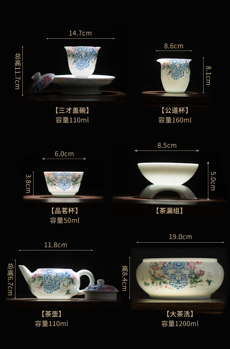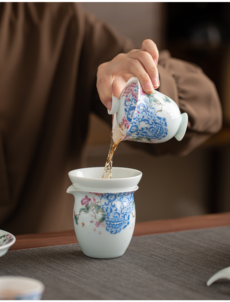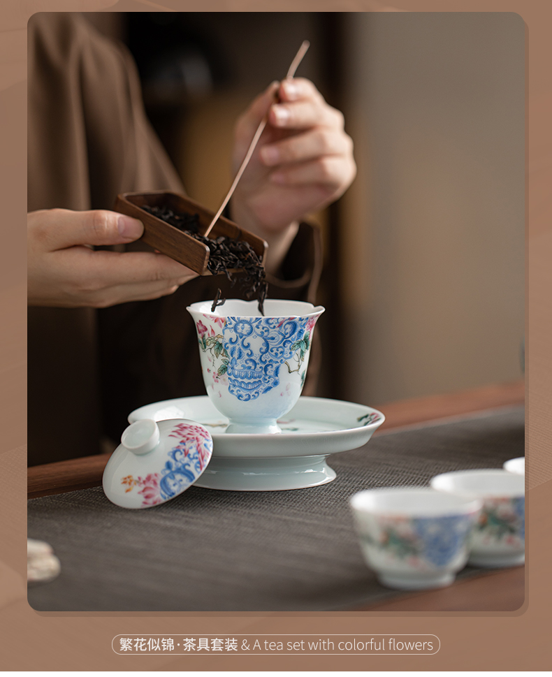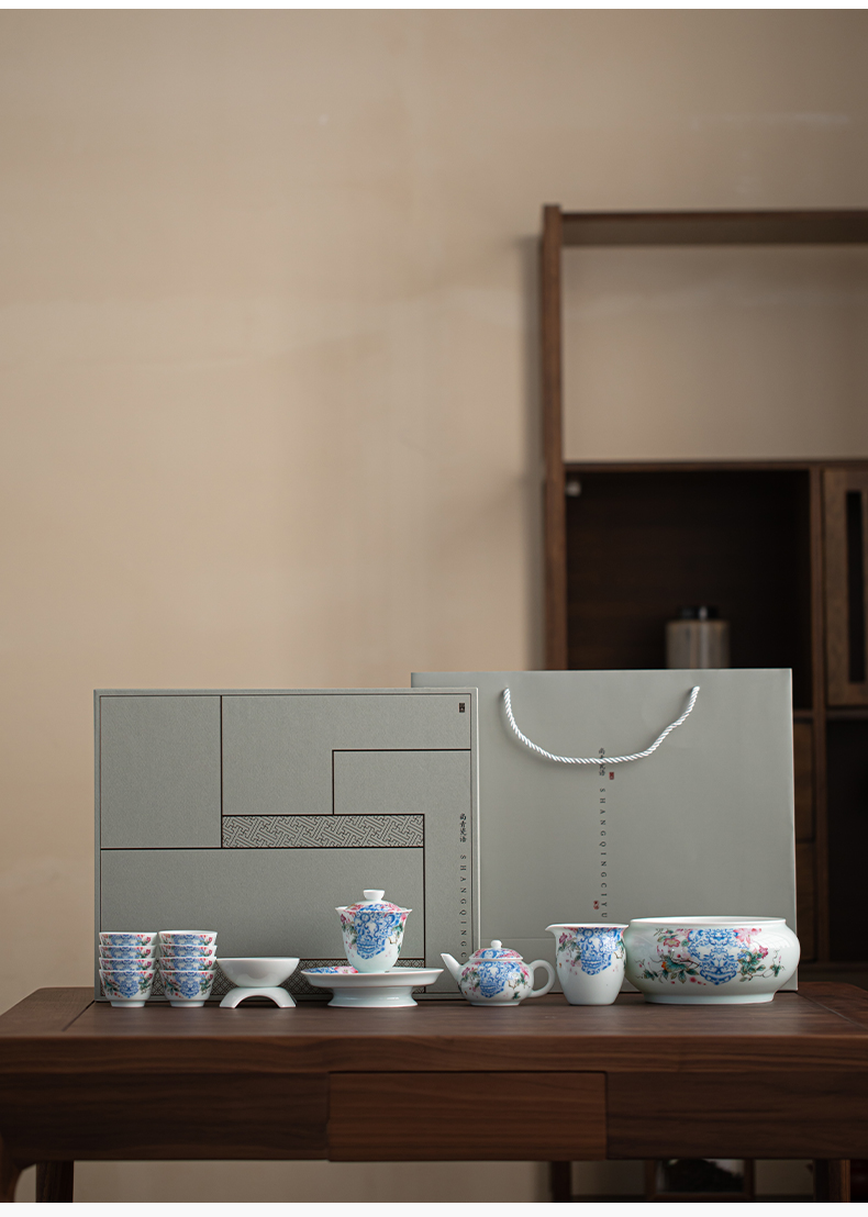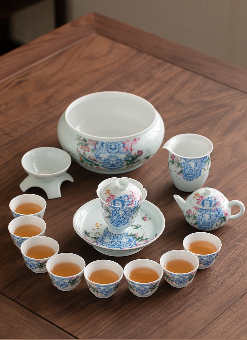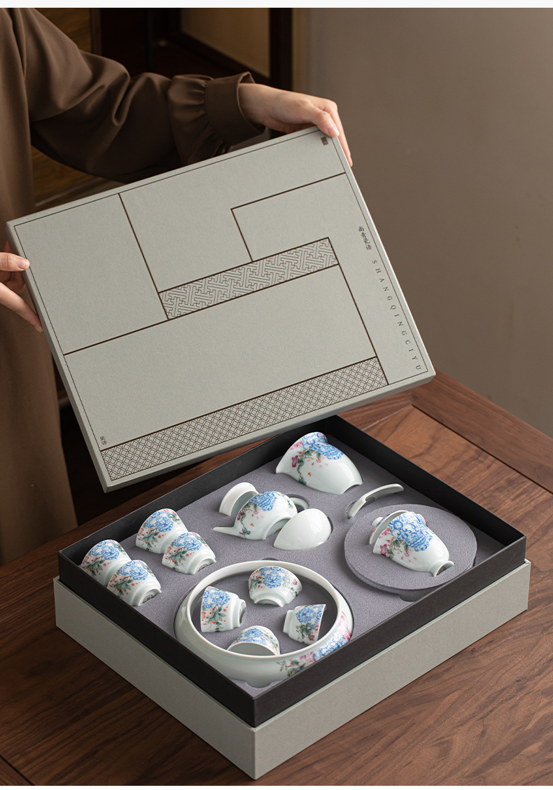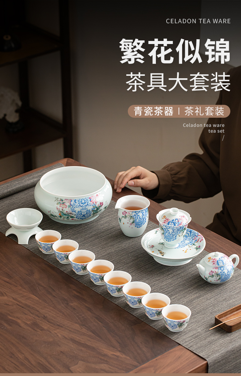 苏氏陶瓷(SUSHI CERAMICS) J1140 13头 青瓷繁花似锦茶具套装 混色(单位:套)