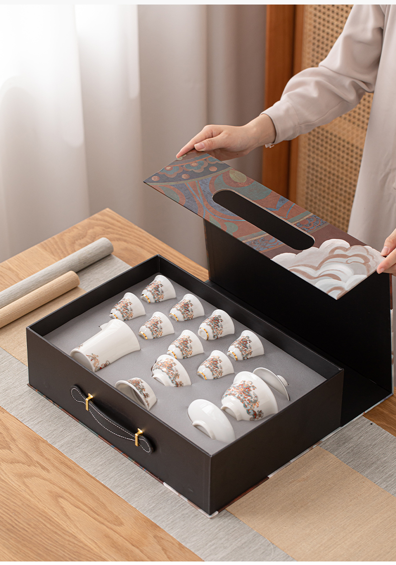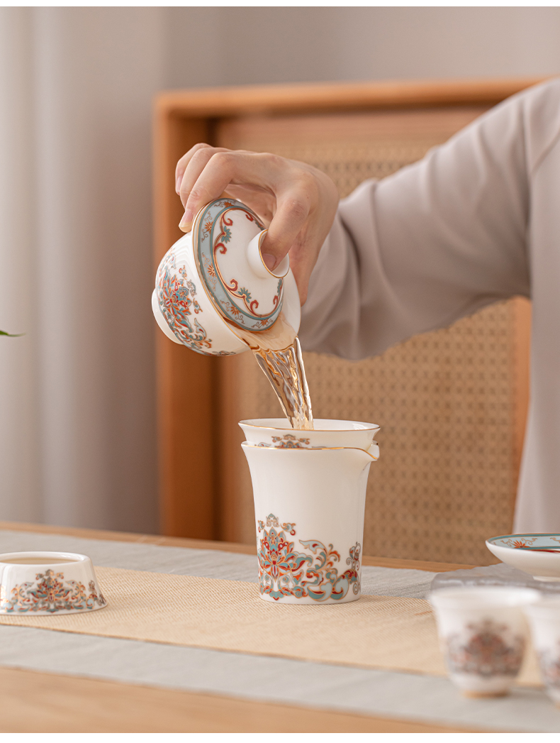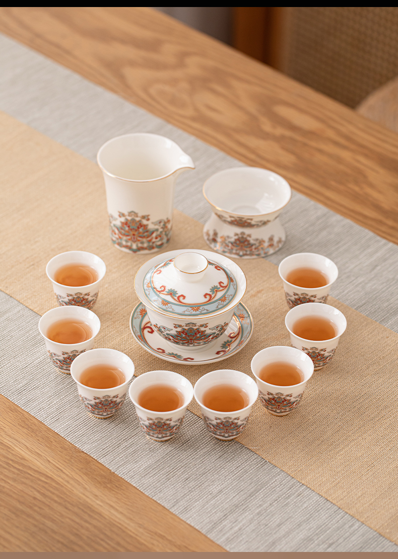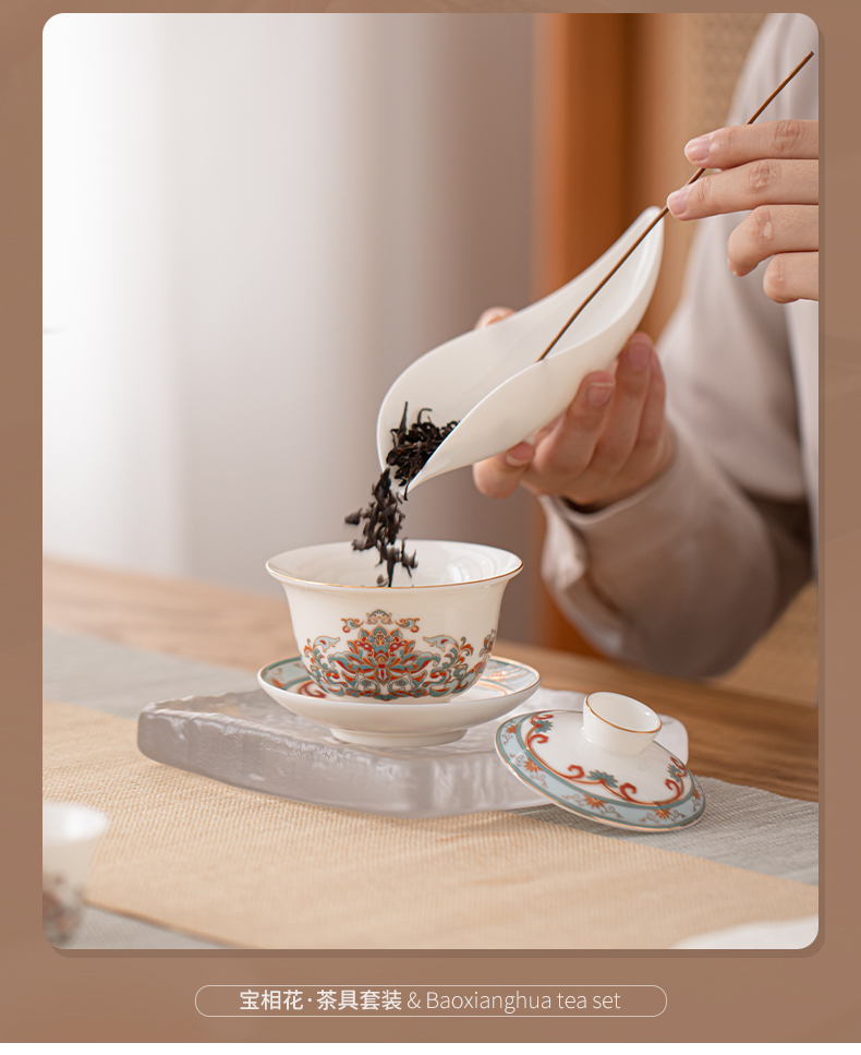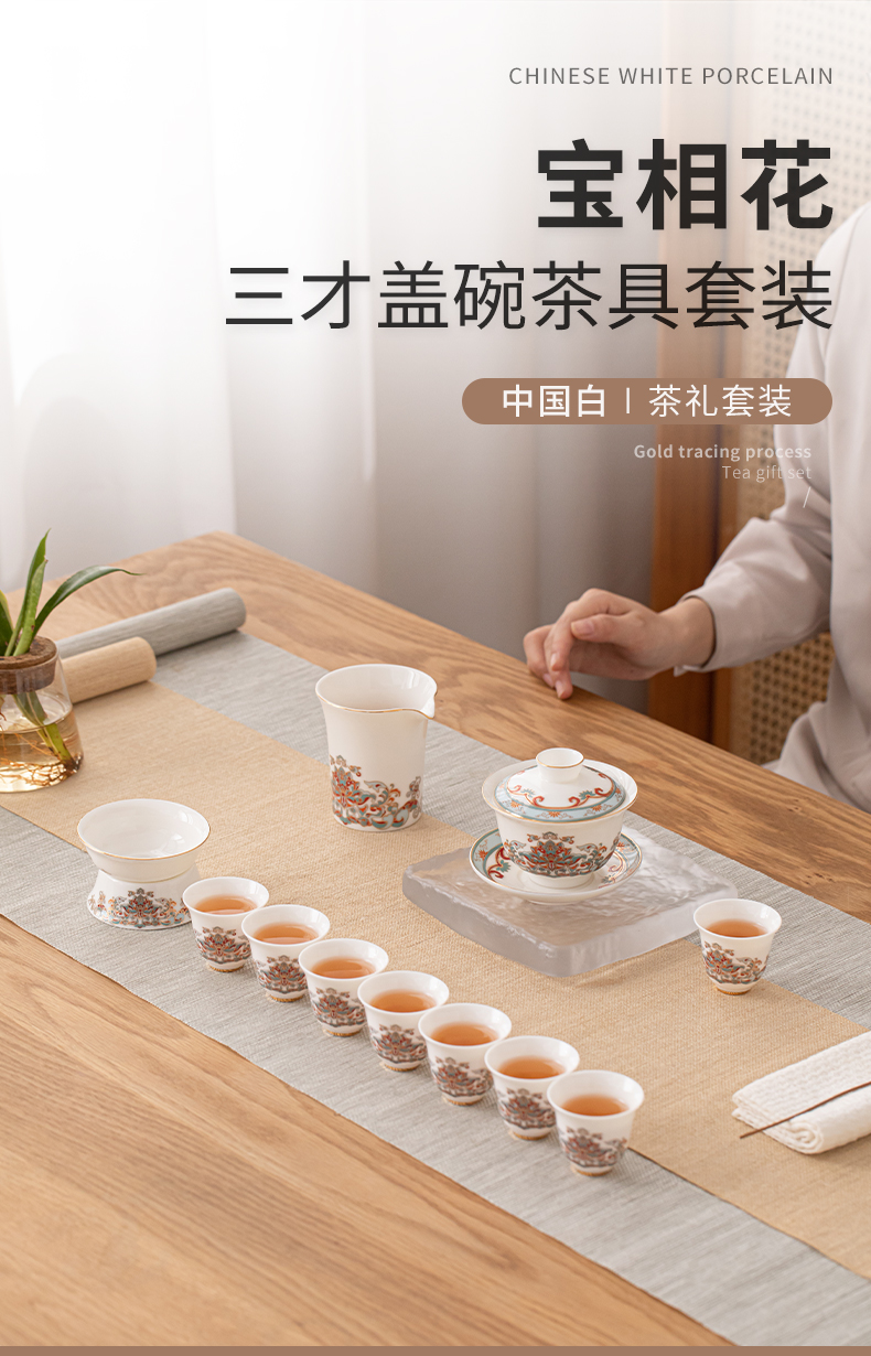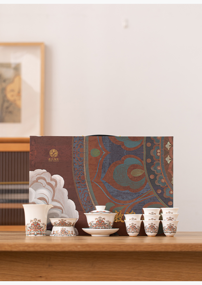 苏氏陶瓷(SUSHI CERAMICS) J1107 11头 敦煌宝相花盖碗套装 白色(单位:套)