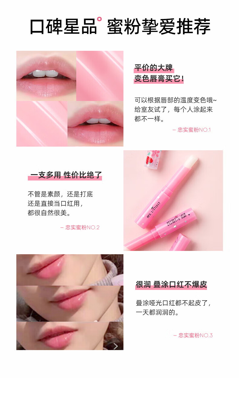 蜜丝婷(Mistine) 小草莓 1.7g 变色唇膏 佳人粉(单位:支)