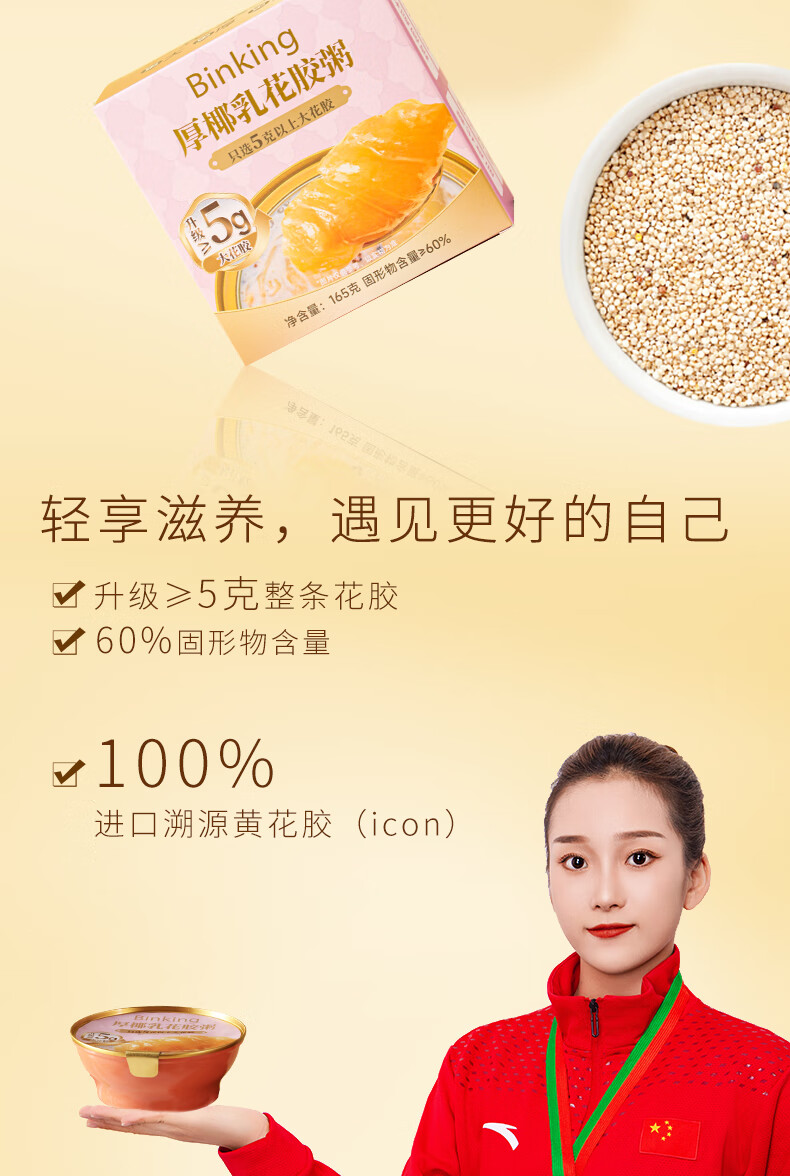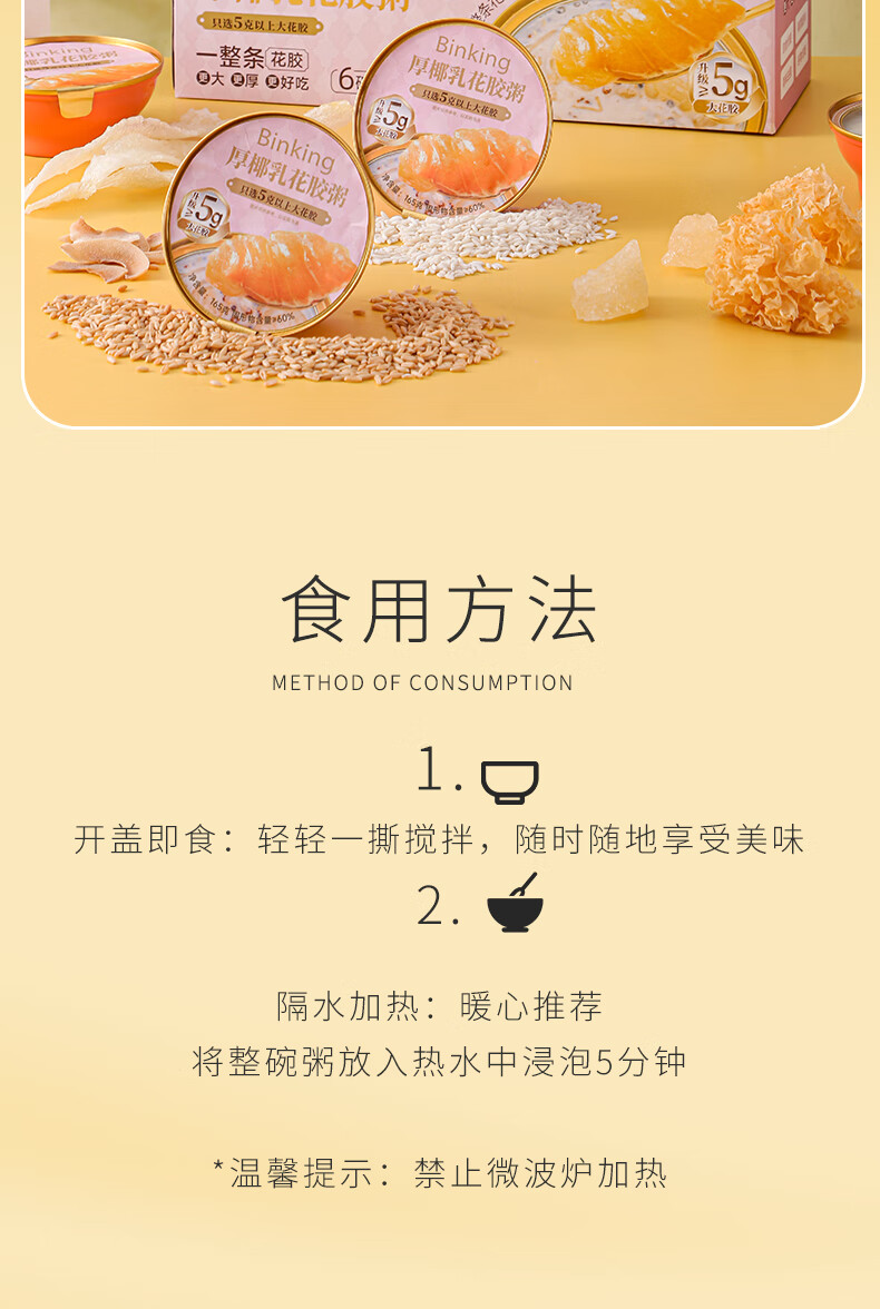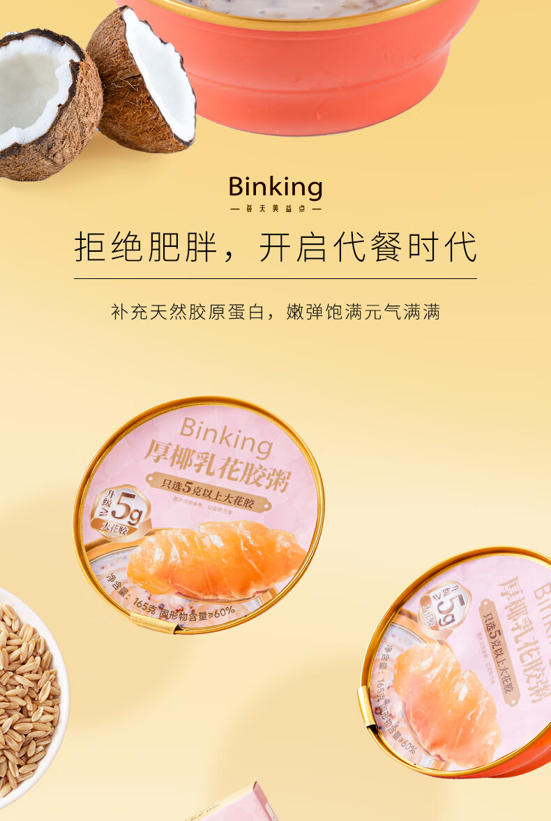 Binking 两箱装 165g/碗/盒*12盒 厚椰乳燕麦花胶粥 淡粉色(单位:组)