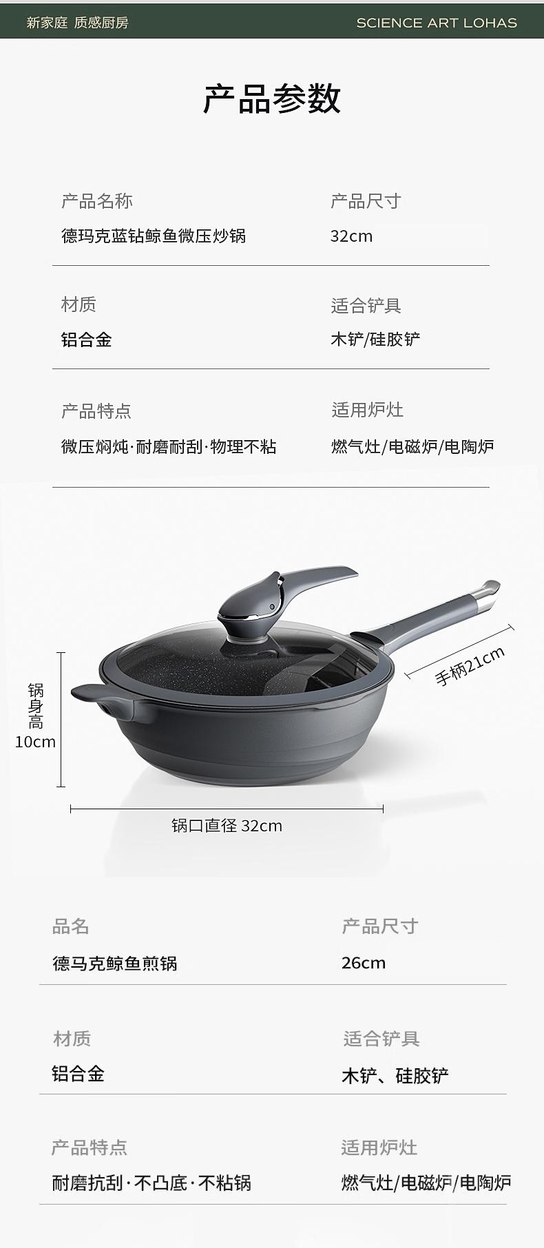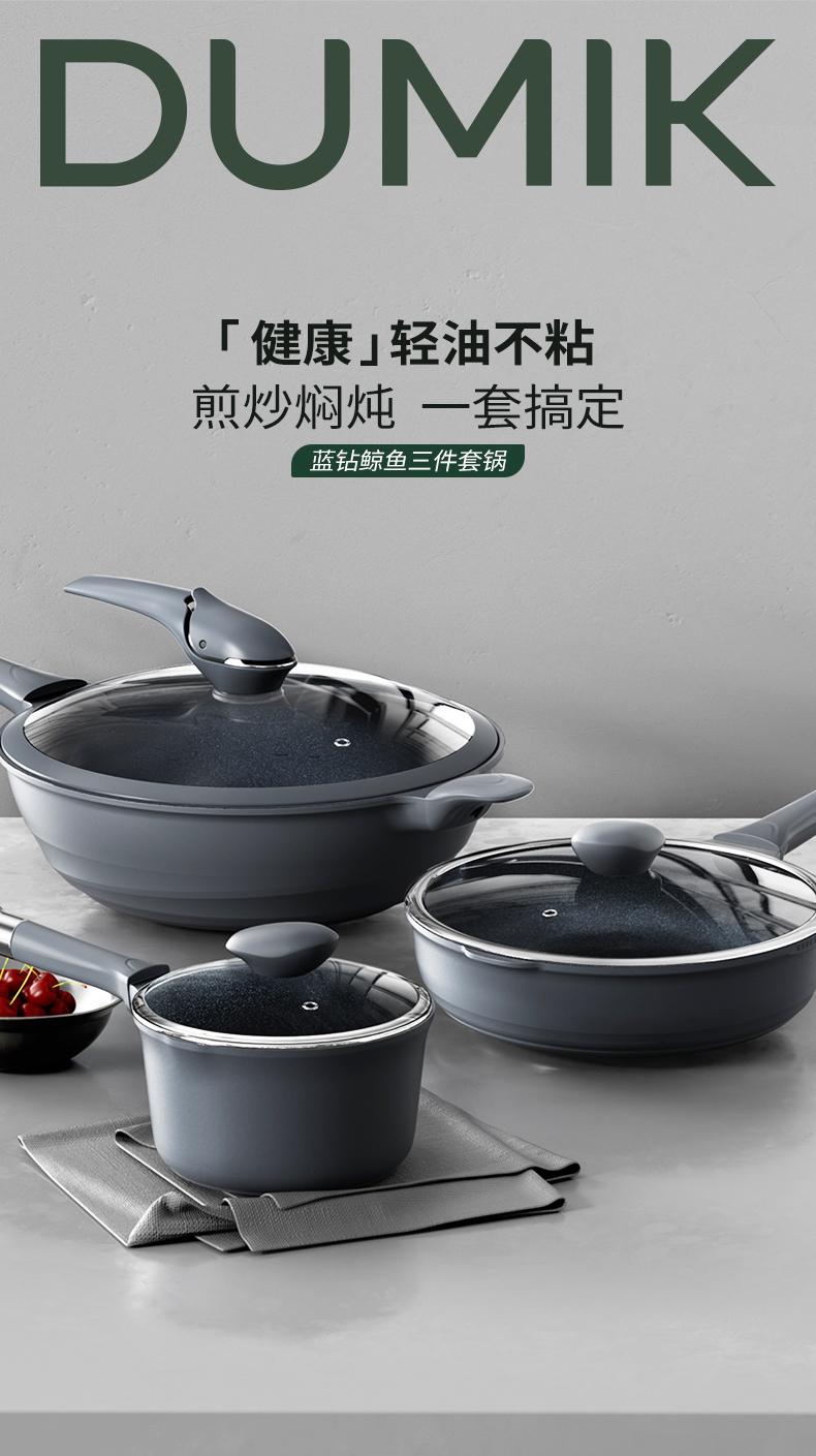 中科德马克(DUMIK) 炒锅+煎锅+奶锅 锅具三件套 鲸鱼蓝钻 灰色(单位:套)
