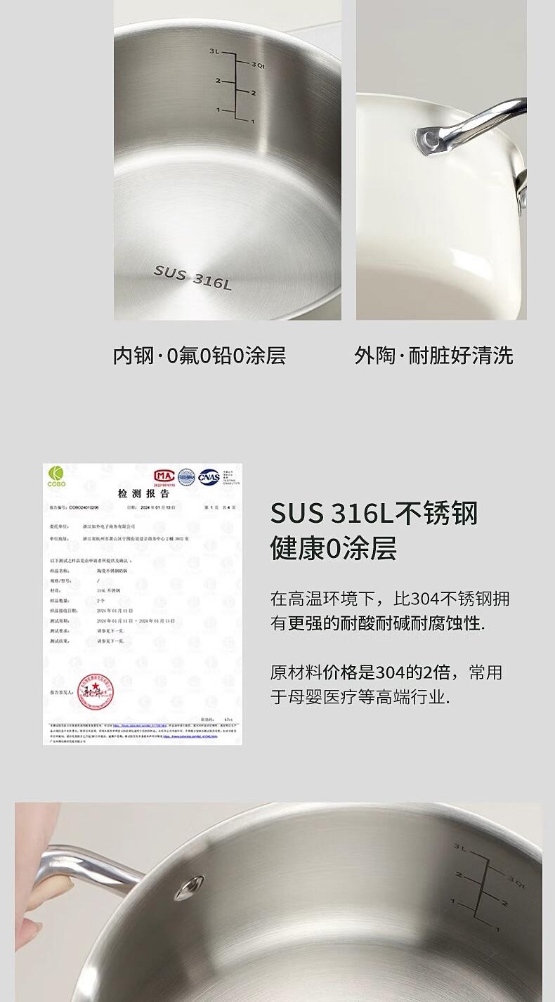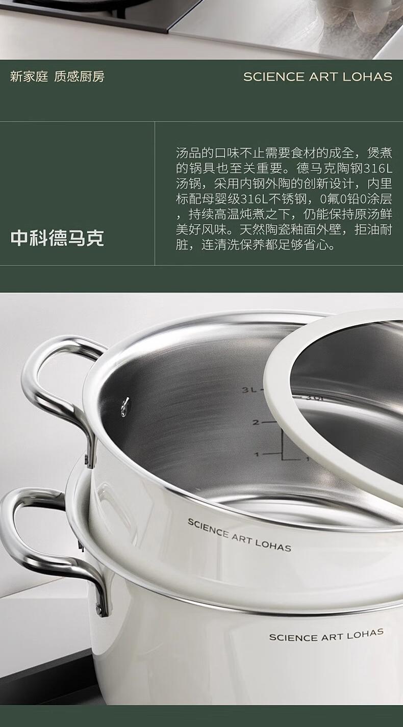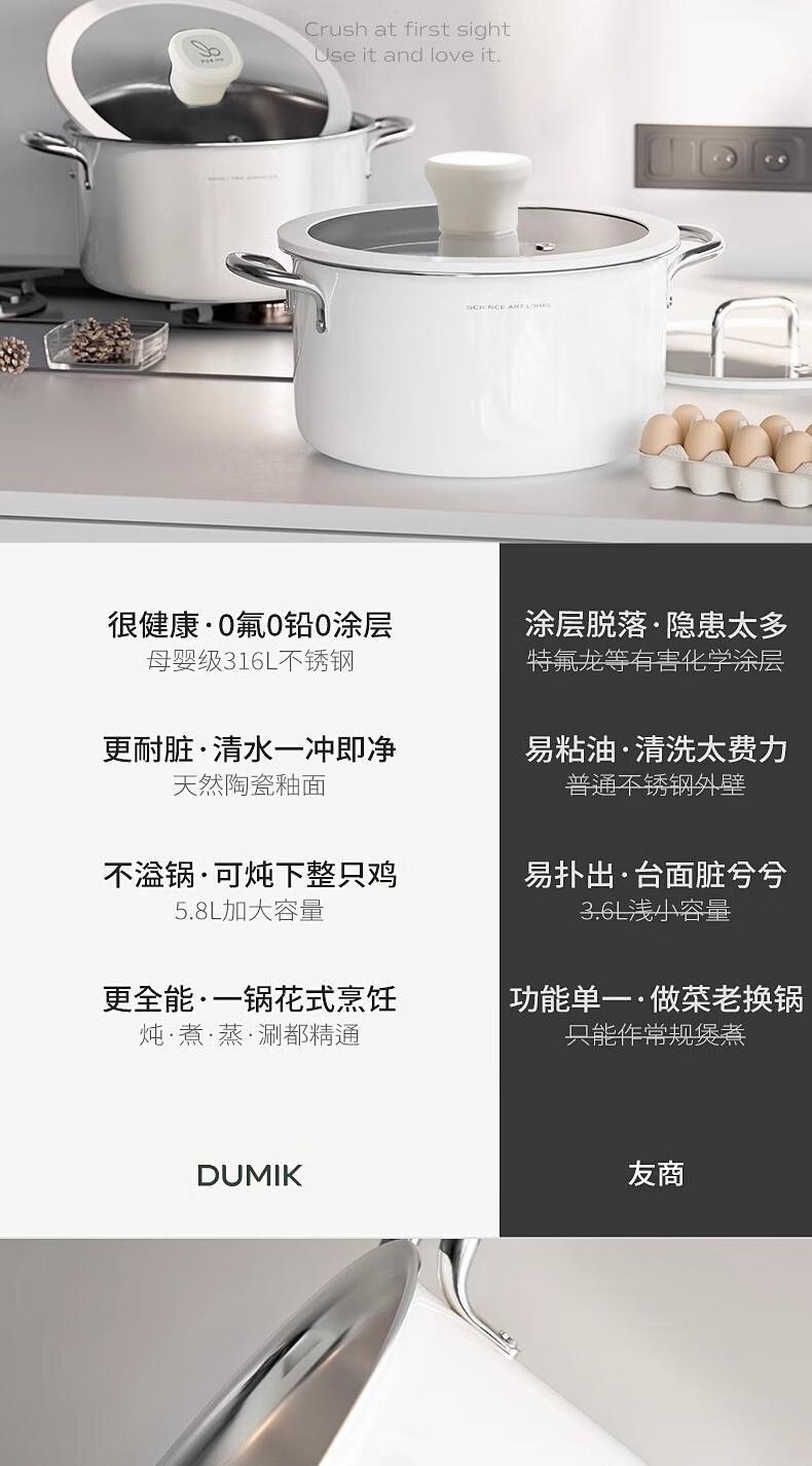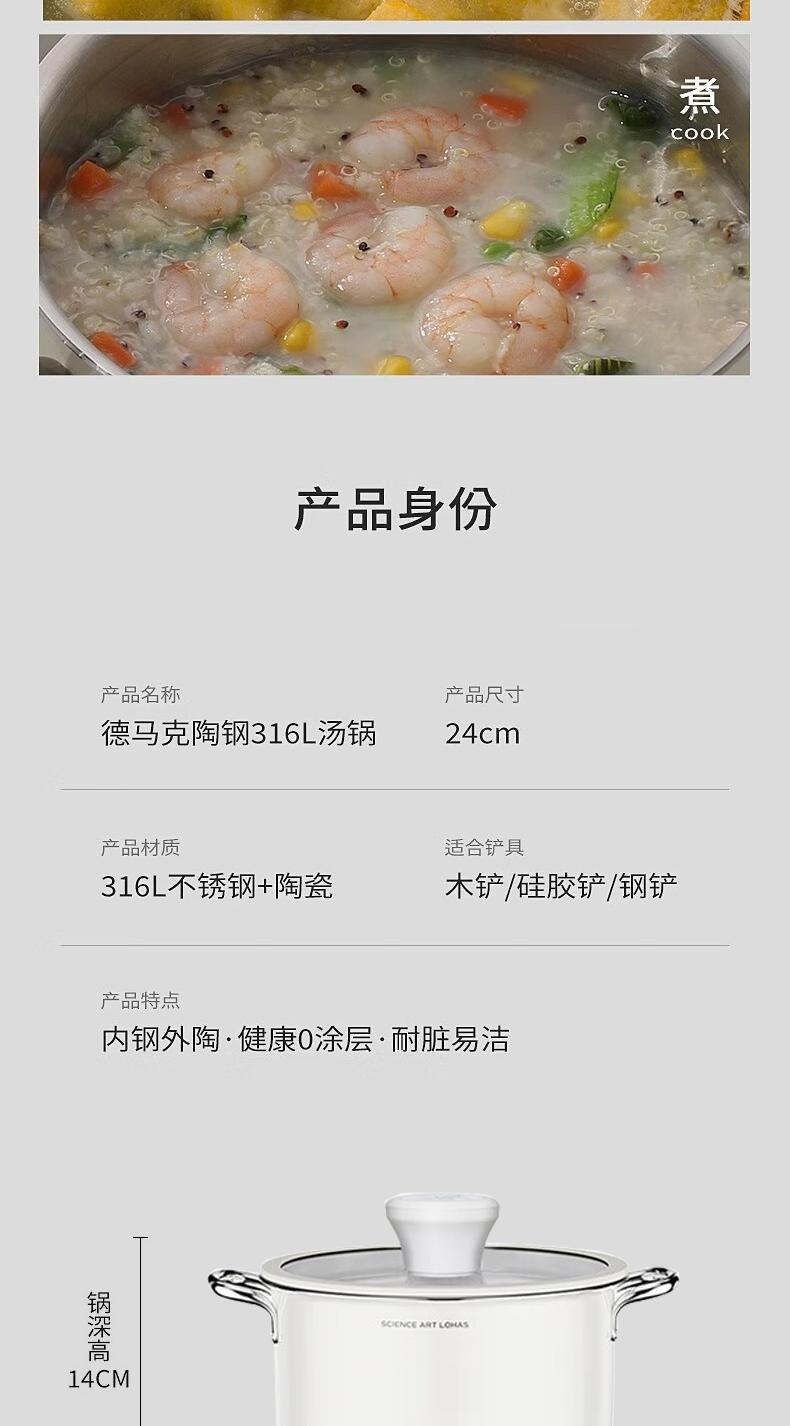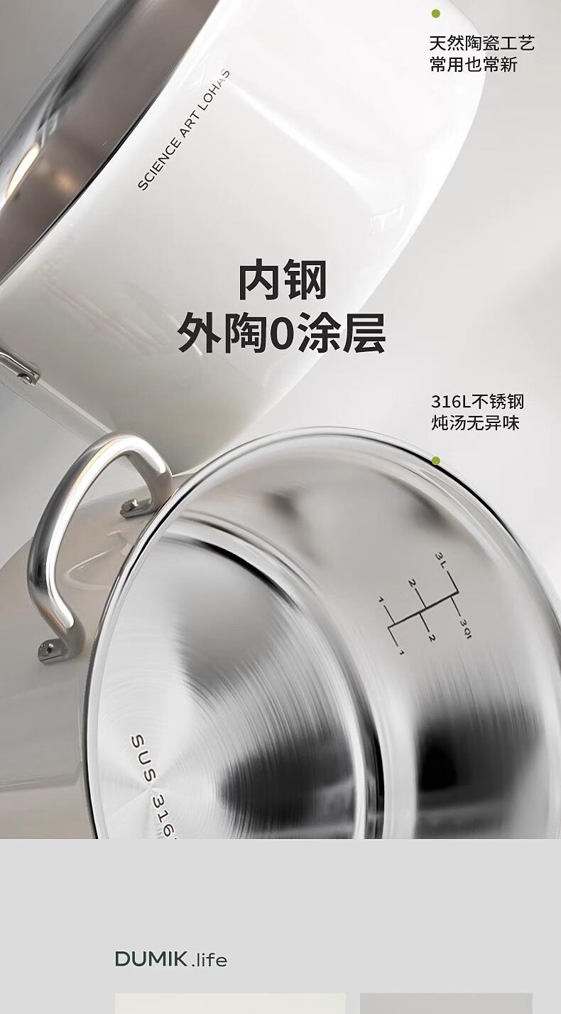中科德马克(DUMIK) D-TA24C41 汤锅 24CM 陶瓷不锈钢系列 白色(单位:个)