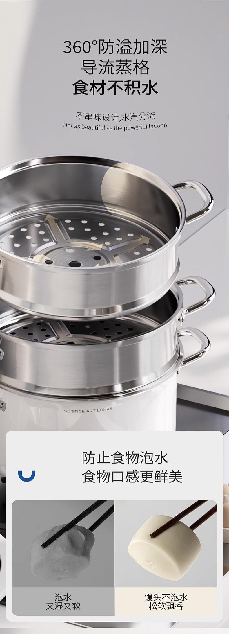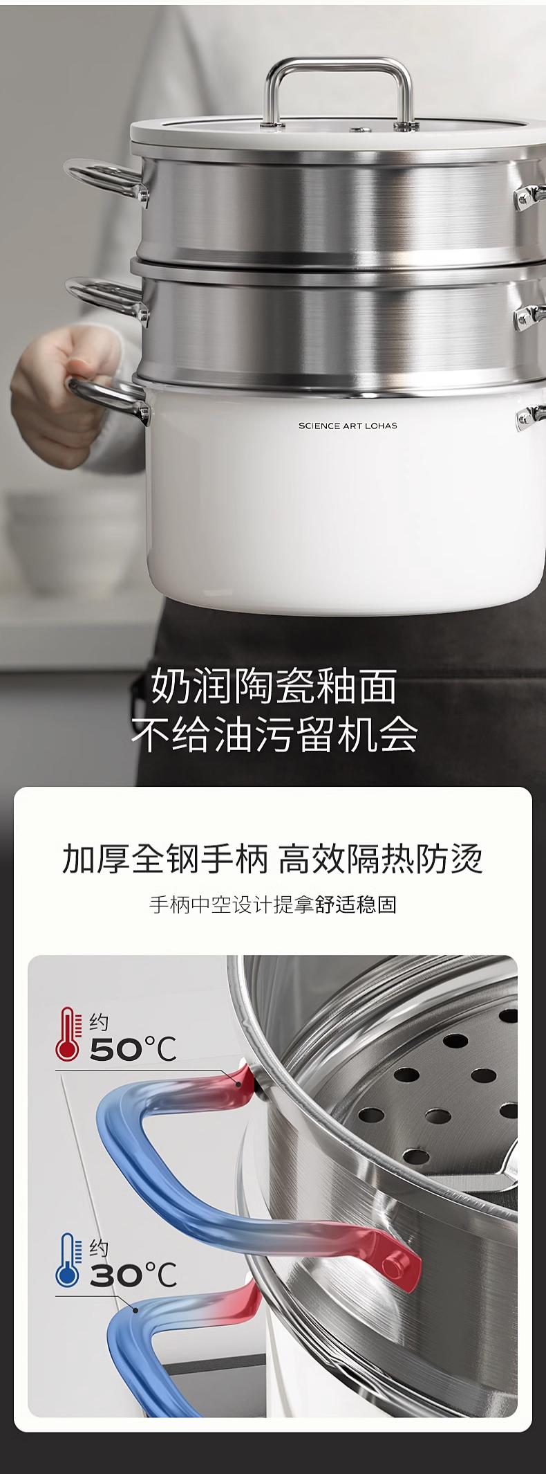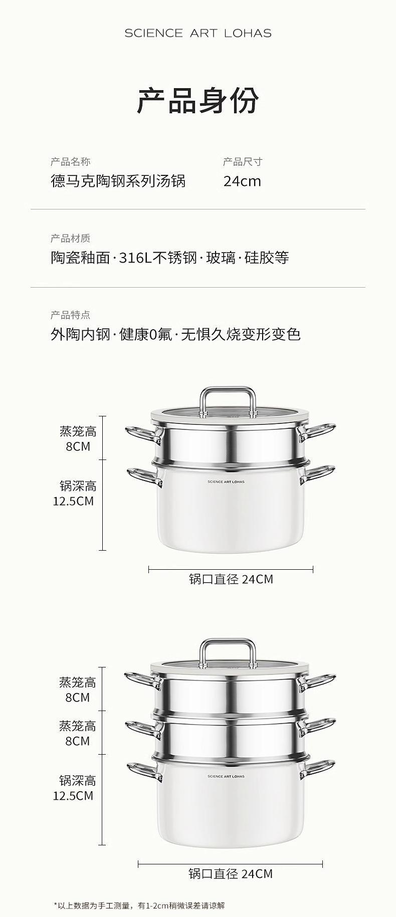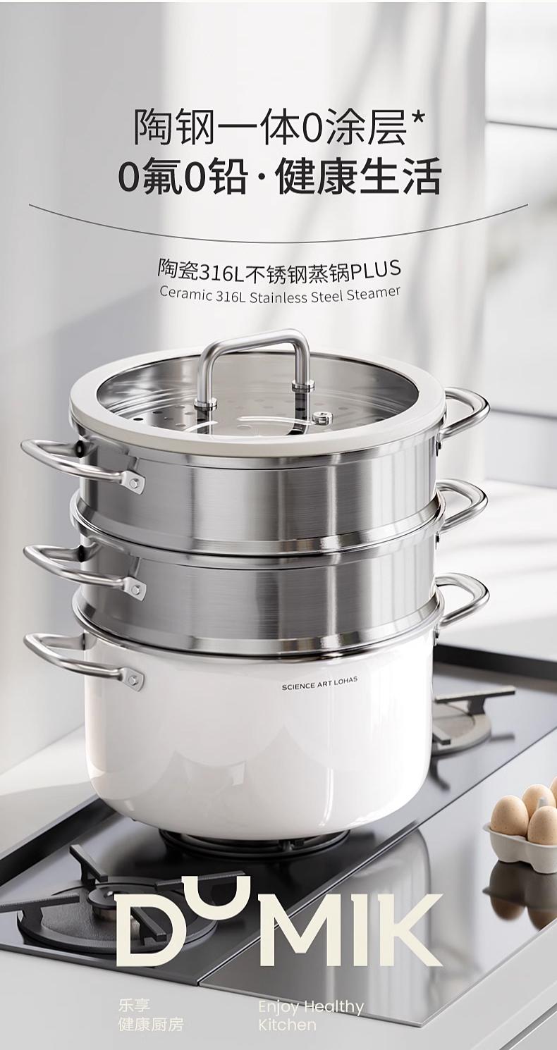 中科德马克(DUMIK) D-TA24C51Z 汤锅(带单蒸笼) 24CM 陶瓷不锈钢 白色(单位:个)