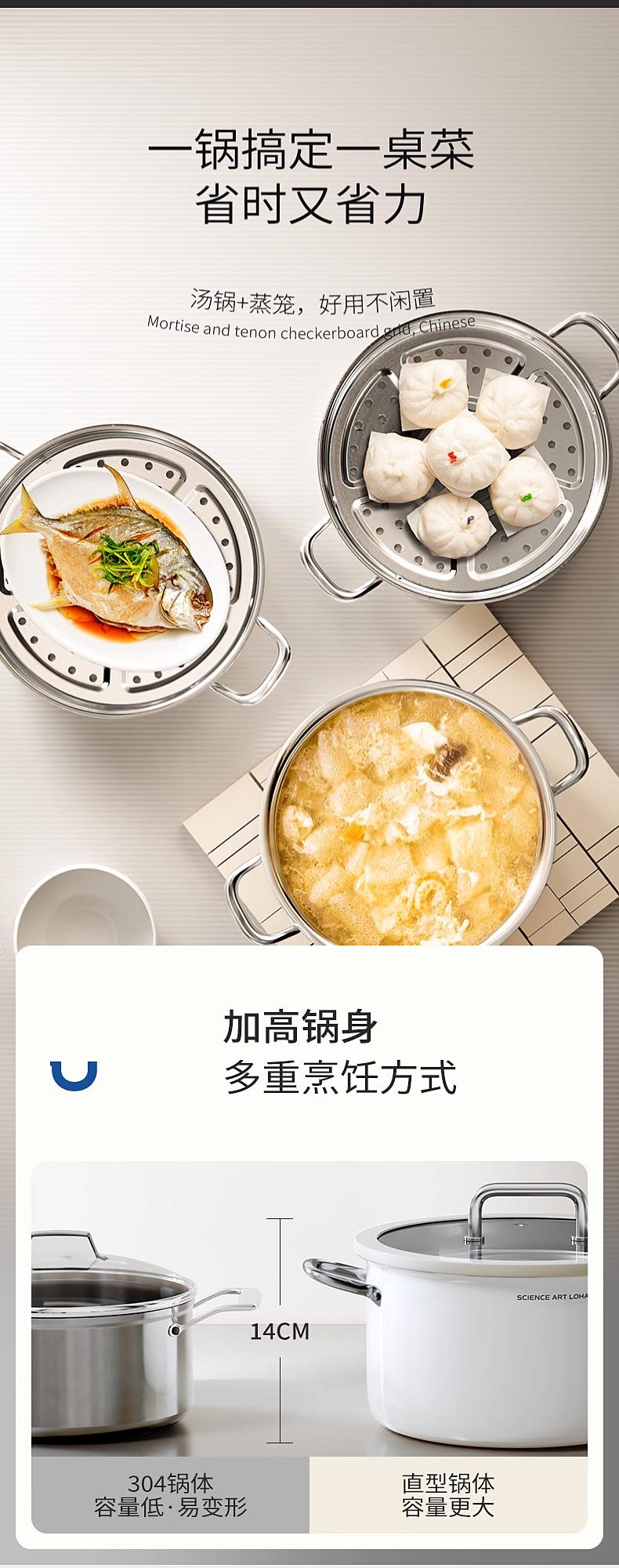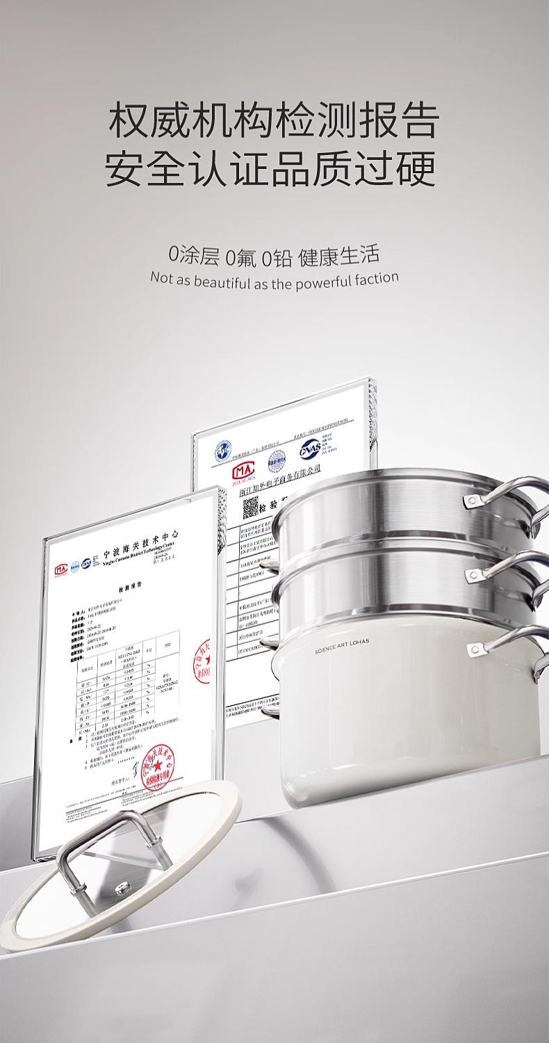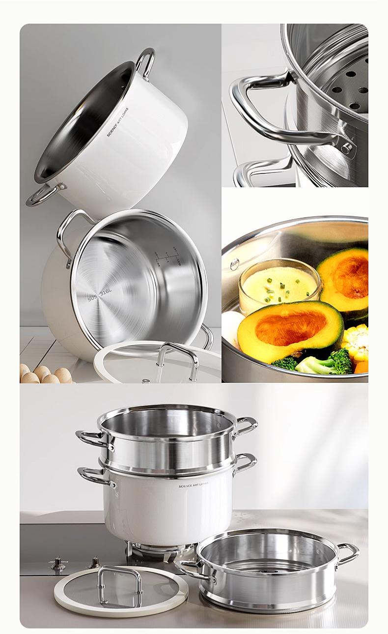 中科德马克(DUMIK) D-TA24C51Z 汤锅(带单蒸笼) 24CM 陶瓷不锈钢 白色(单位:个)