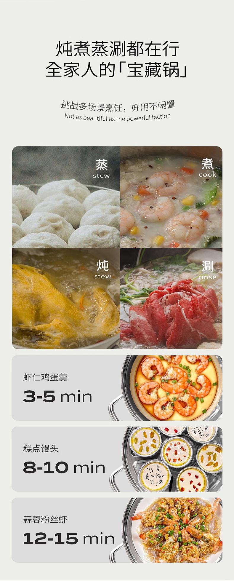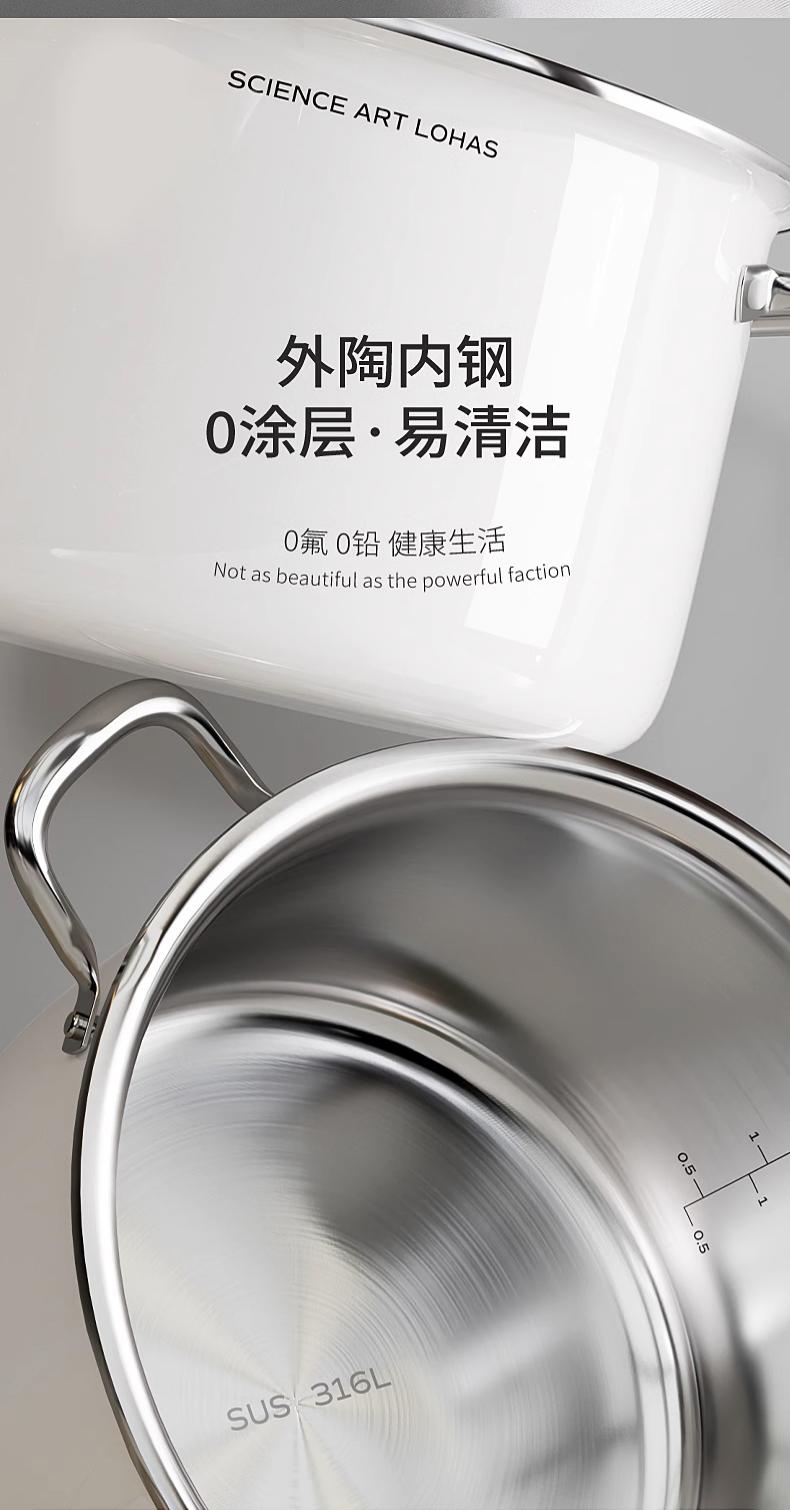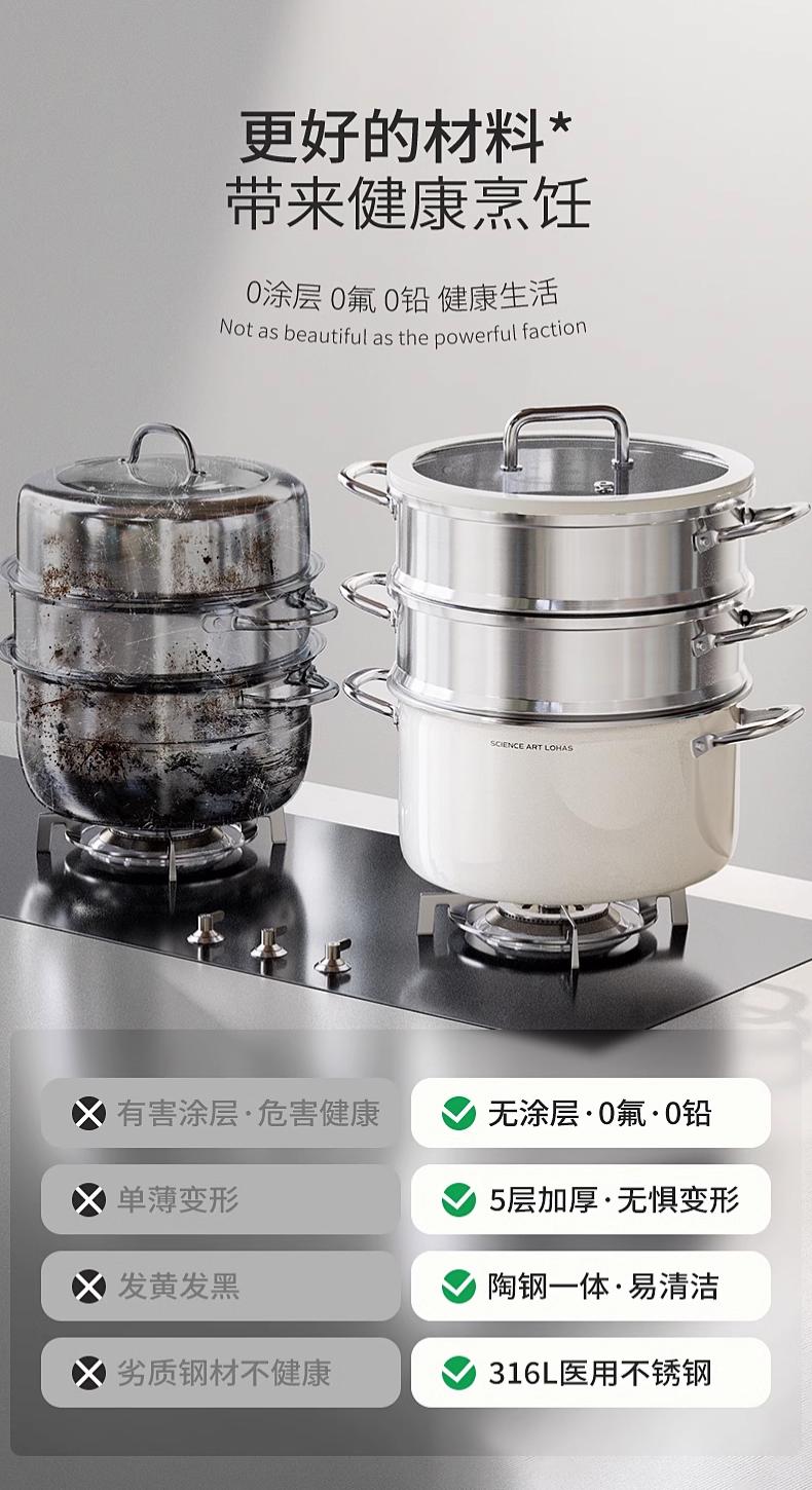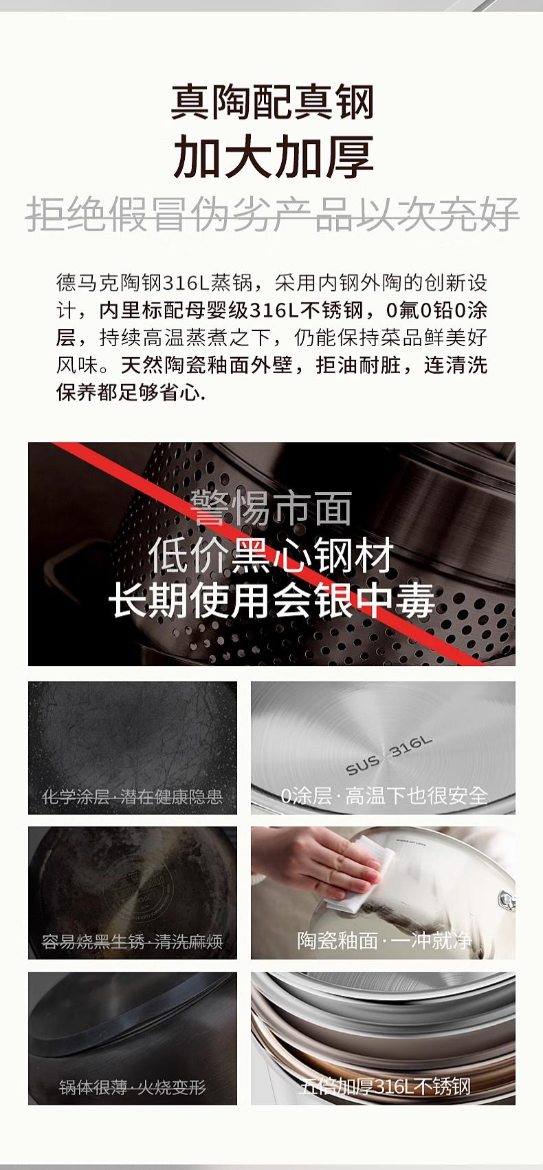 中科德马克(DUMIK) D-TA24C51Z 汤锅(带单蒸笼) 24CM 陶瓷不锈钢 白色(单位:个)