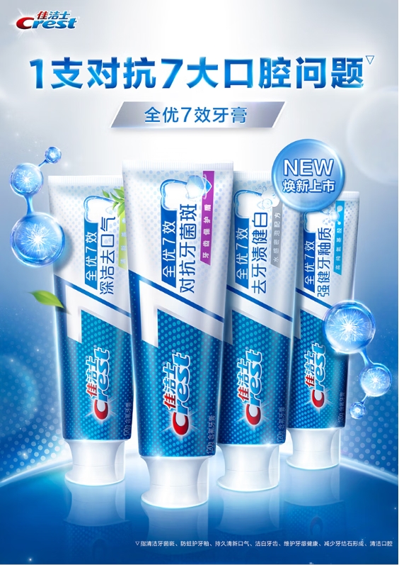 佳洁士(CREST) 全优7效 40克*3支 牙膏套组 宝石蓝(单位:套)