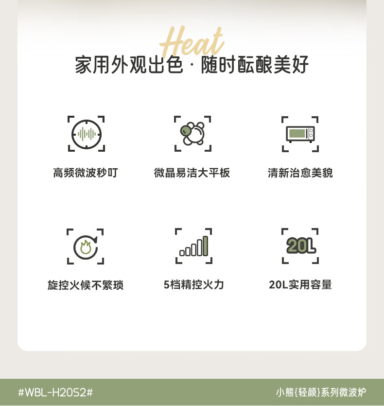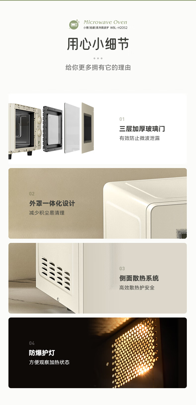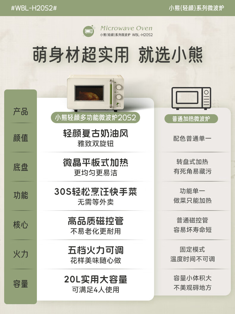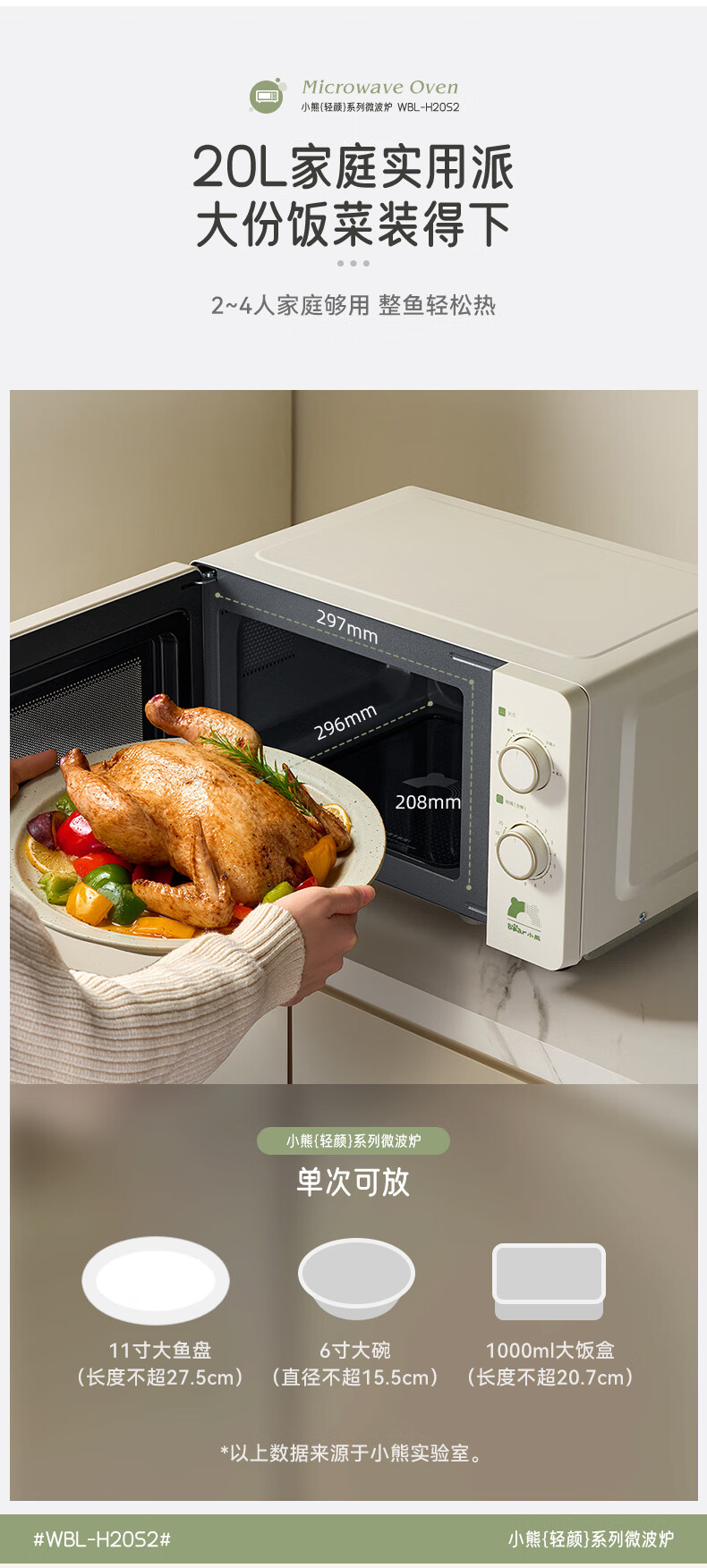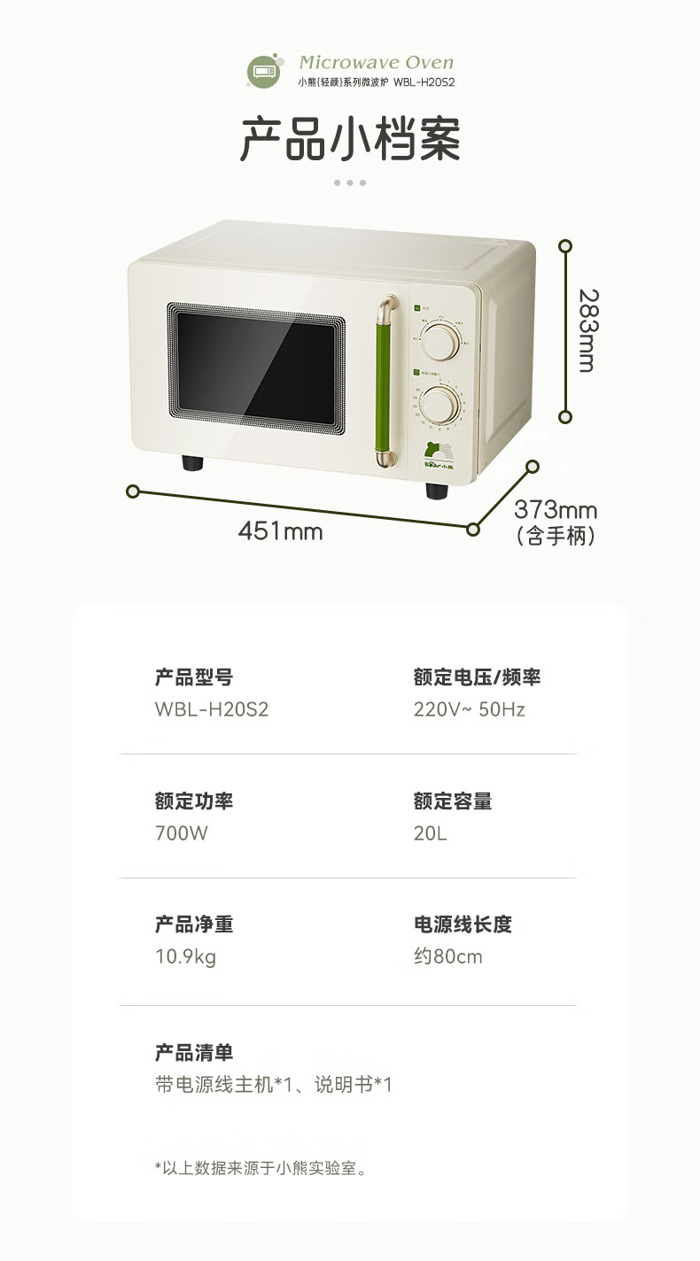 小熊(Bear) WBL-H20S2 20L 微波炉 奶油白(单位:台)