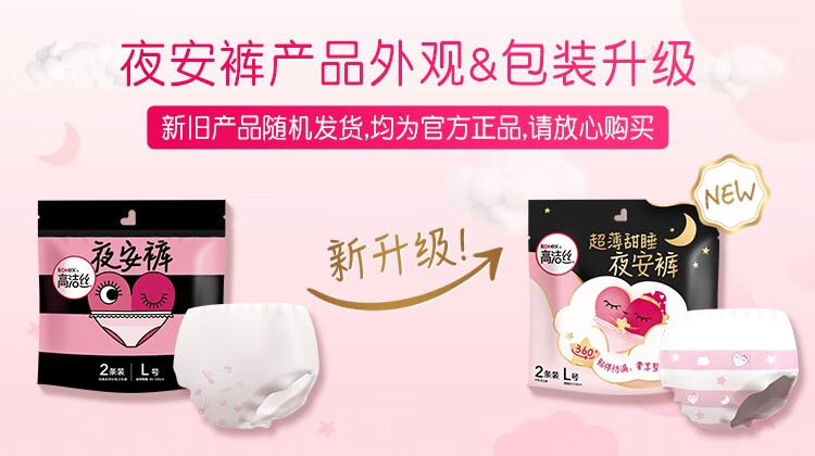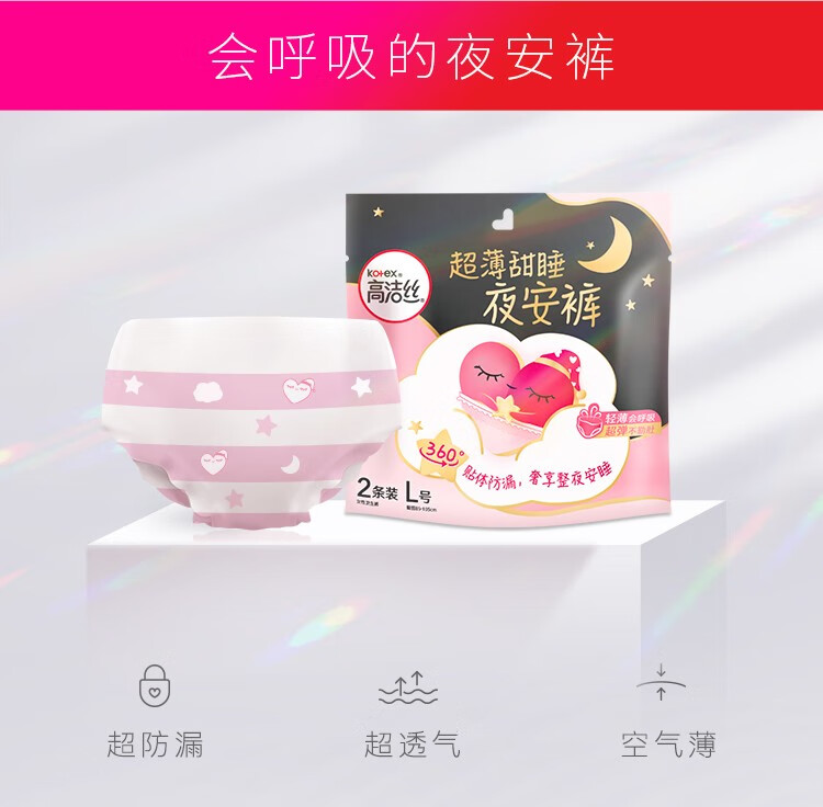 高洁丝(Kotex) L码 超值装20条 安心防漏超薄夜安裤 粉色(单位:箱)