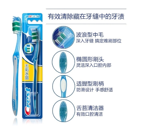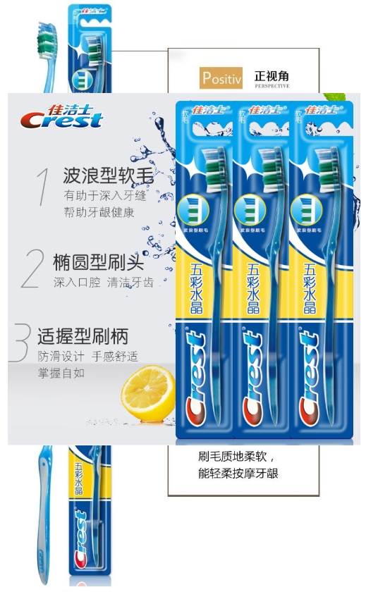 佳洁士(CREST) 软毛牙刷 3支 五彩水晶 混色(单位:组)