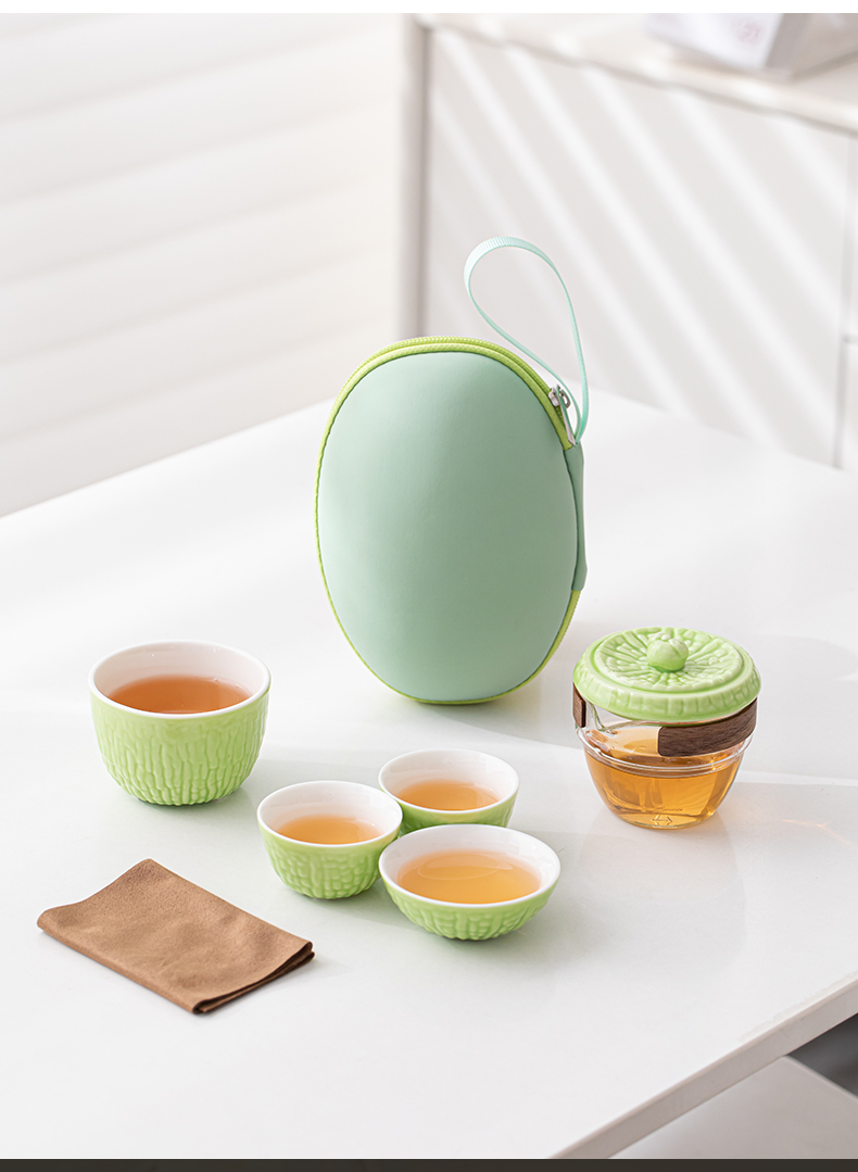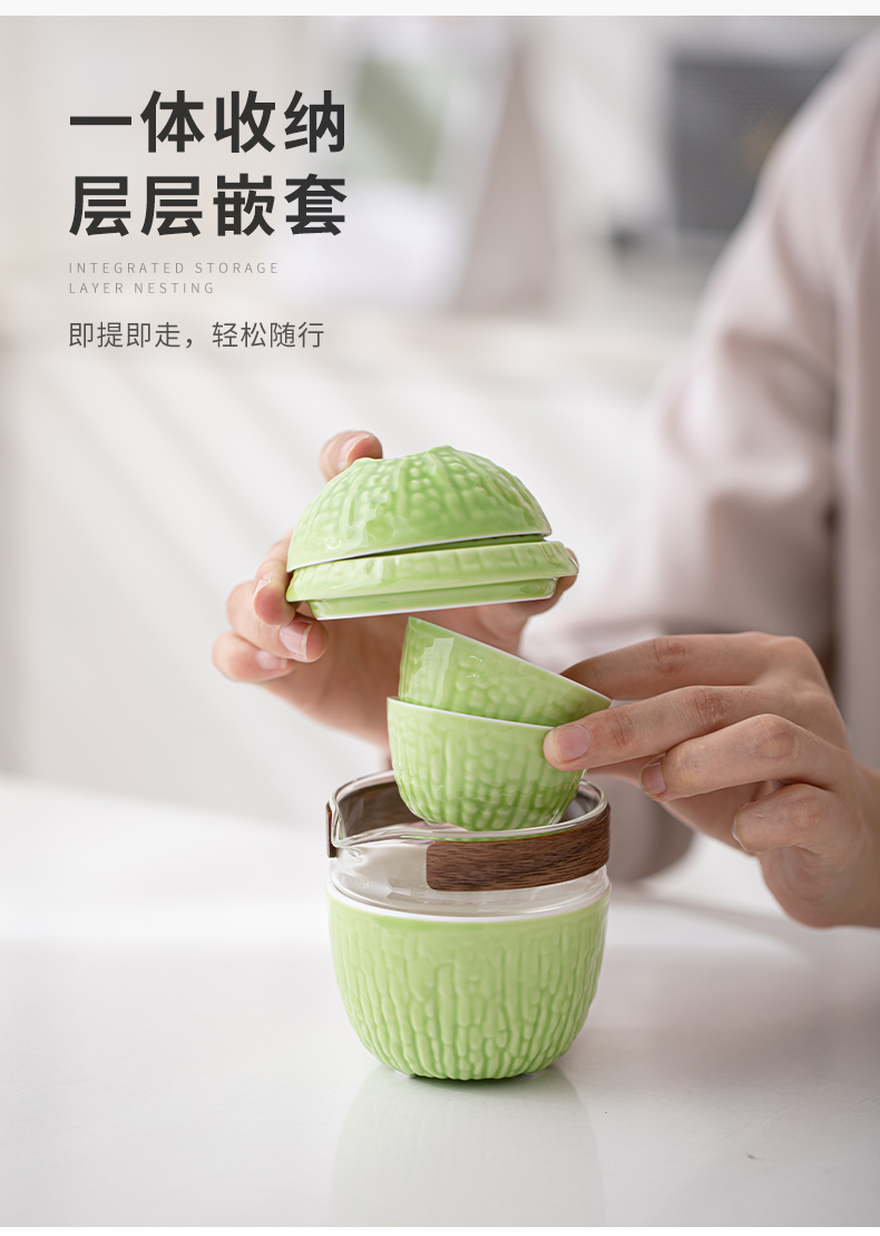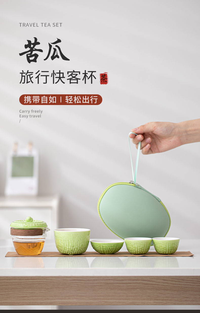 苏氏陶瓷(SUSHI CERAMICS) J1160 4头 苦尽甘来旅行快客茶具 绿色(单位:套)