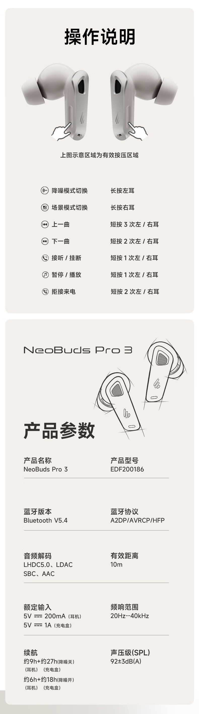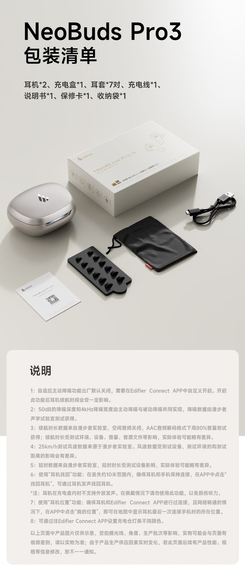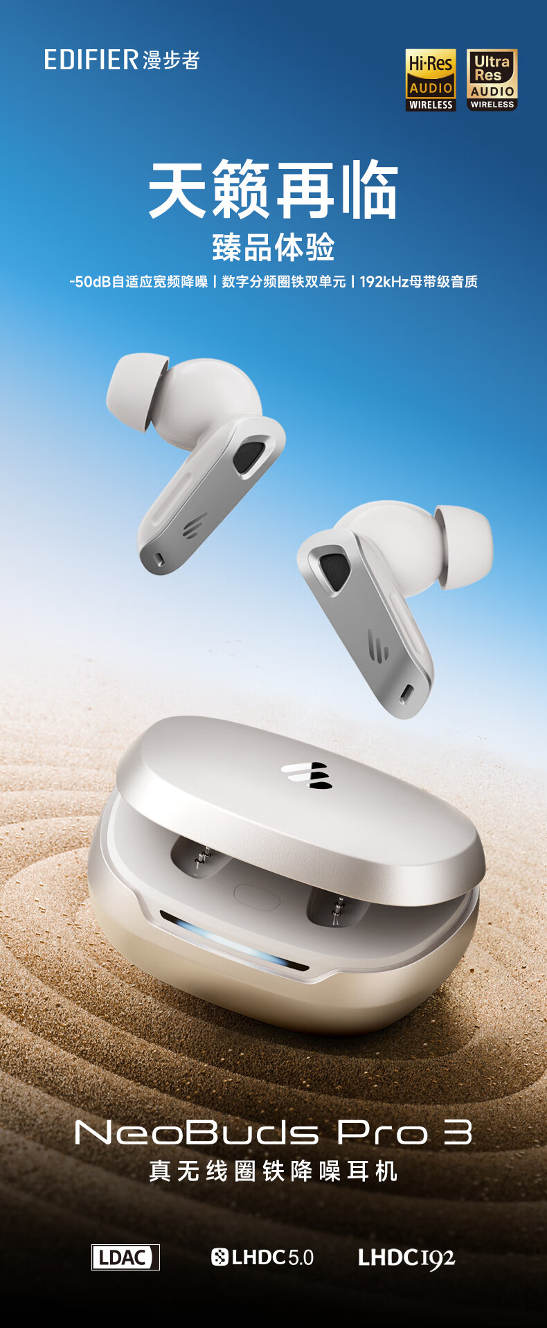 漫步者 圈铁降噪蓝牙耳机 NeoBuds Pro 3 36小时续航 星际蓝(单位:副)