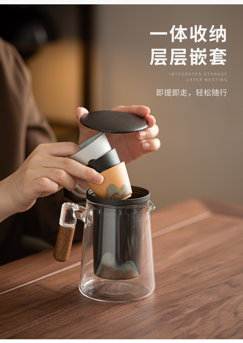 苏氏陶瓷(SUSHI CERAMICS) J1127 4头 釉画彩手柄玻璃旅行包 混色(单位:套)