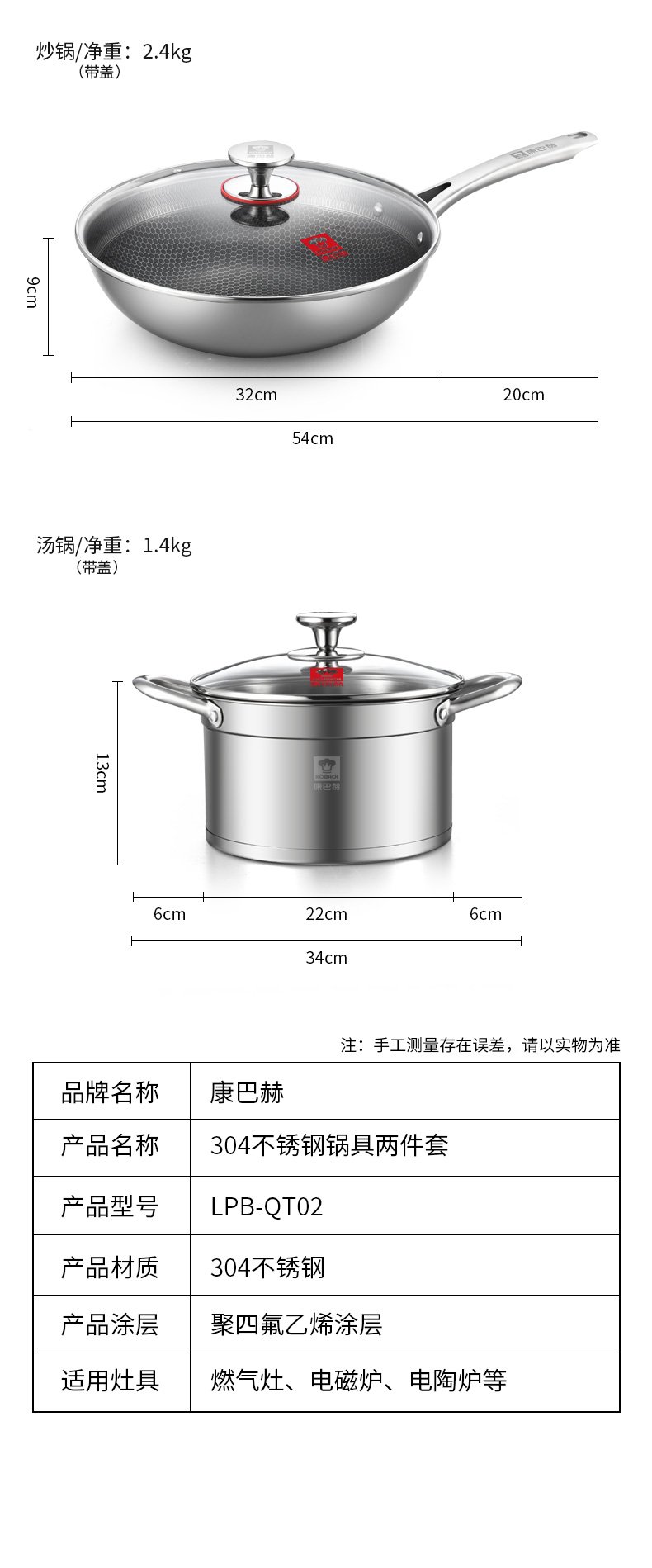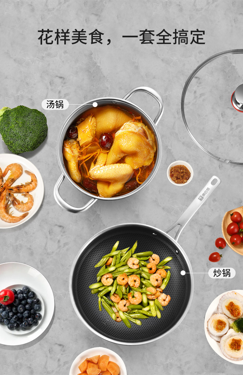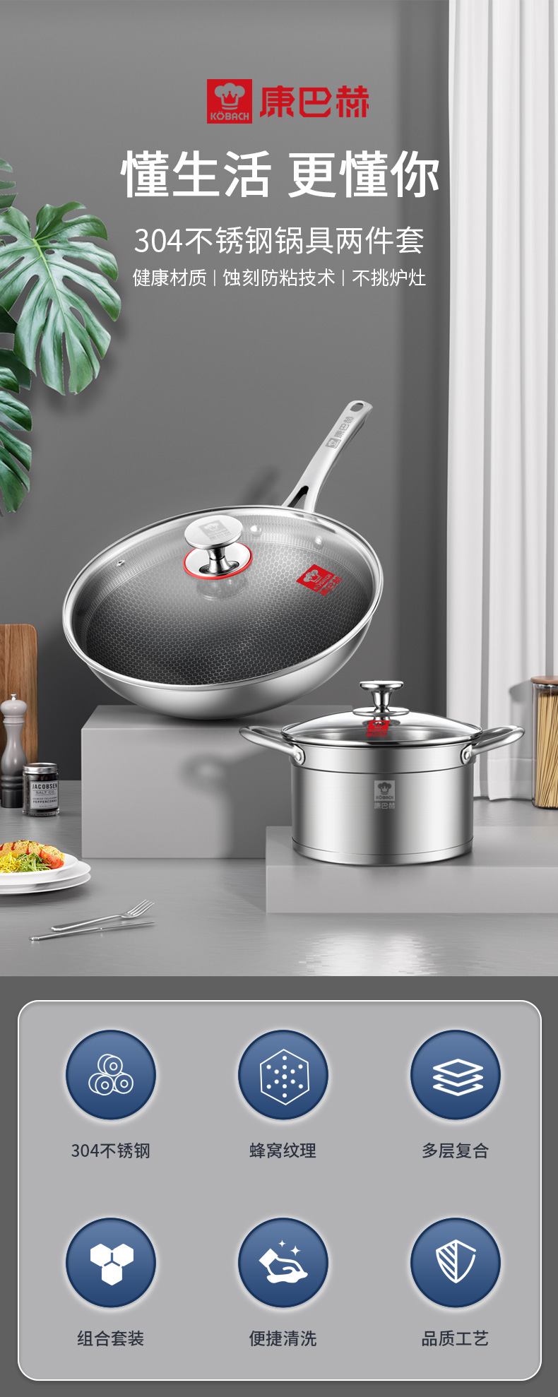 康巴赫 LPB-QT02 32cm炒锅+22cm汤锅 旗舰款锅具 钢色(单位:套)