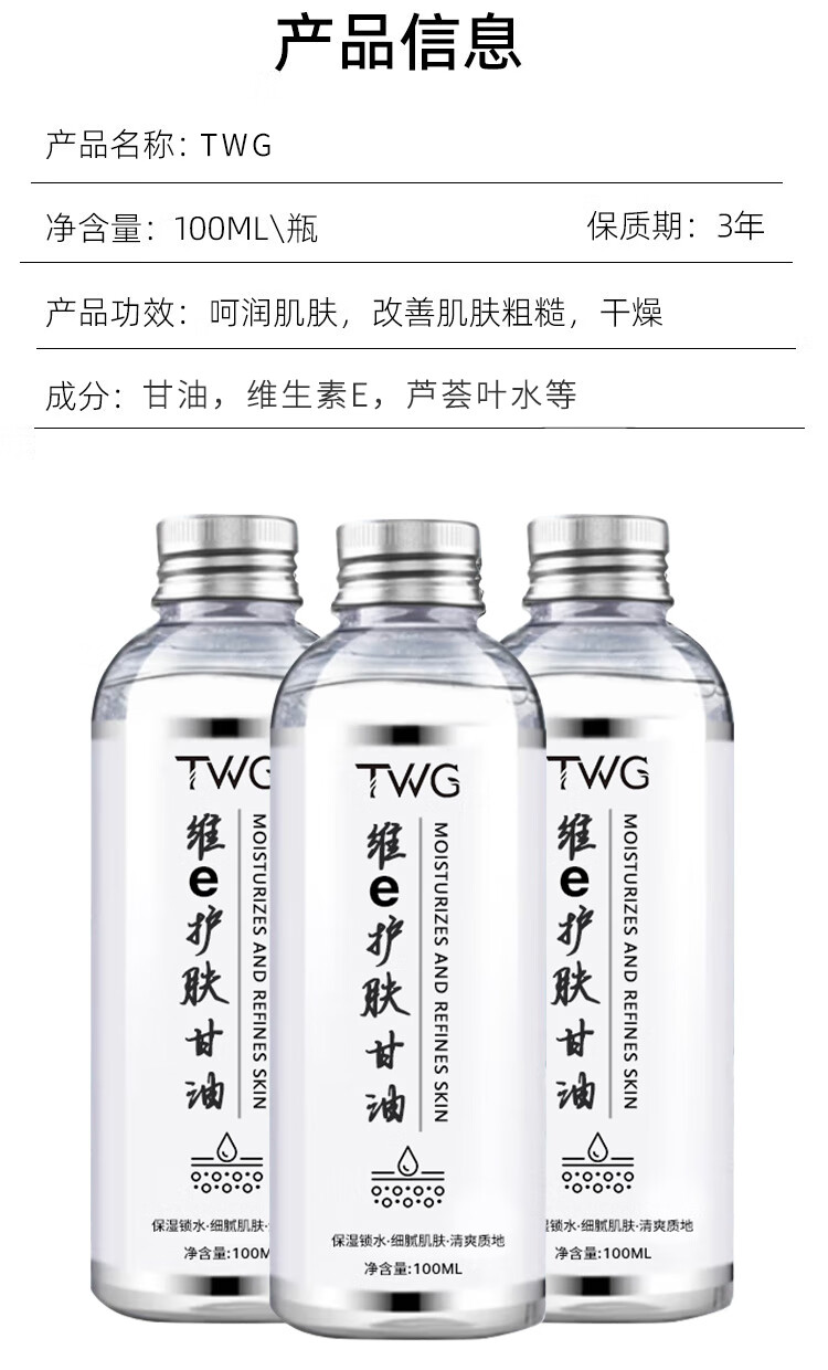 TWG 维生素e护肤甘油 100ml*2瓶 补水保湿 白色(单位:套)