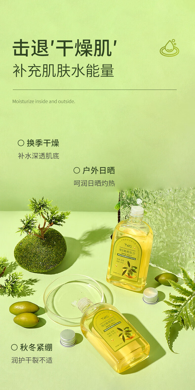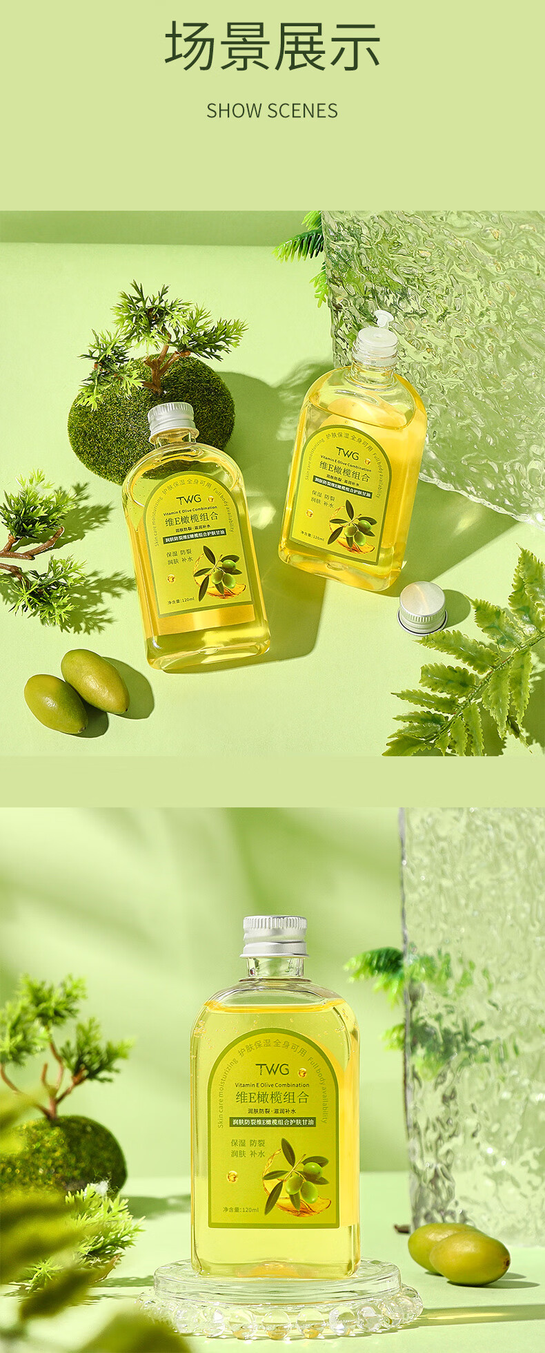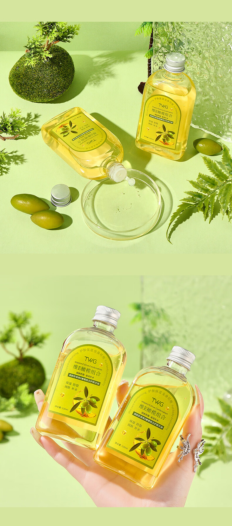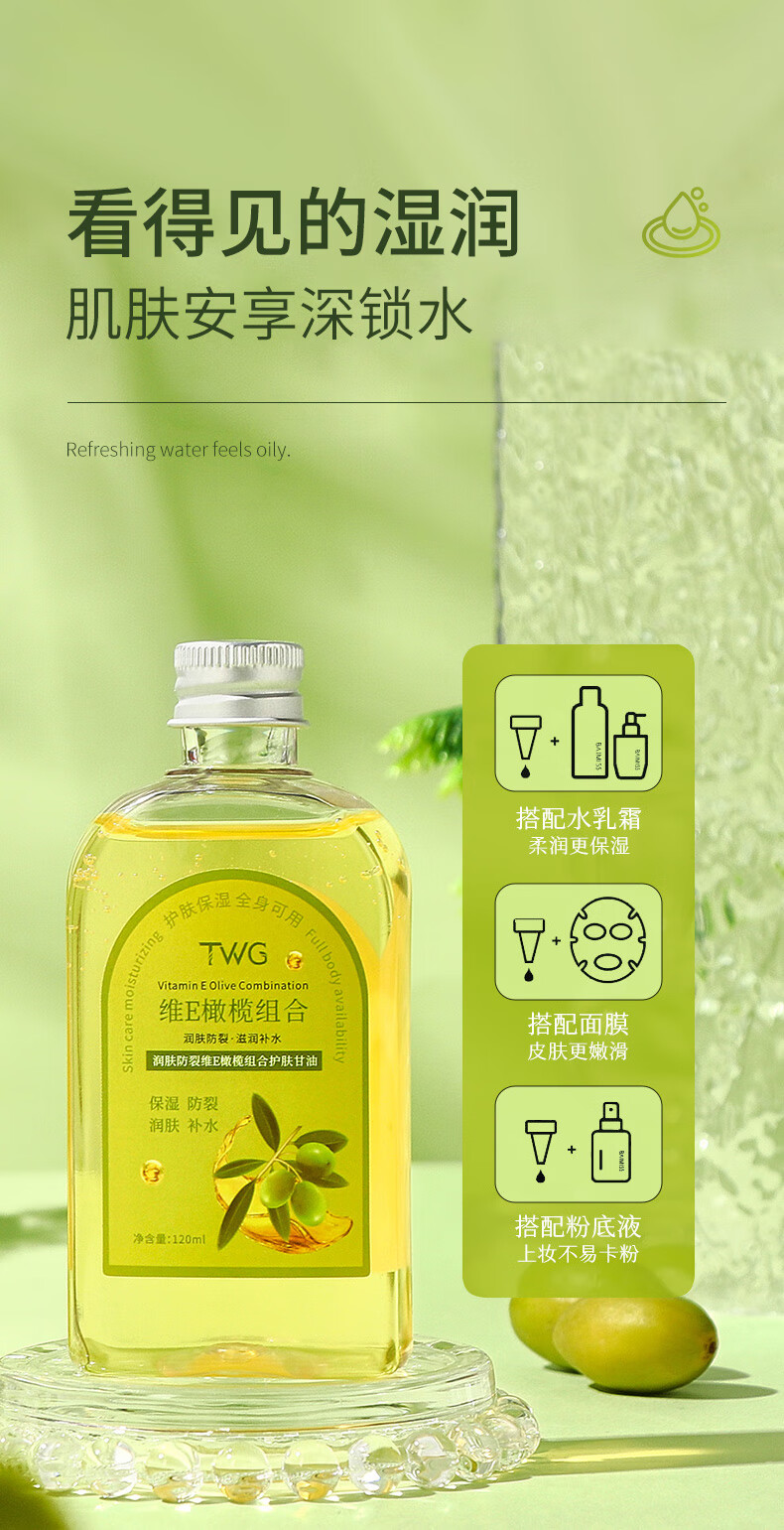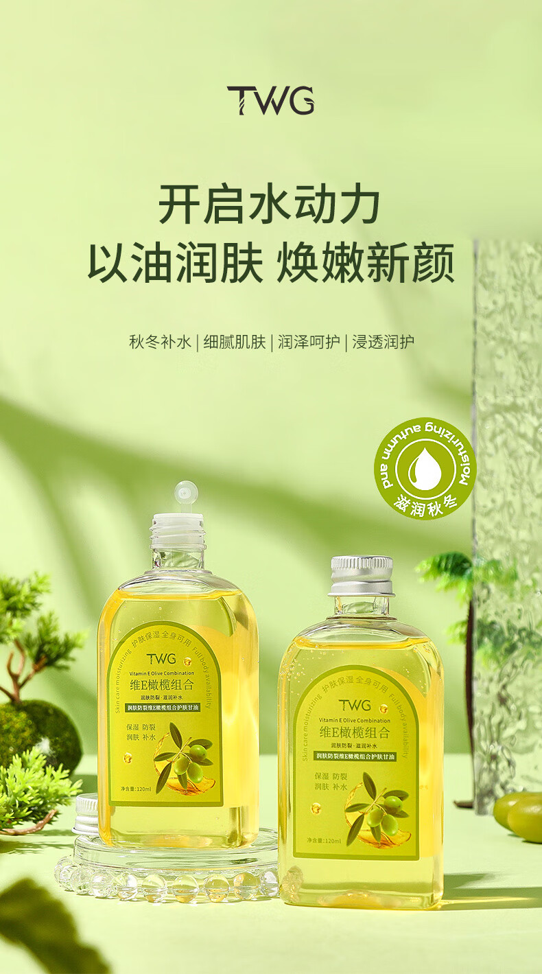 TWG 润肤防裂维E橄榄护肤甘油 120ml*2瓶 滋润全身 金色(单位:套)