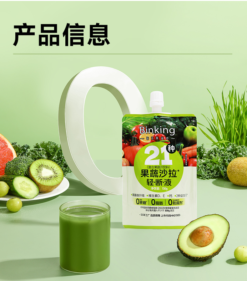 Binking 复合果蔬汁 130克/袋*30袋 21种果蔬液体轻断 雾雨绿(单位:组)