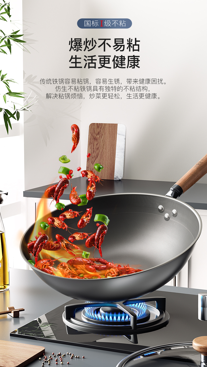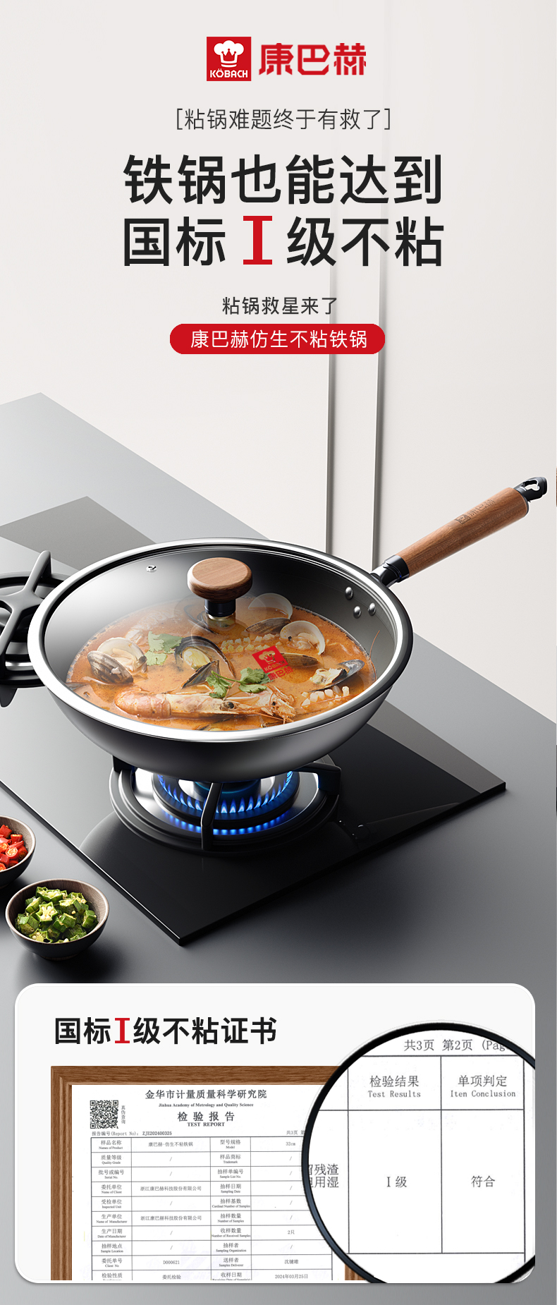康巴赫 KGL-C34T 34cm 仿生不粘铁锅 黑色(单位:个)