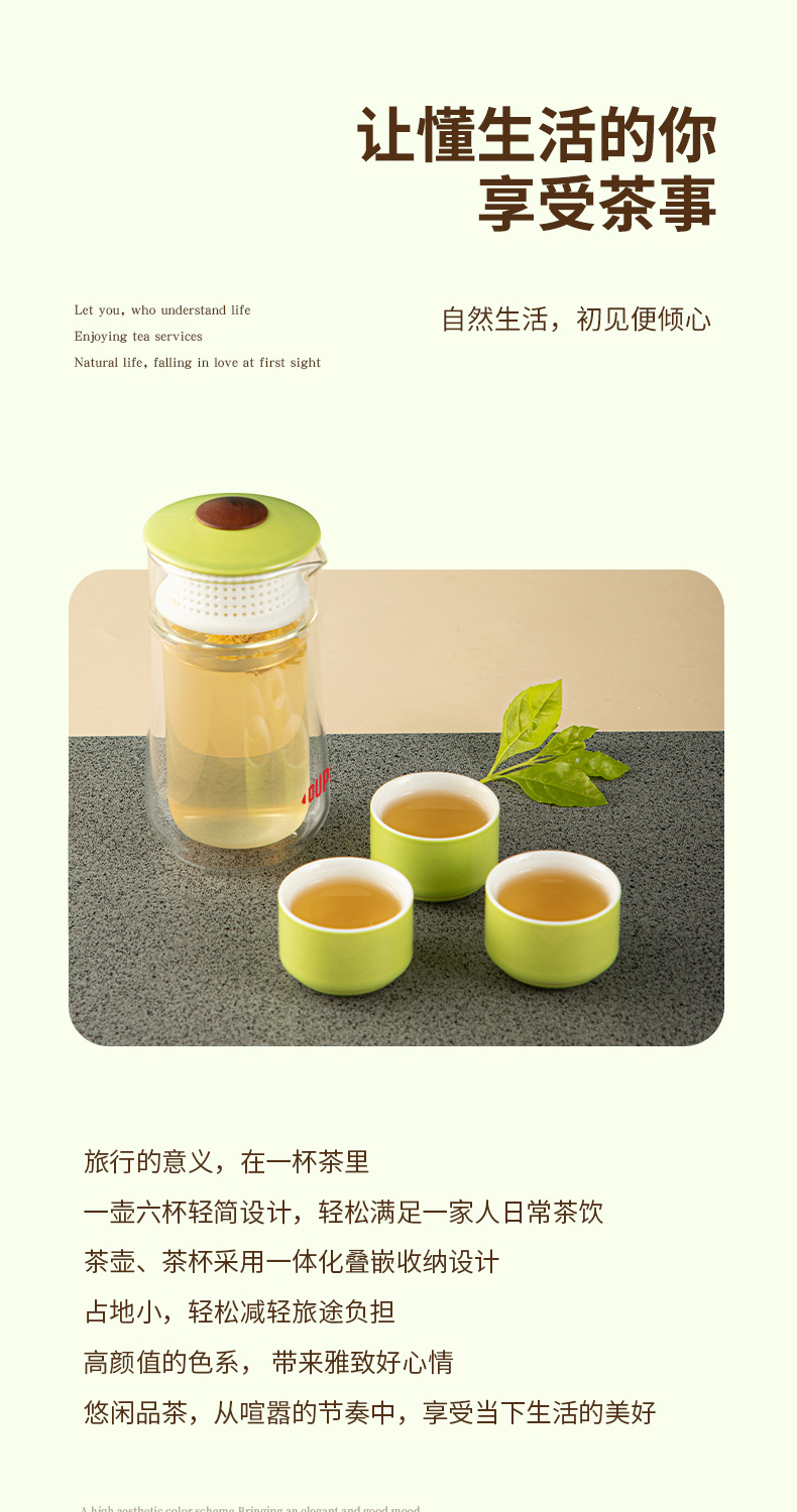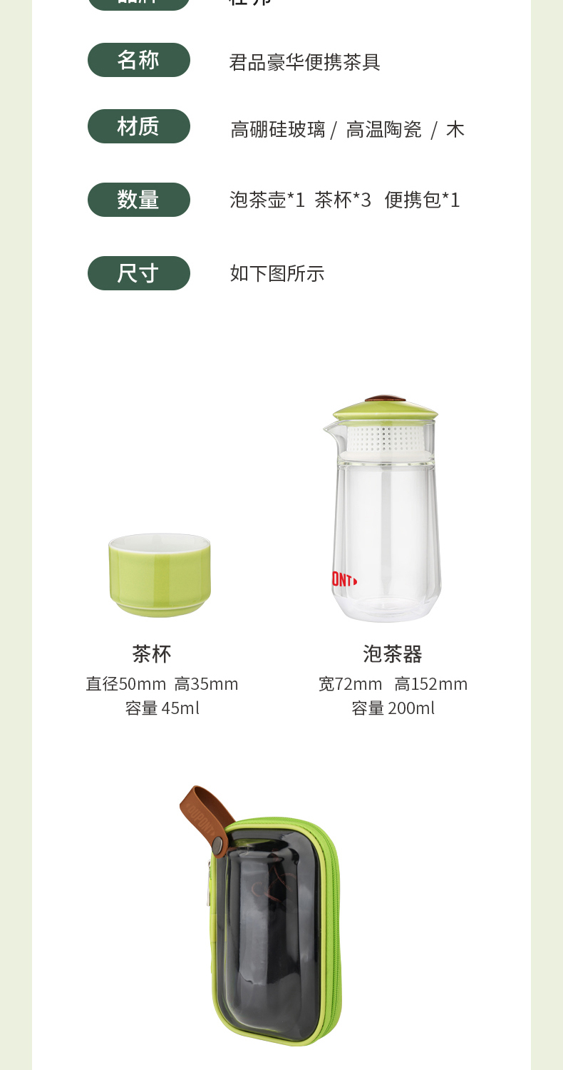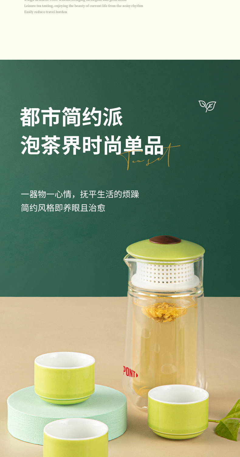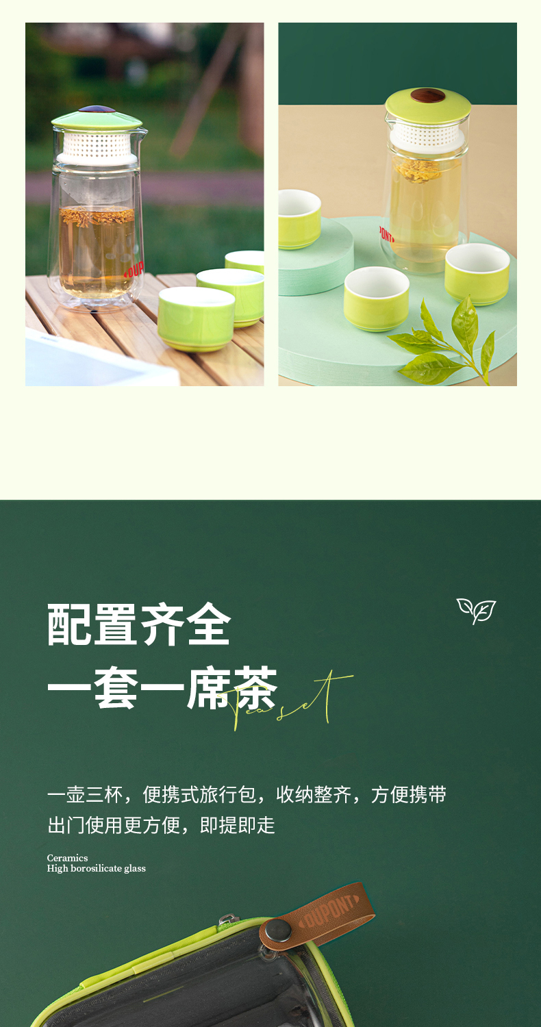 杜邦(DUPONT) PSJ-720 一壶三杯 君品便携茶具 清新色(单位:套)
