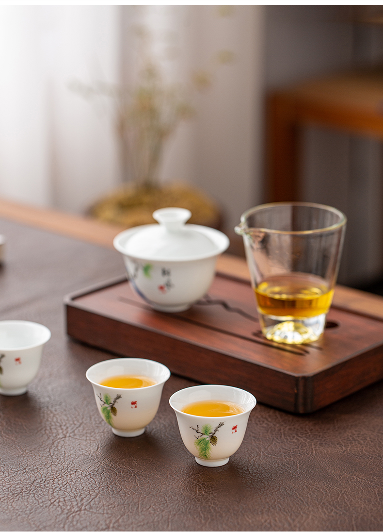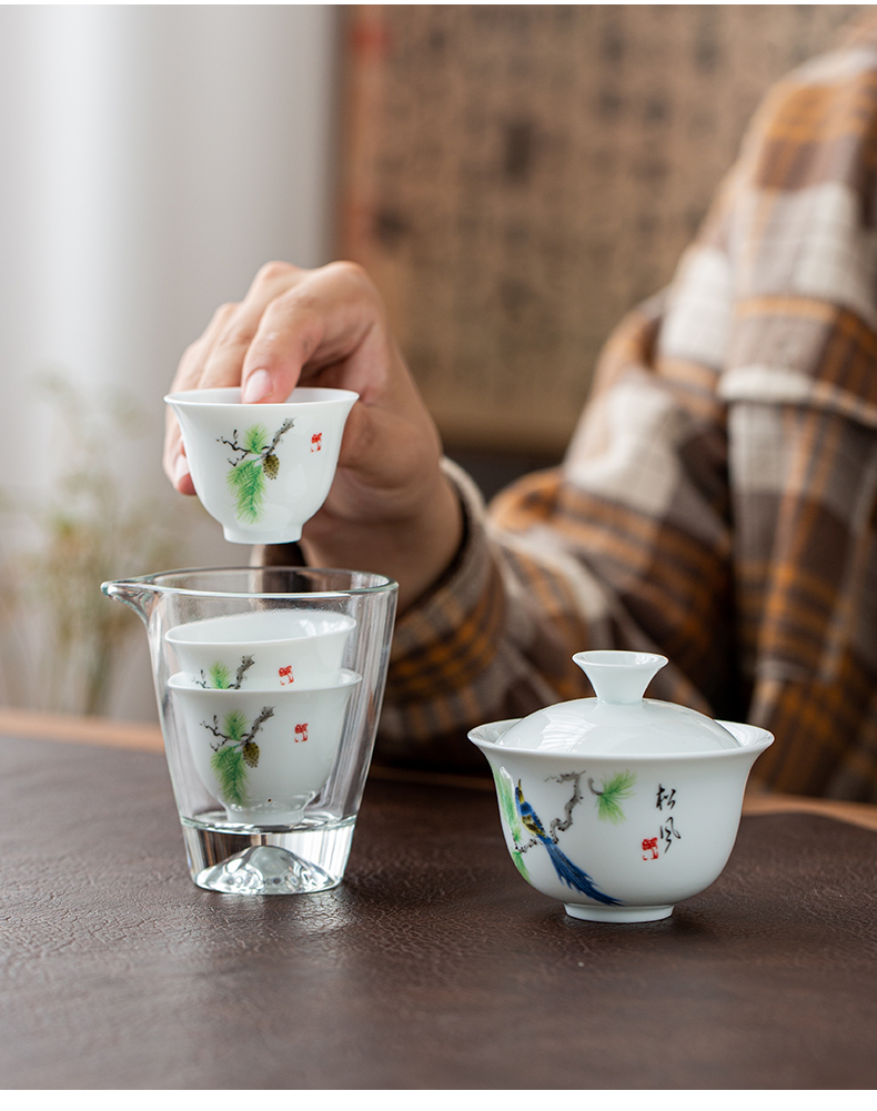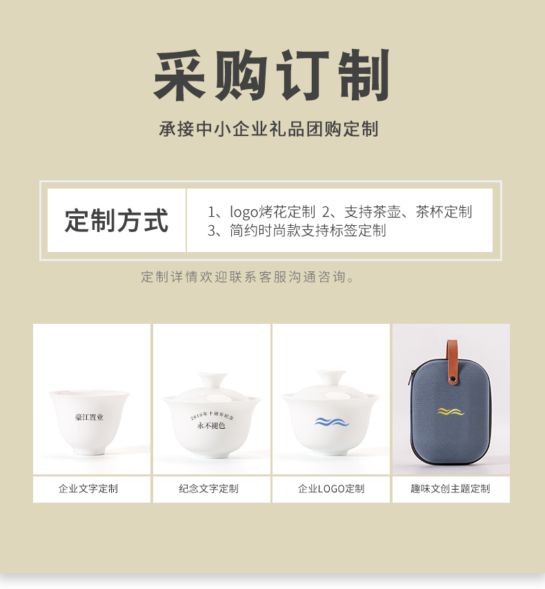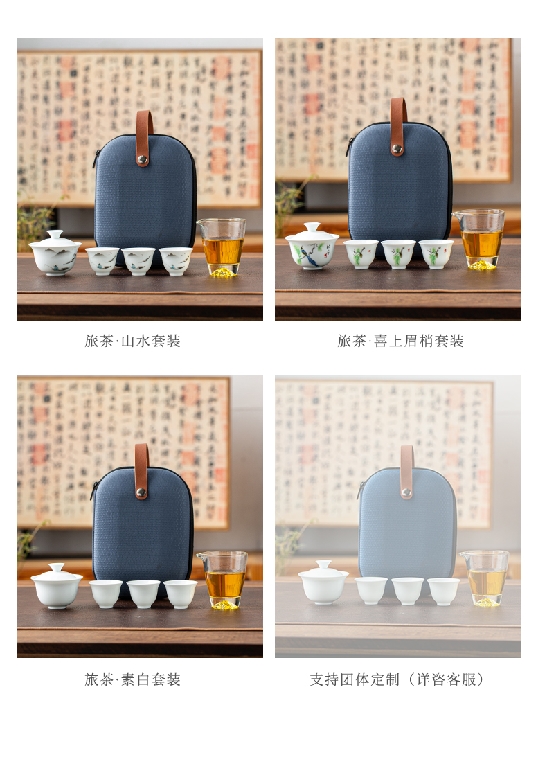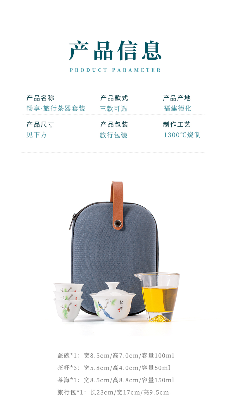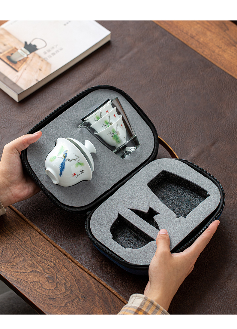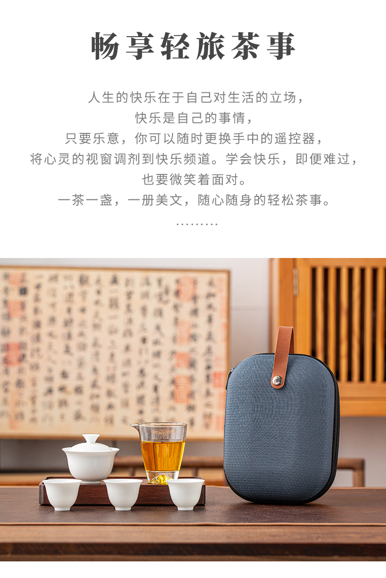 文喜 便携茶器 1盖碗1茶海3杯1便携包 畅享旅行茶器 浅灰色(单位:套)