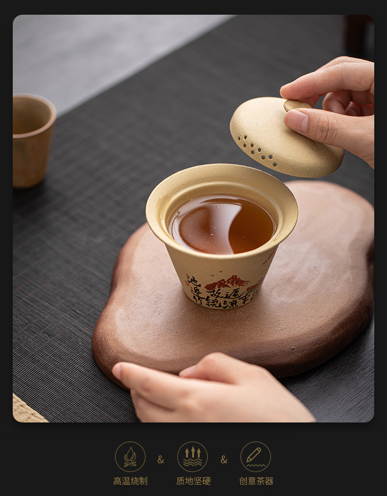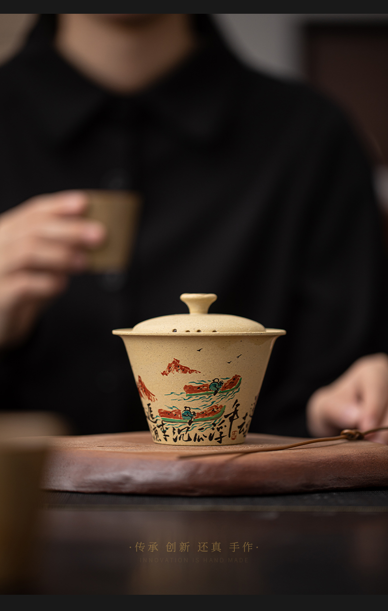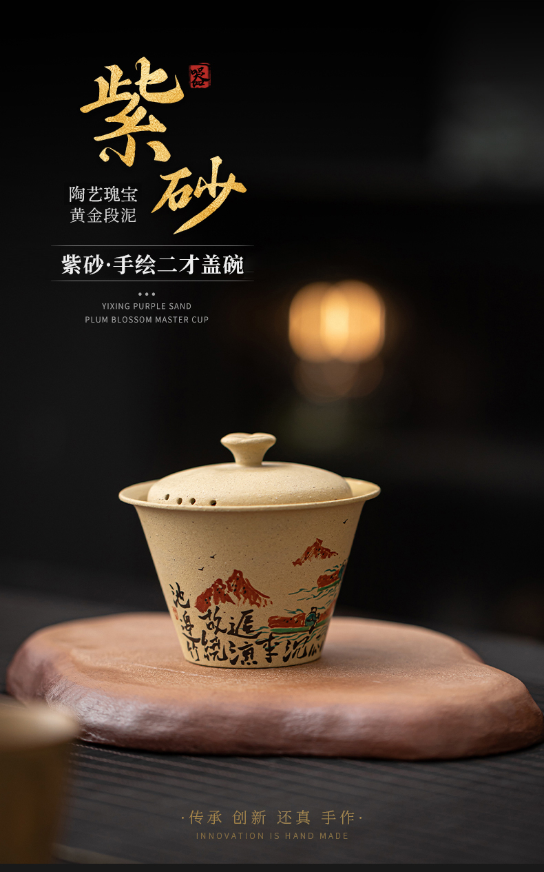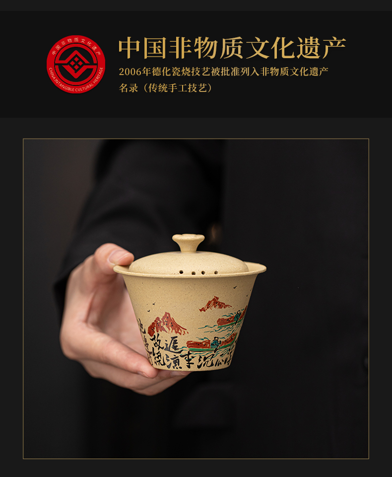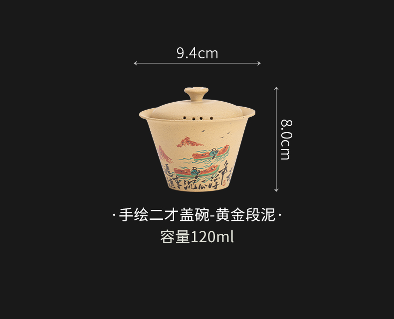 苏氏陶瓷(SUSHI CERAMICS) J1069 120ml 黄金段泥二才盖碗 黄色(单位:套)