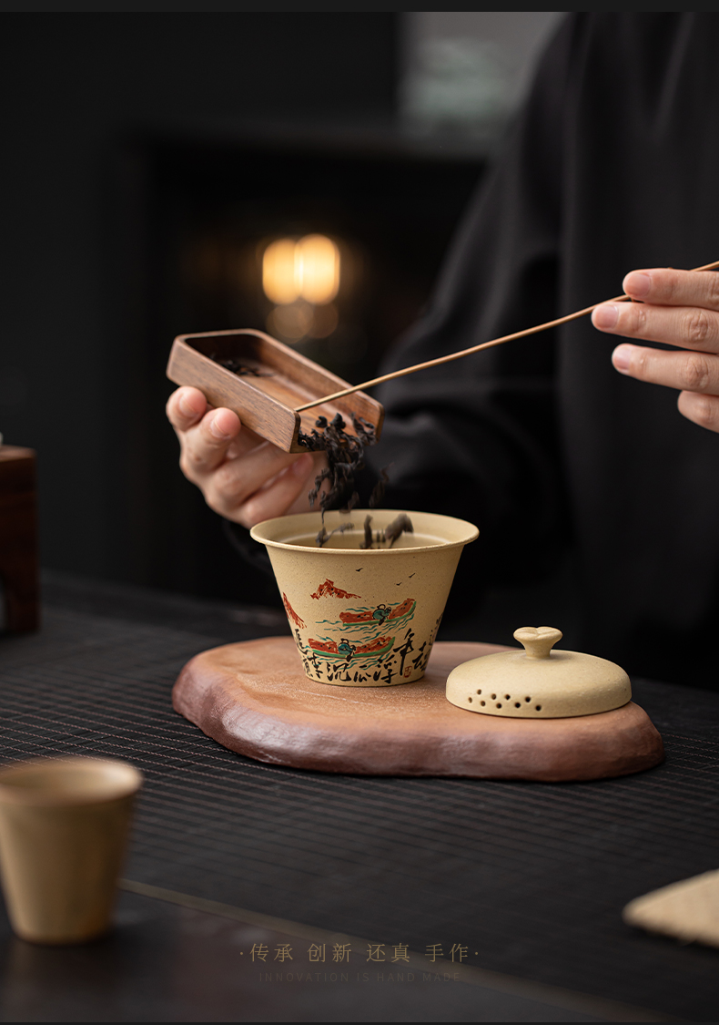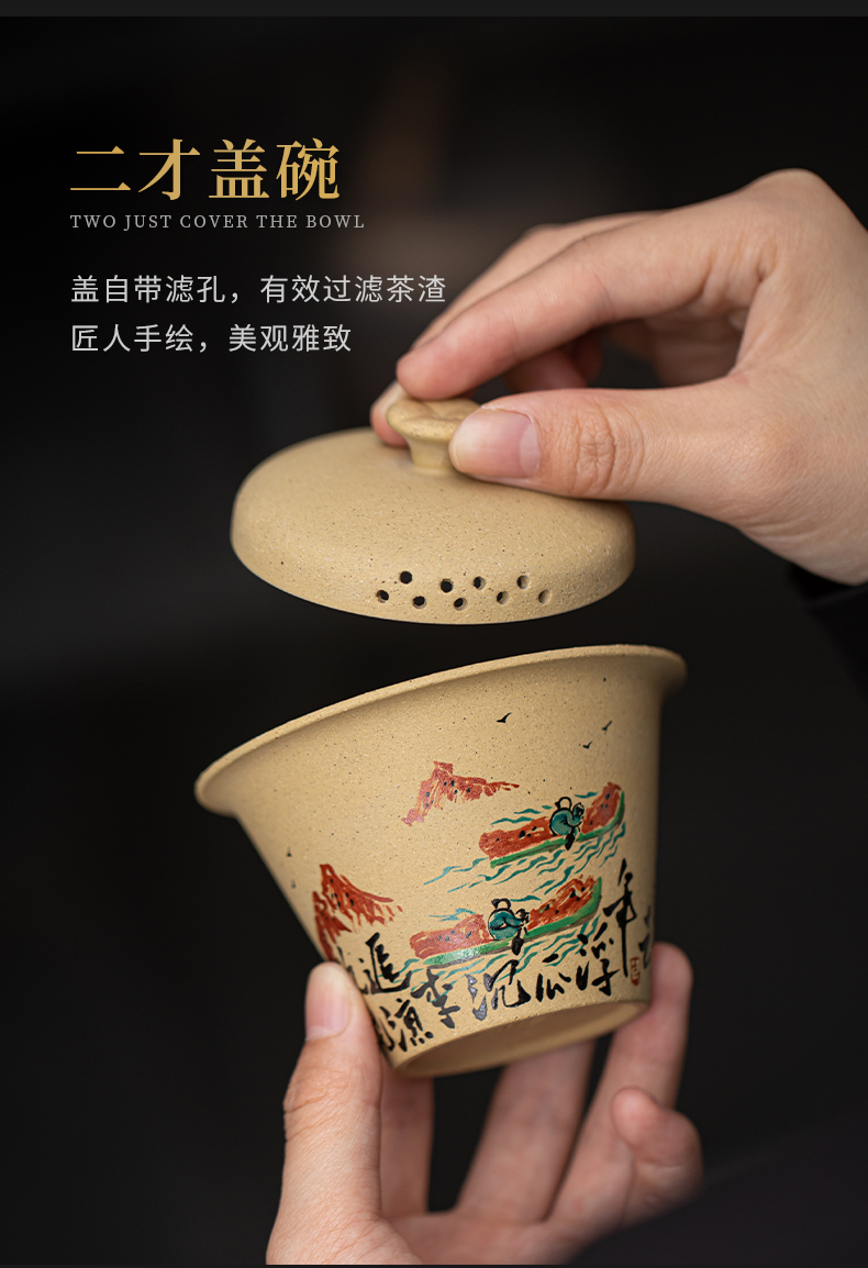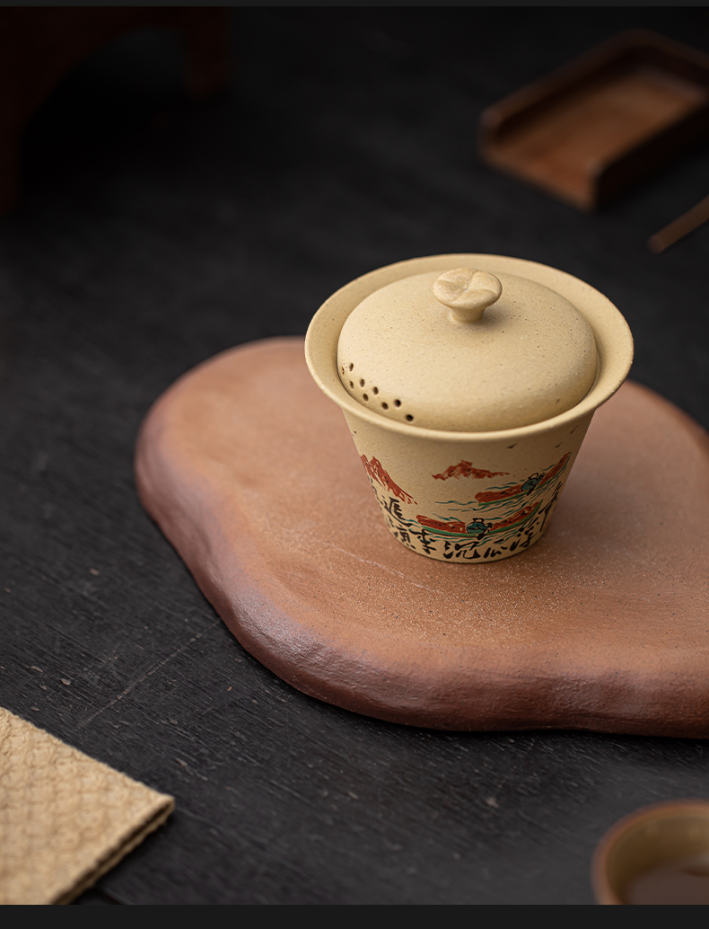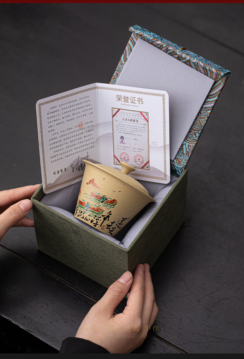 苏氏陶瓷(SUSHI CERAMICS) J1069 120ml 黄金段泥二才盖碗 黄色(单位:套)