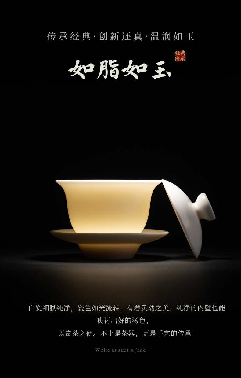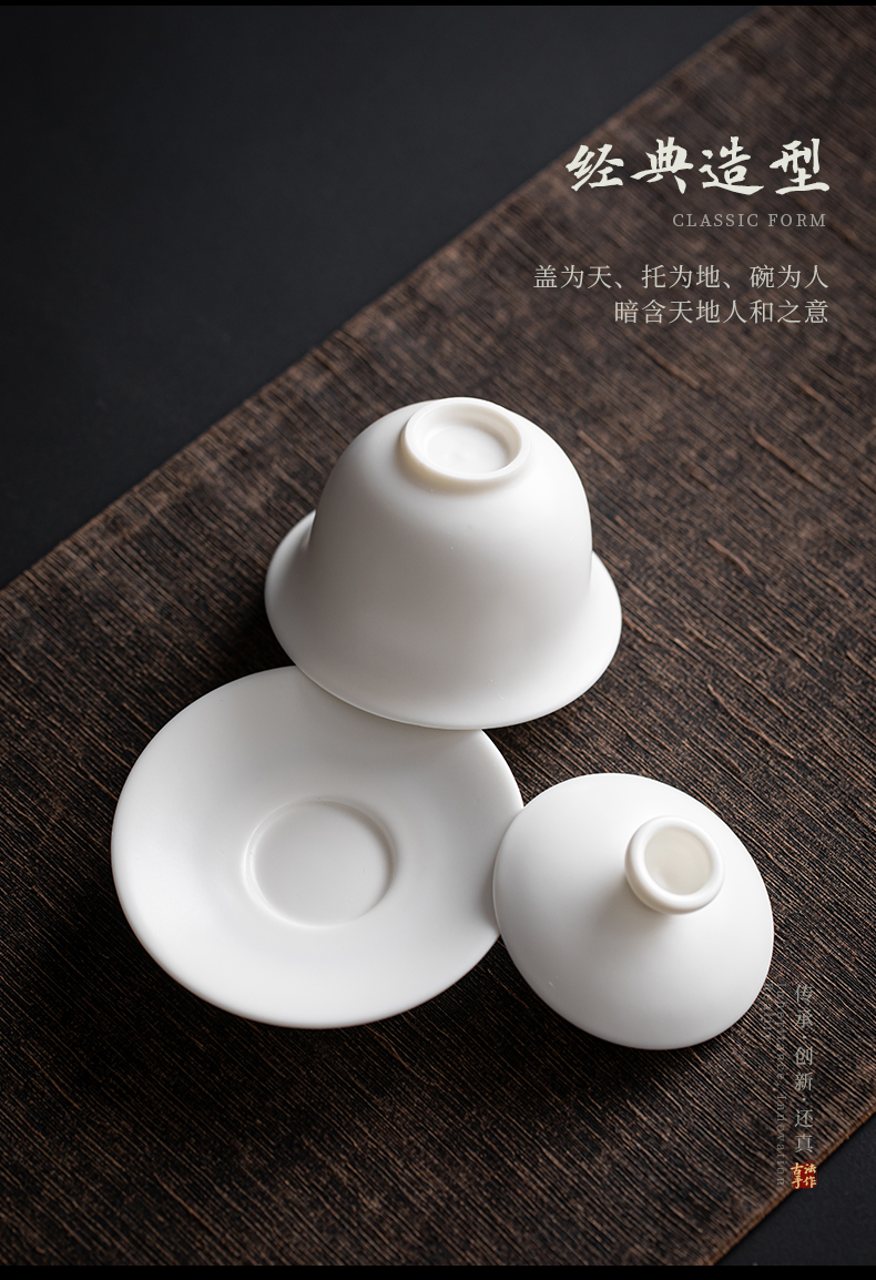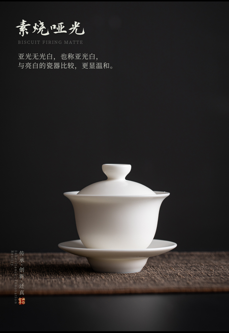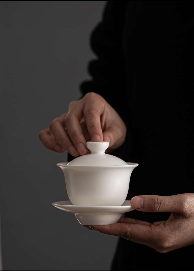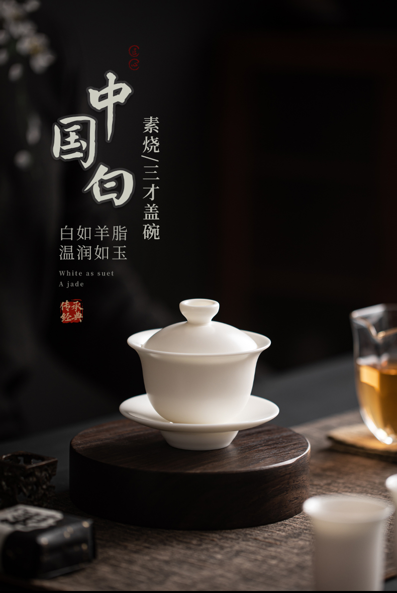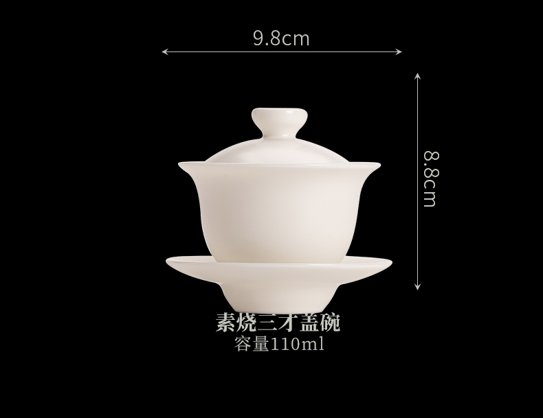 苏氏陶瓷(SUSHI CERAMICS) J0512 110ml 中国白素烧功三才盖碗 白色(单位:套)