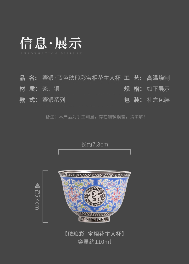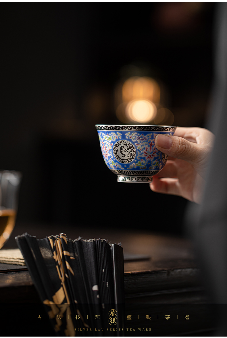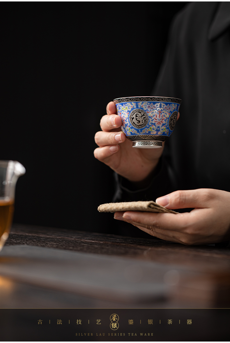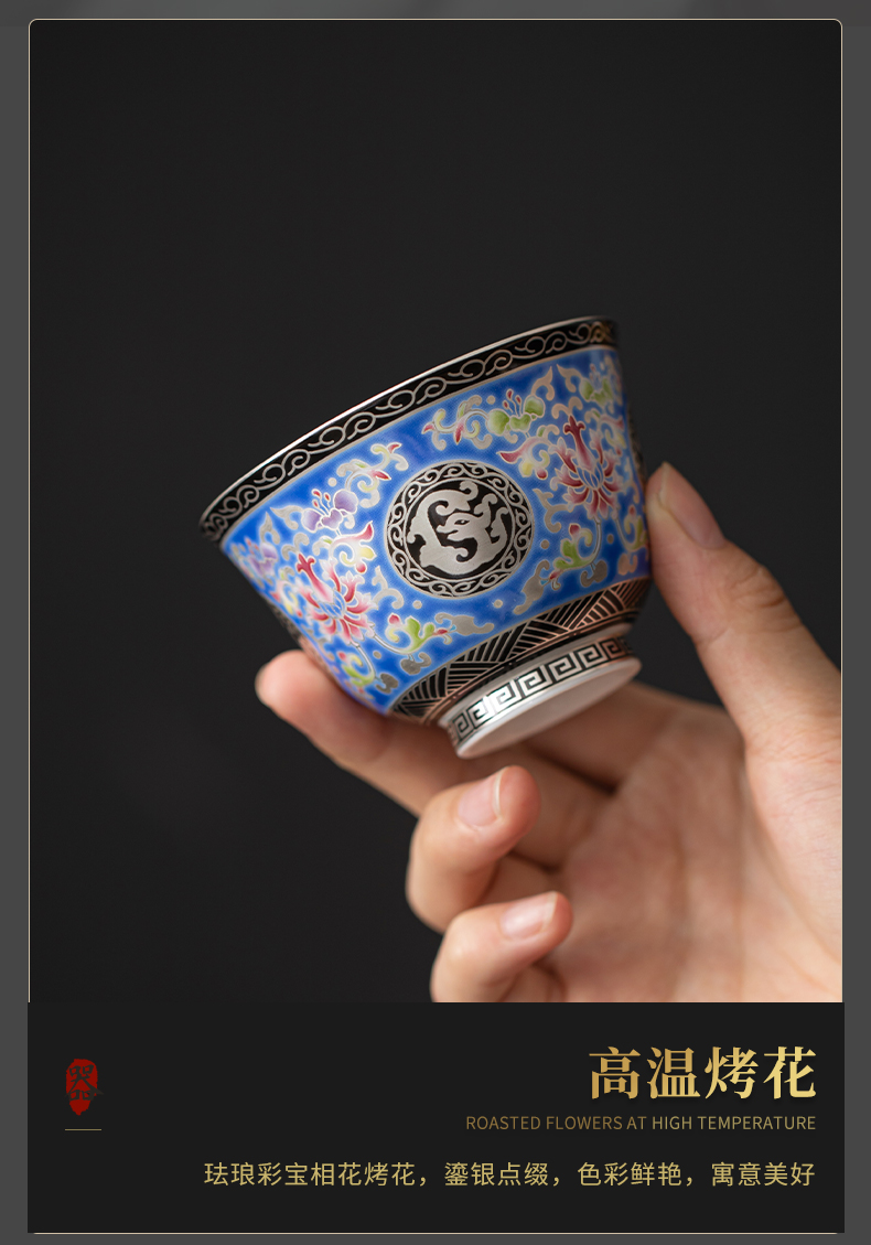 苏氏陶瓷(SUSHI CERAMICS) J1123 110ml 鎏银珐琅彩宝相花茶杯 混色(单位:个)